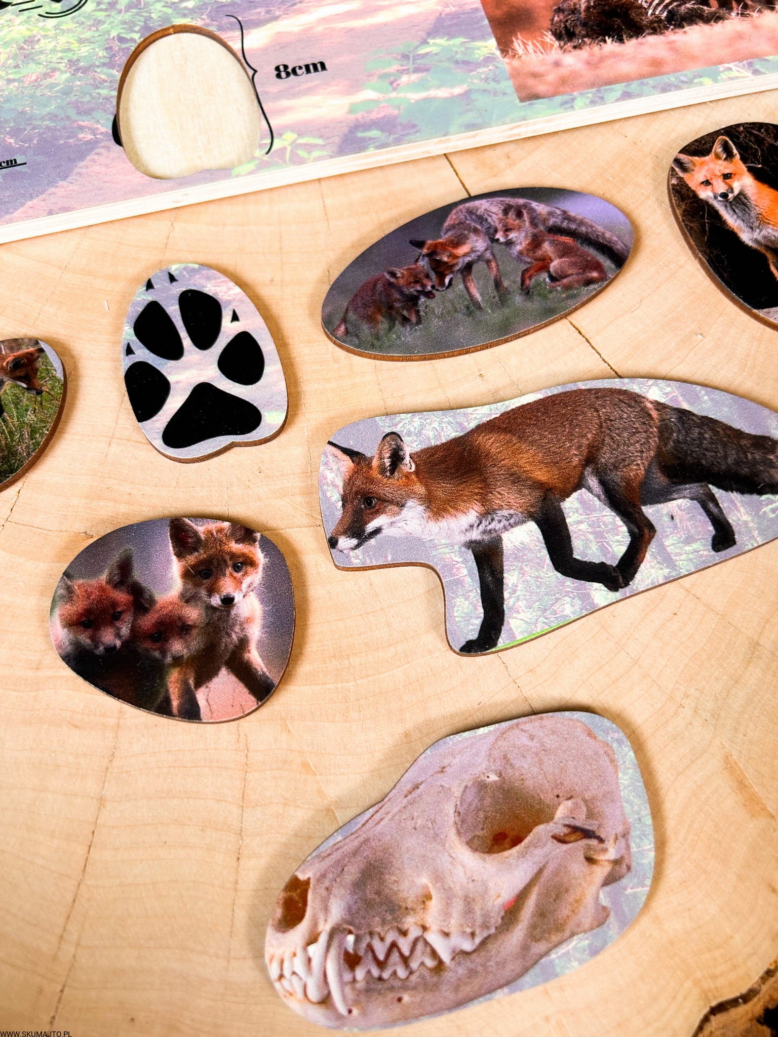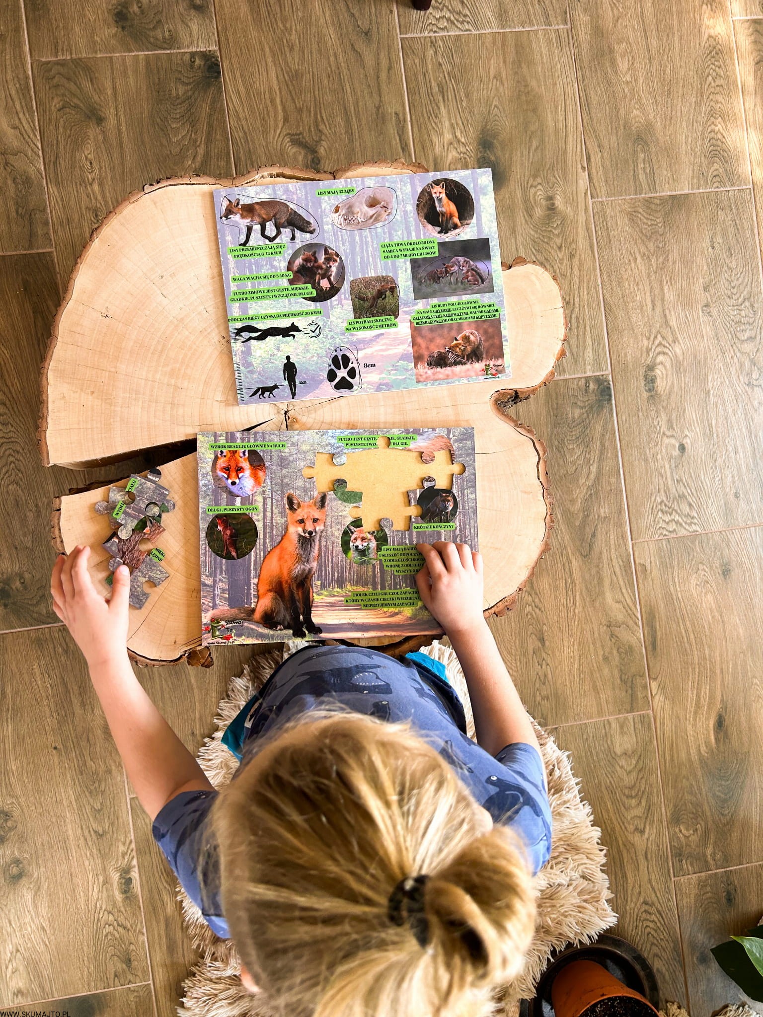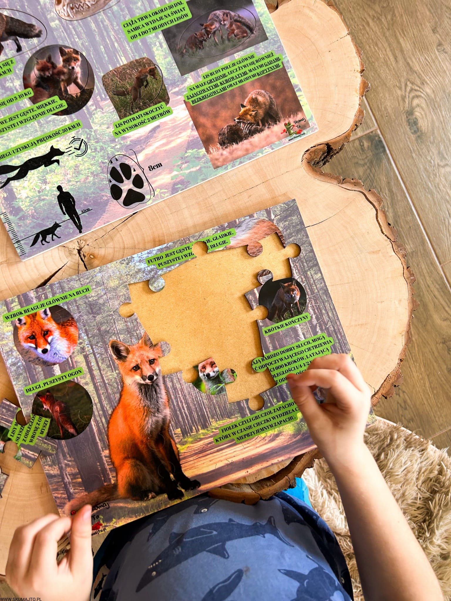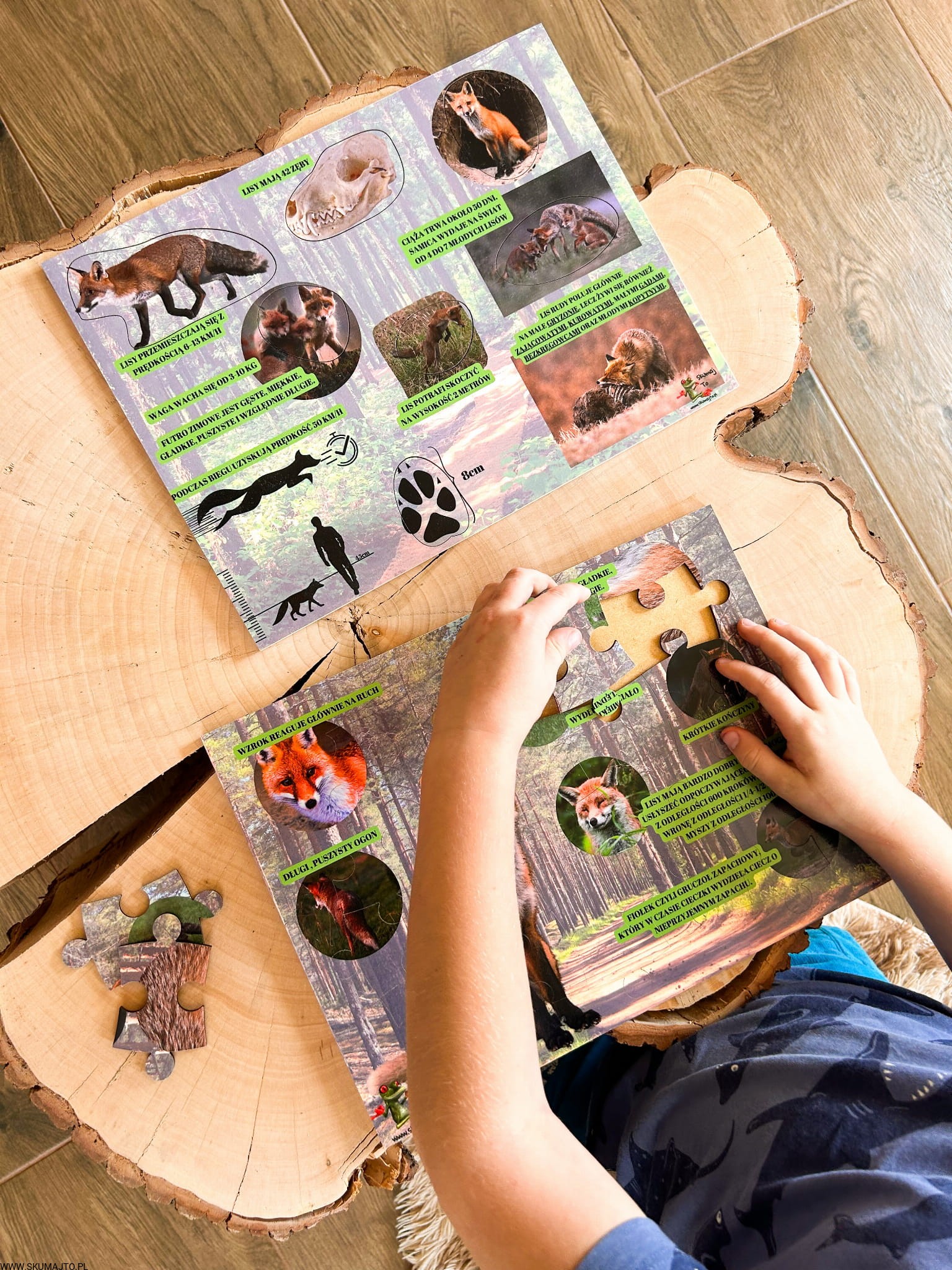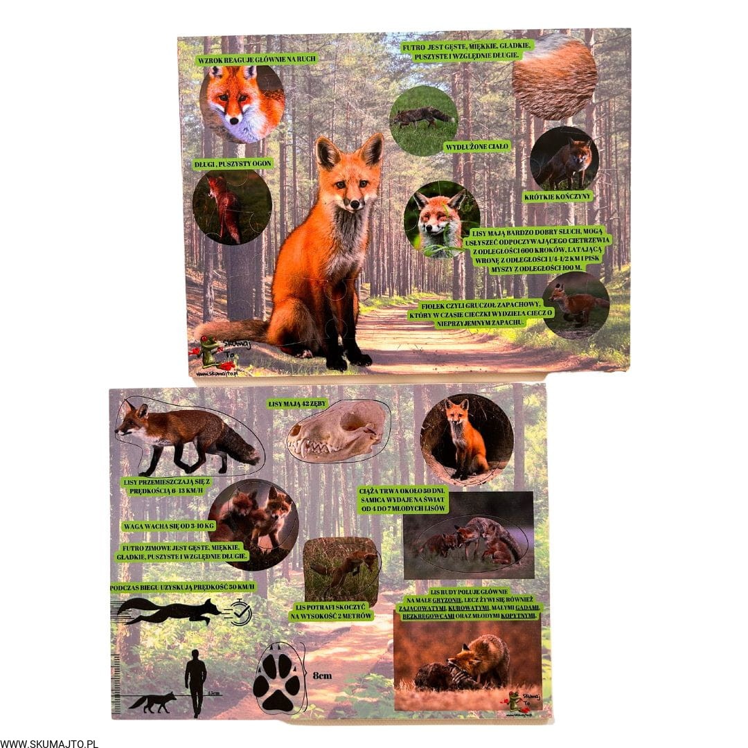 Świat lisa , układanka drewniana, edukacja leśna, ciekawostki o lisach