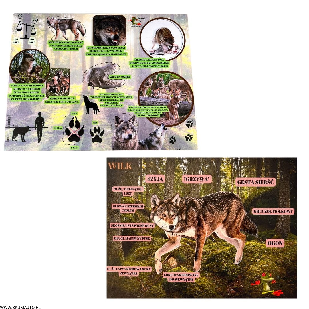Dwustronna Przyjemność: Każda układanka zawiera dwie plansze. Pierwsza to układanka puzzli przedstawiająca anatomię wilka - od zewnętrznych cech po wewnętrzne struktury. Druga plansza to skarbnica informacji i ciekawostek na temat tych tajemniczych drapieżników.