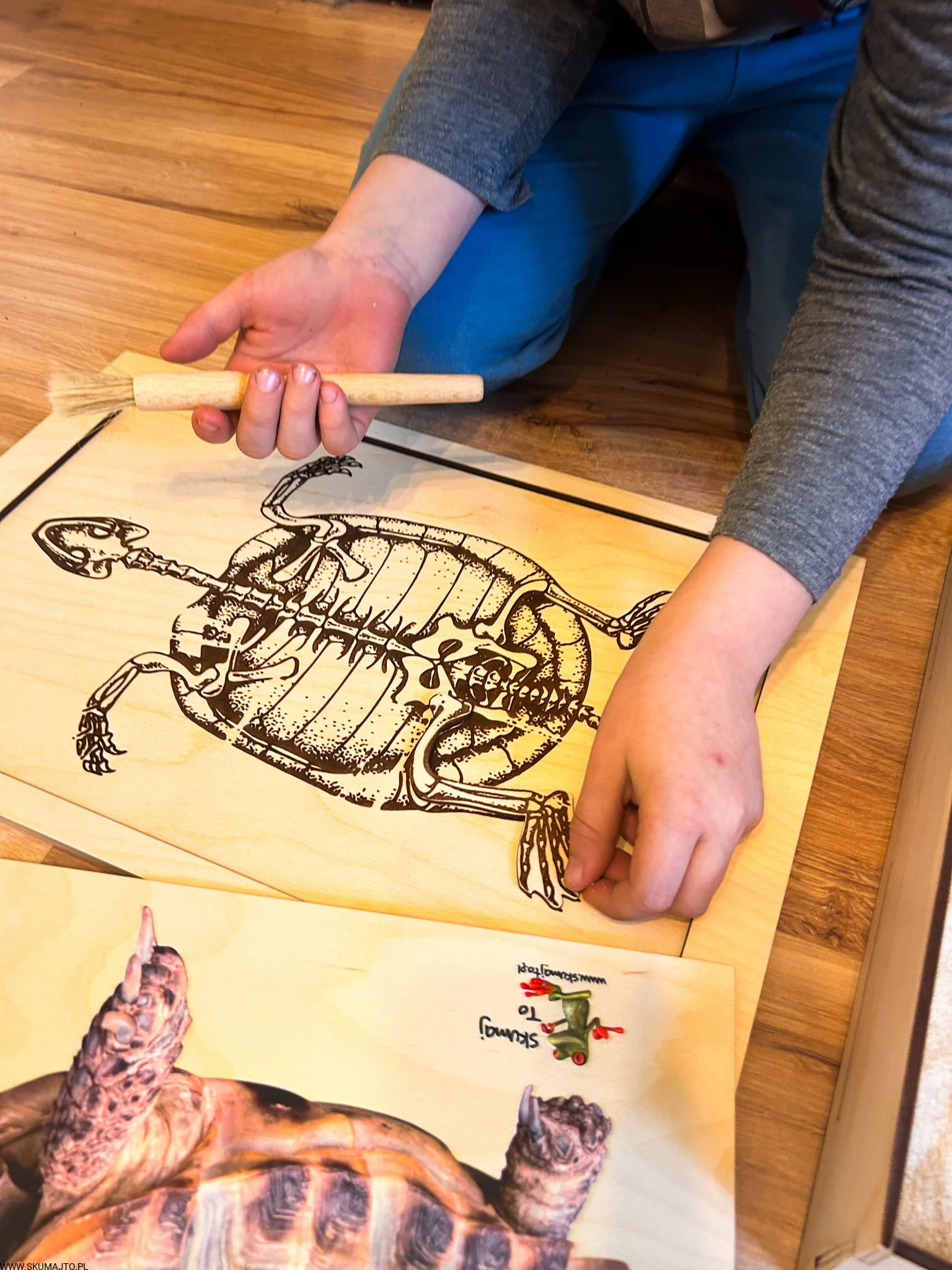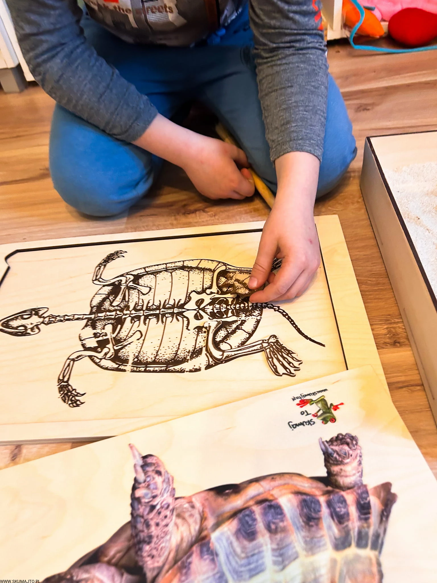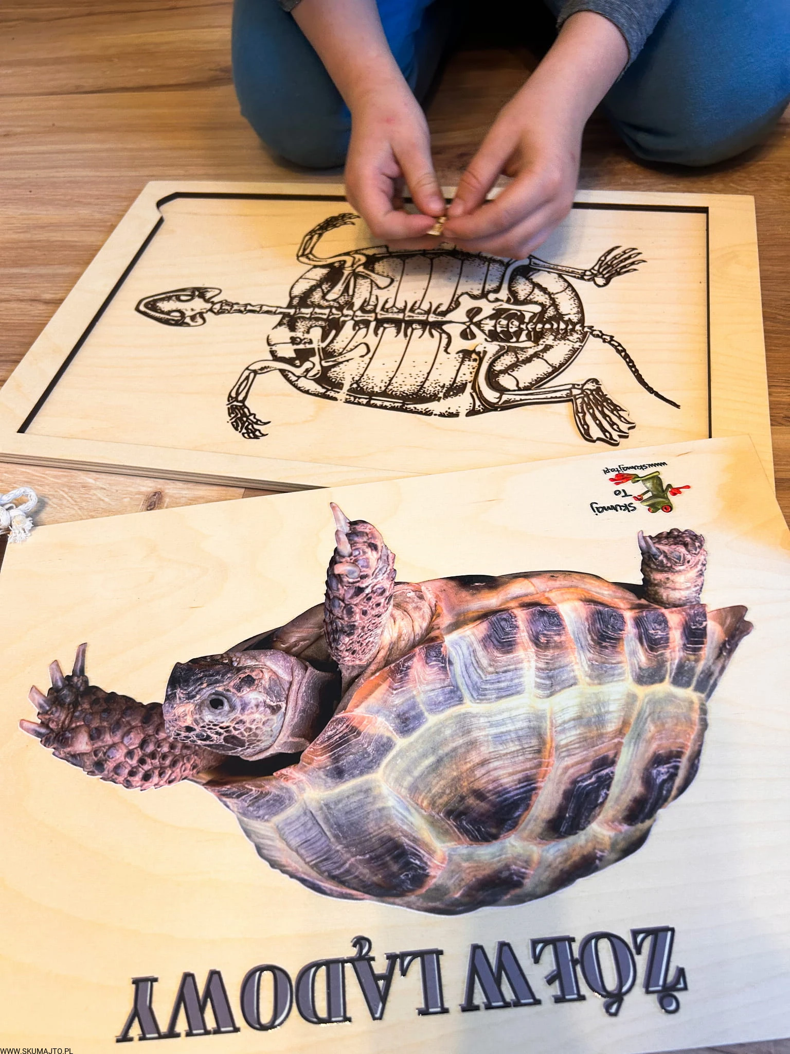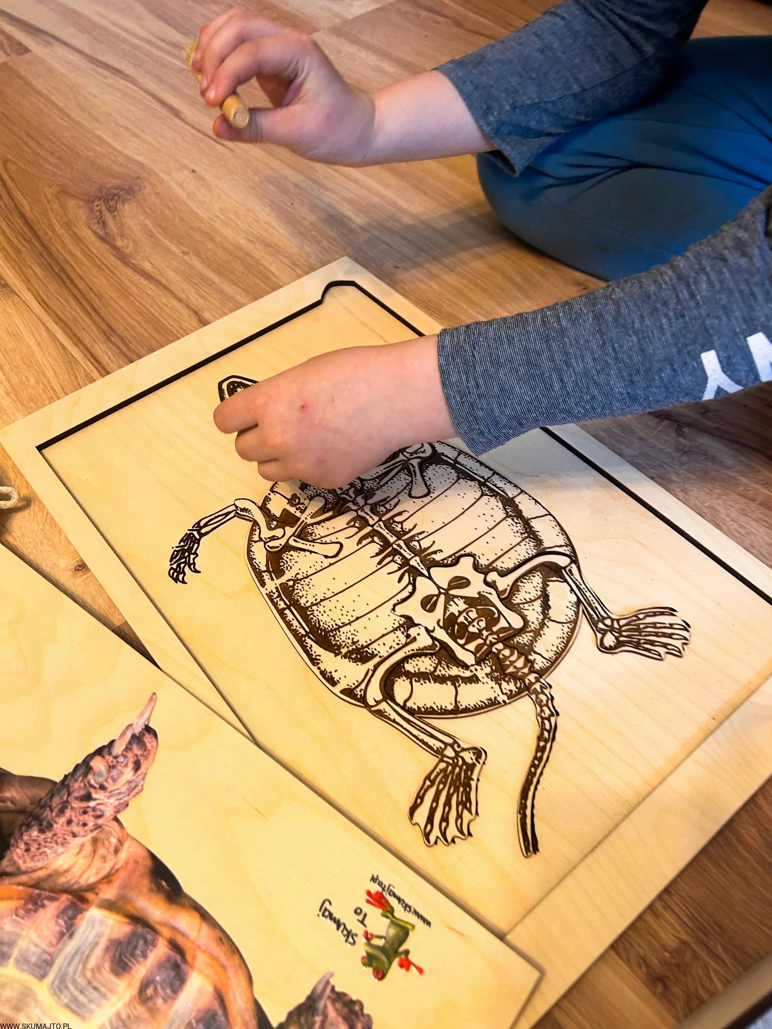 Szkielet żółwia, drewniana układanka, żółw montessori