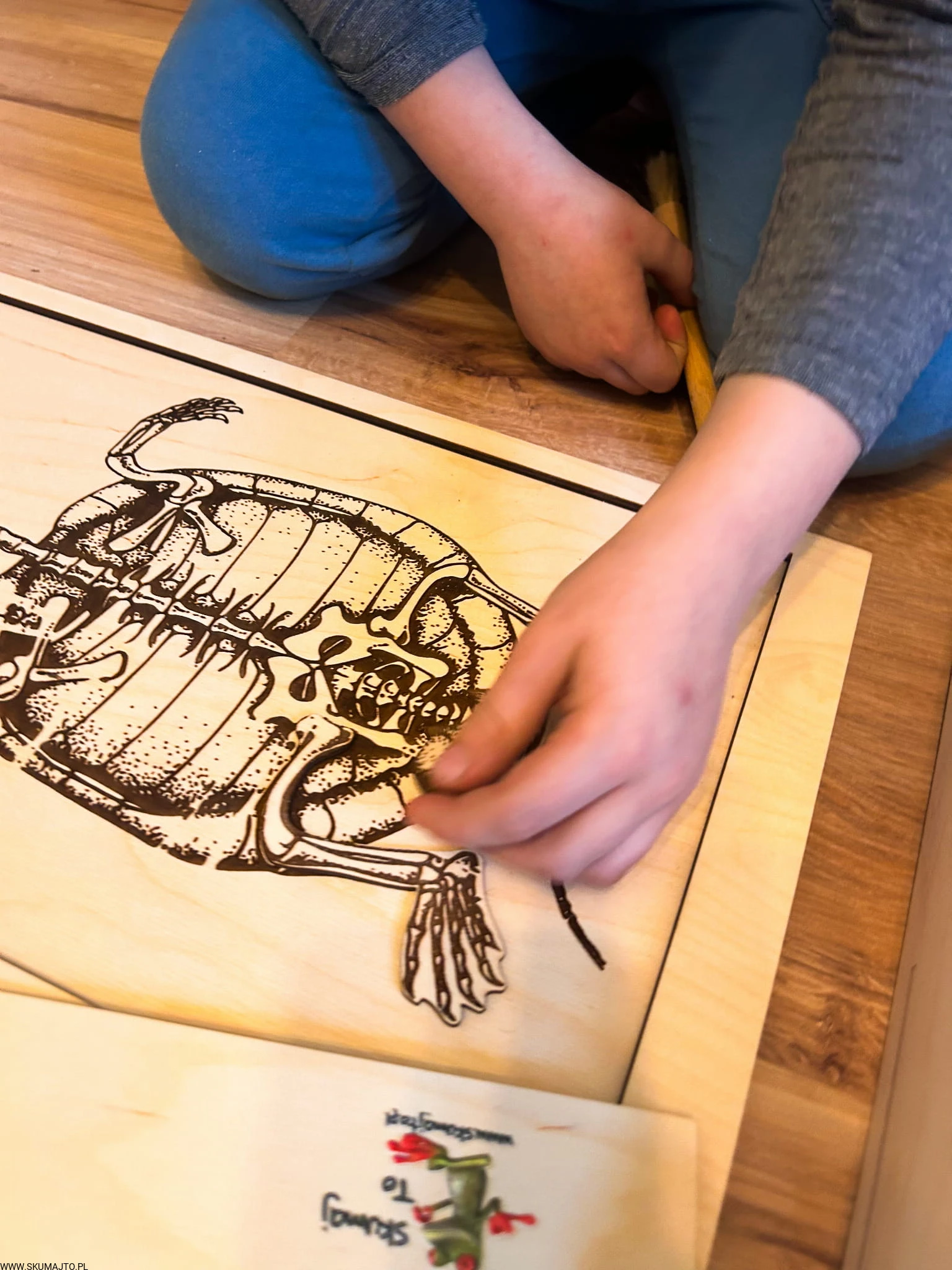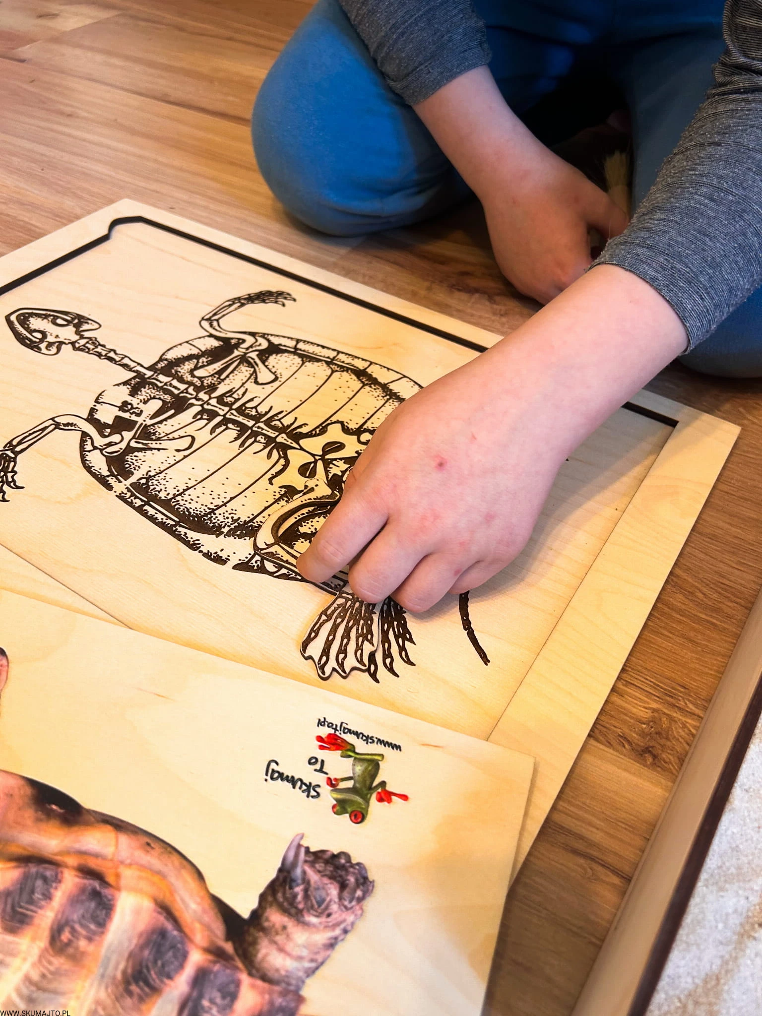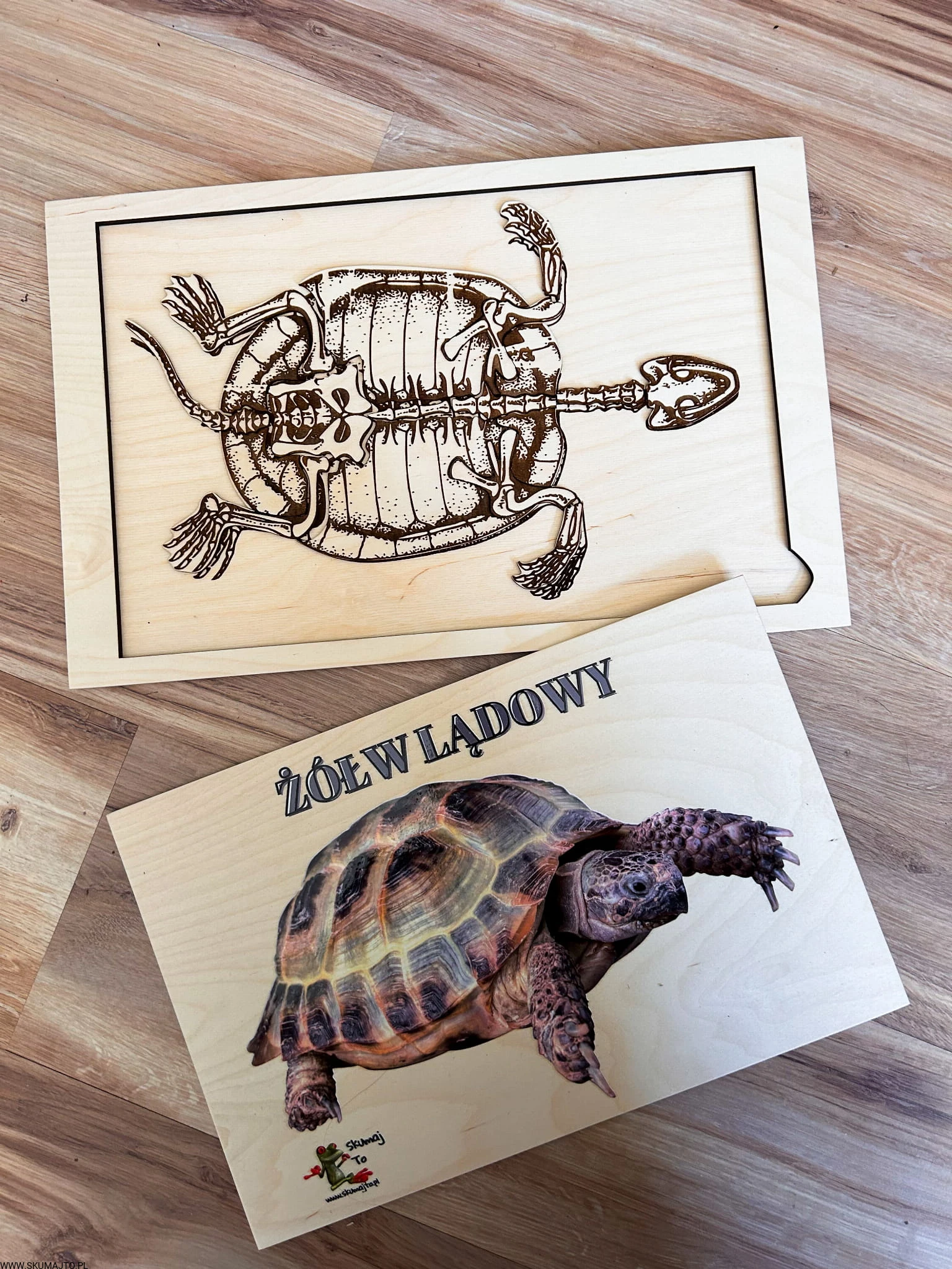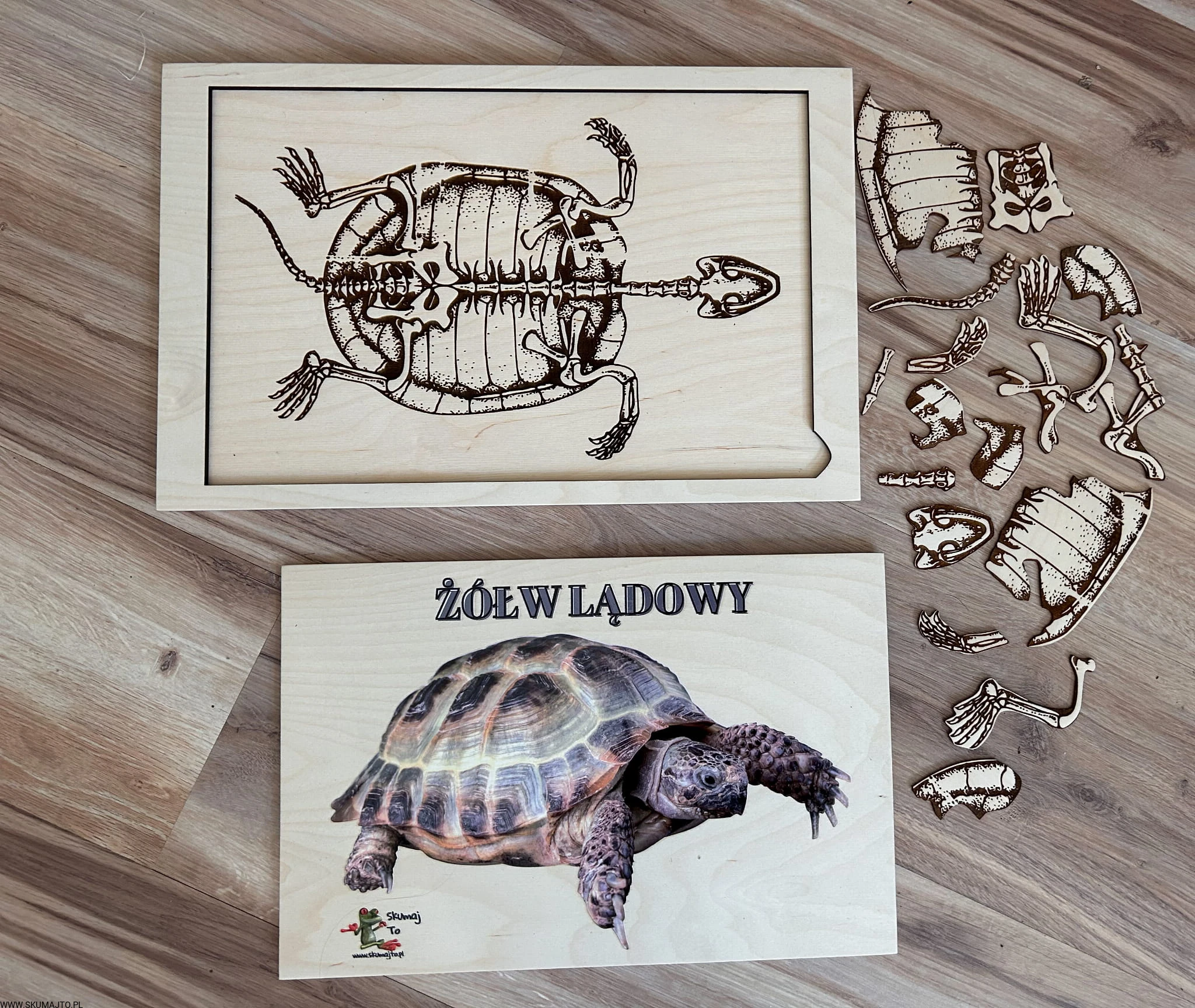 Szkielet żółwia, drewniana układanka, żółw montessori