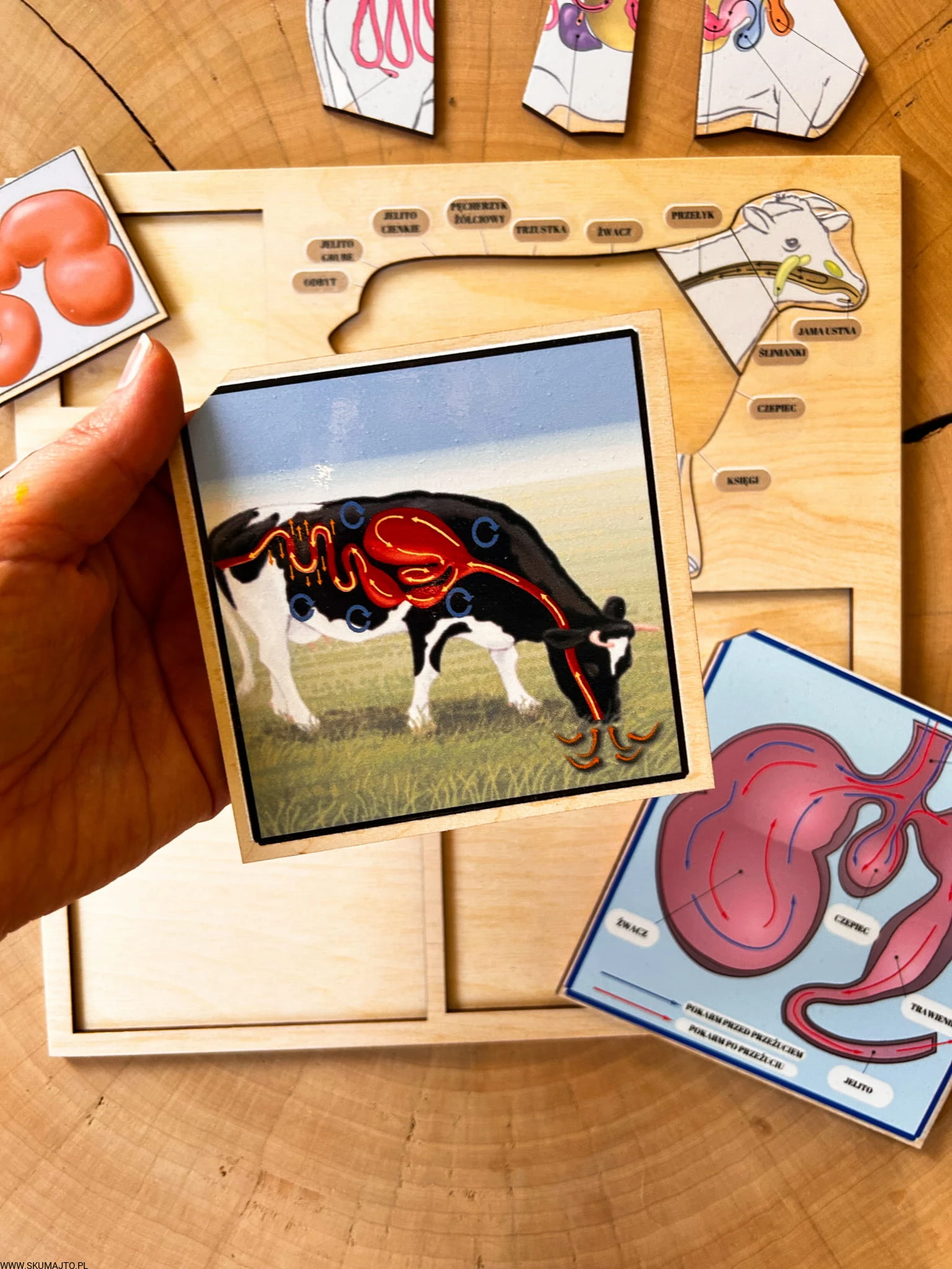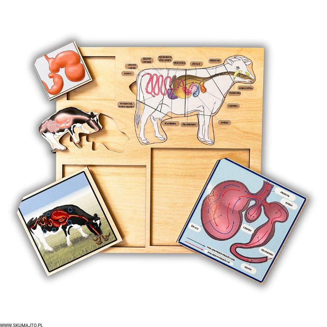 Ta układanka to coś więcej niż zabawa – to okazja, by zrozumieć procesy, które zachodzą wewnątrz ciała zwierzęcia. Dzieci są zafascynowane możliwością „zajrzenia” do środka krowy, a precyzyjne elementy i realistyczne grafiki czynią naukę ciekawą i przystępną. Dzięki temu układanka nie tylko rozwija zdolności manualne, ale także wprowadza dzieci w świat nauki o organizmach żywych.