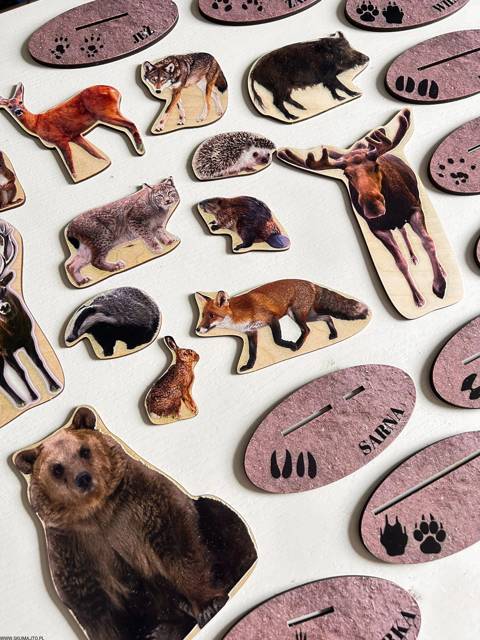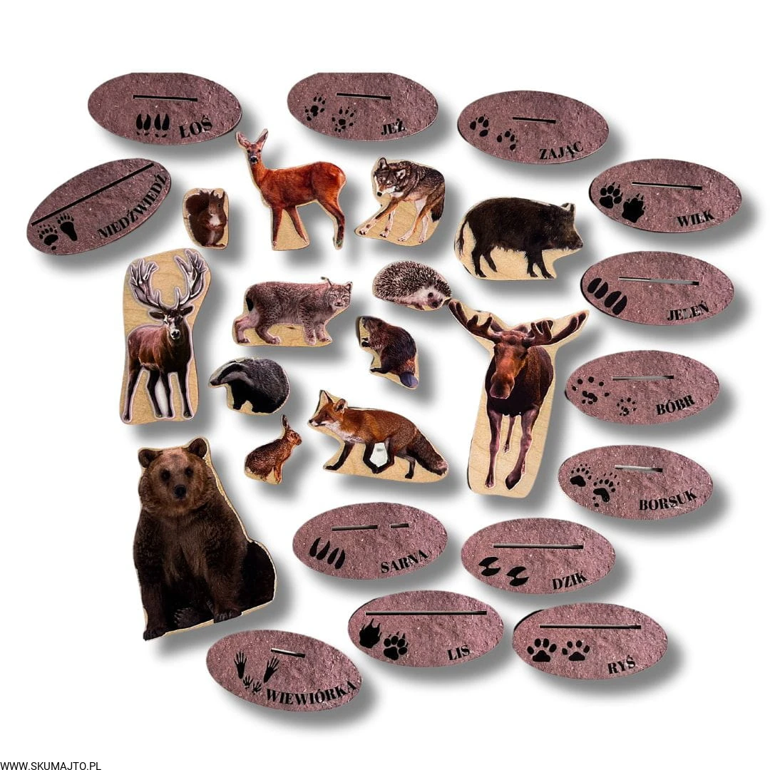 Drewniana układanka „Tropy zwierząt leśnych” – edukacja przez zabawę w sercu natury!