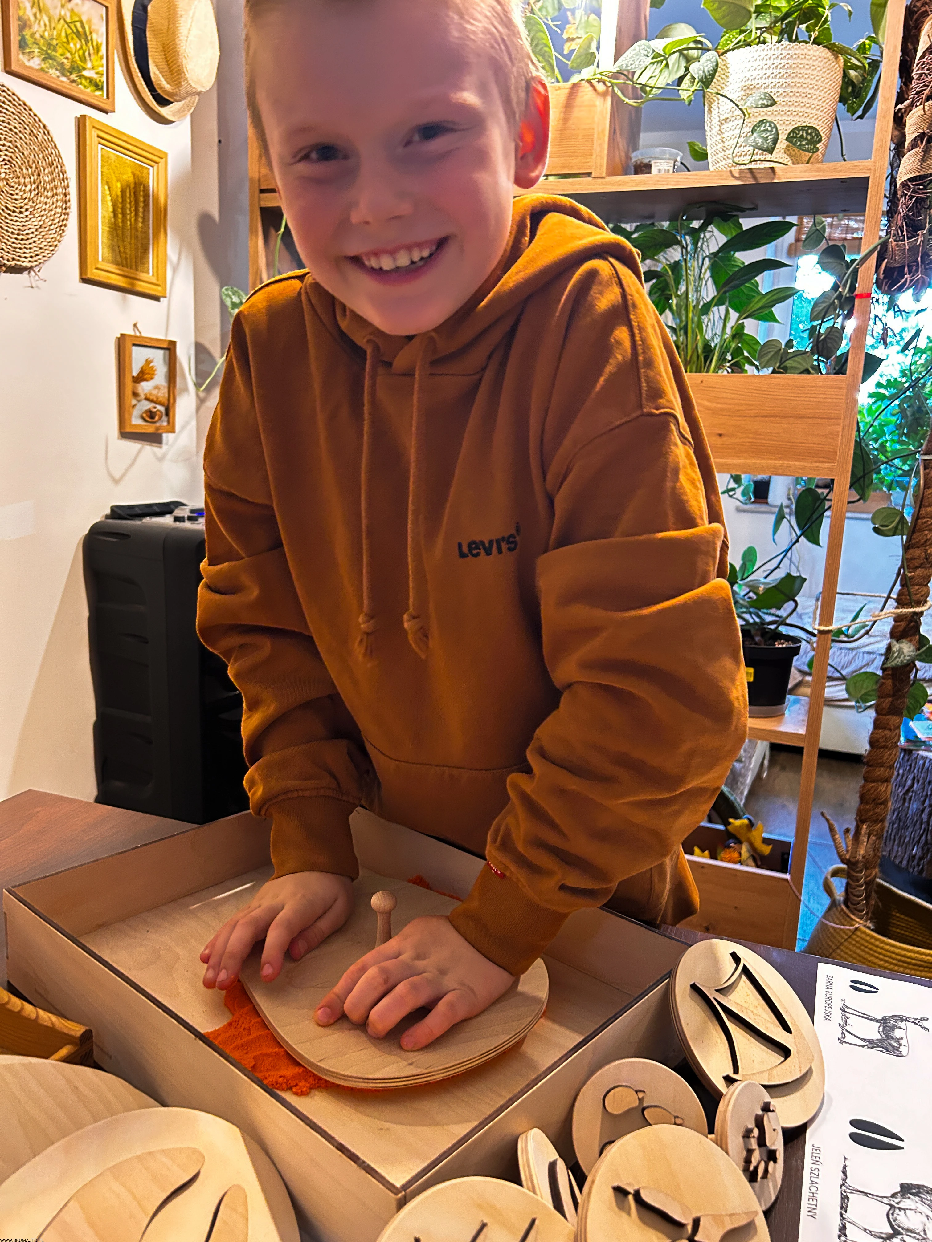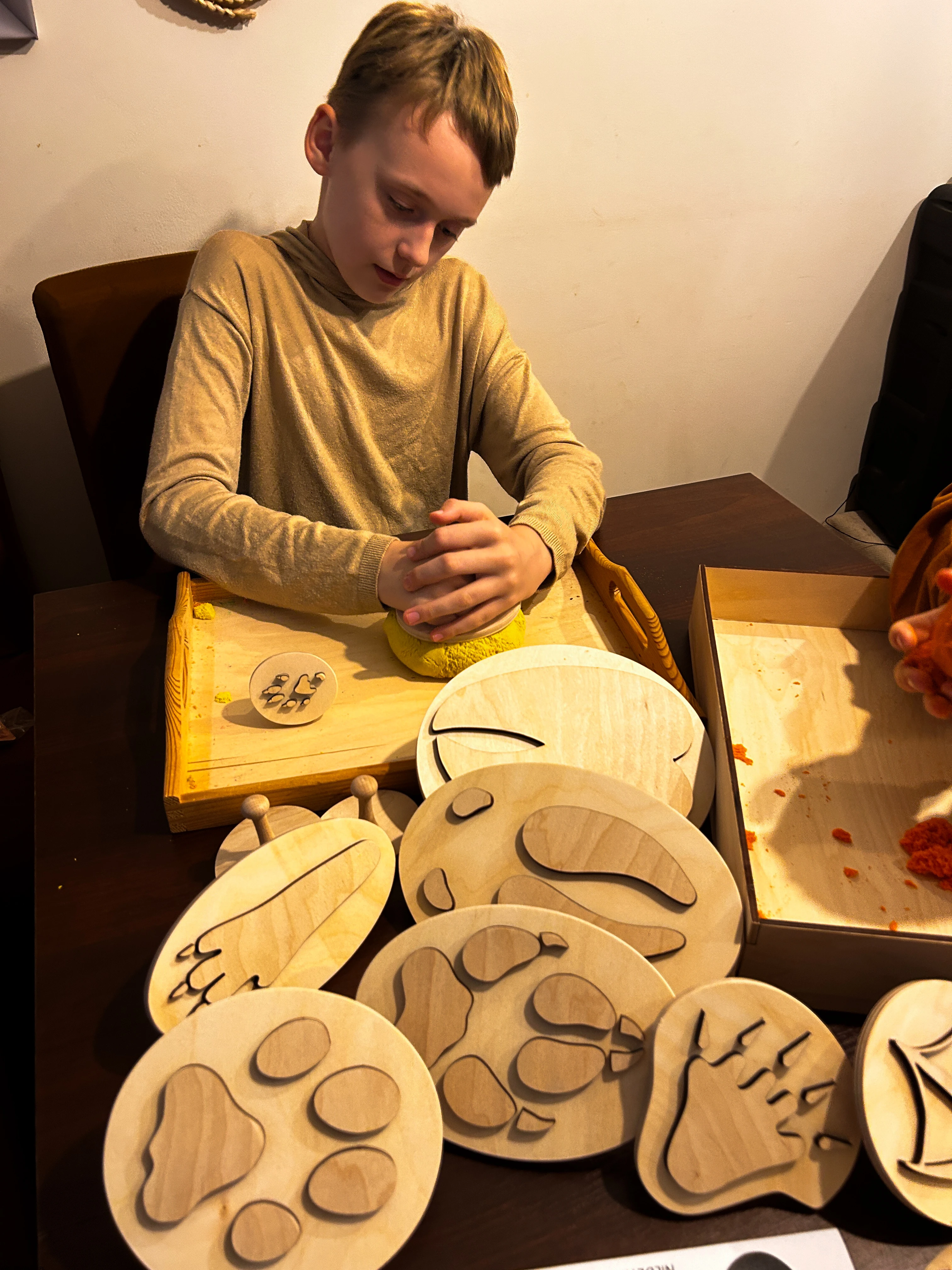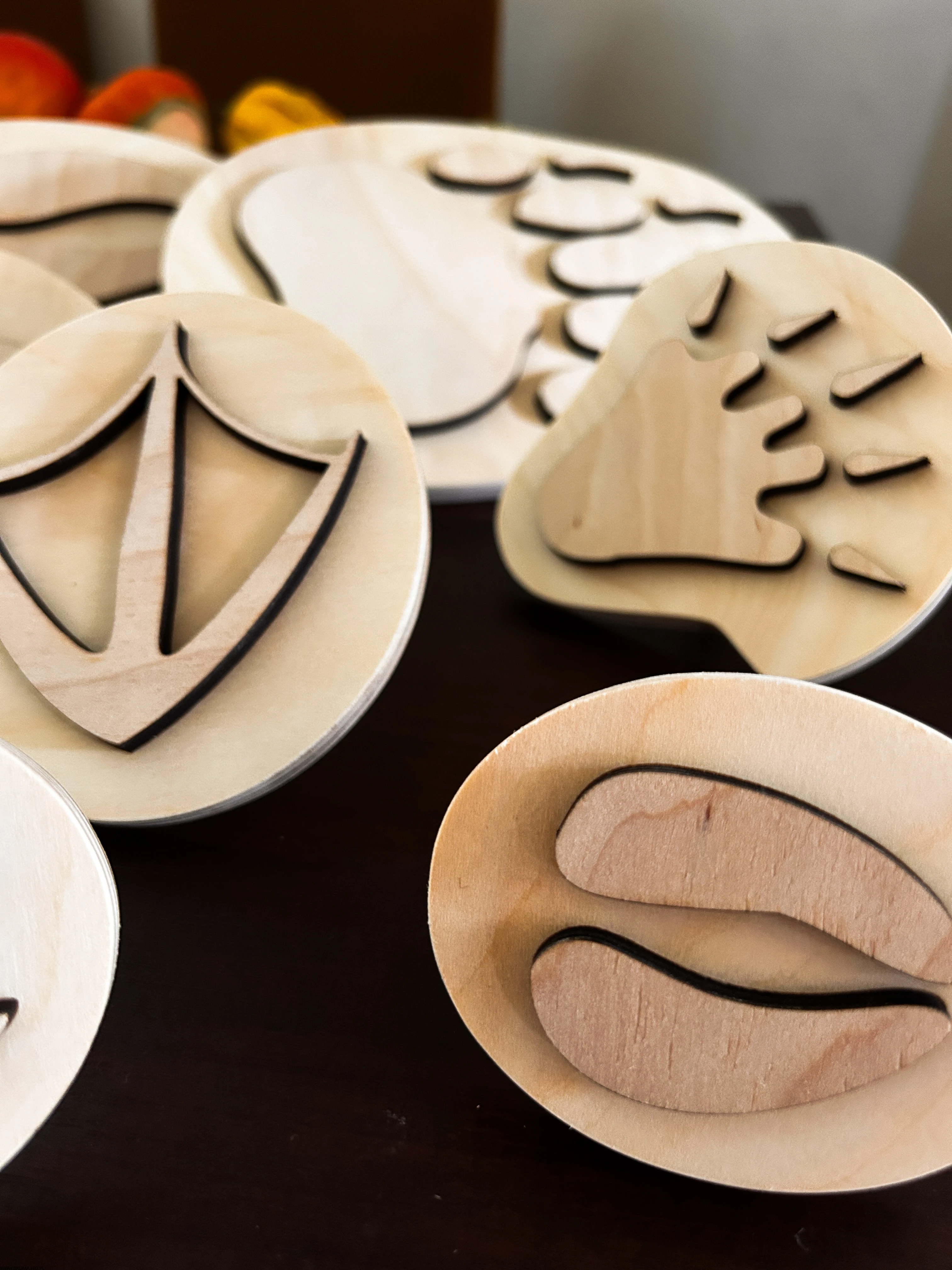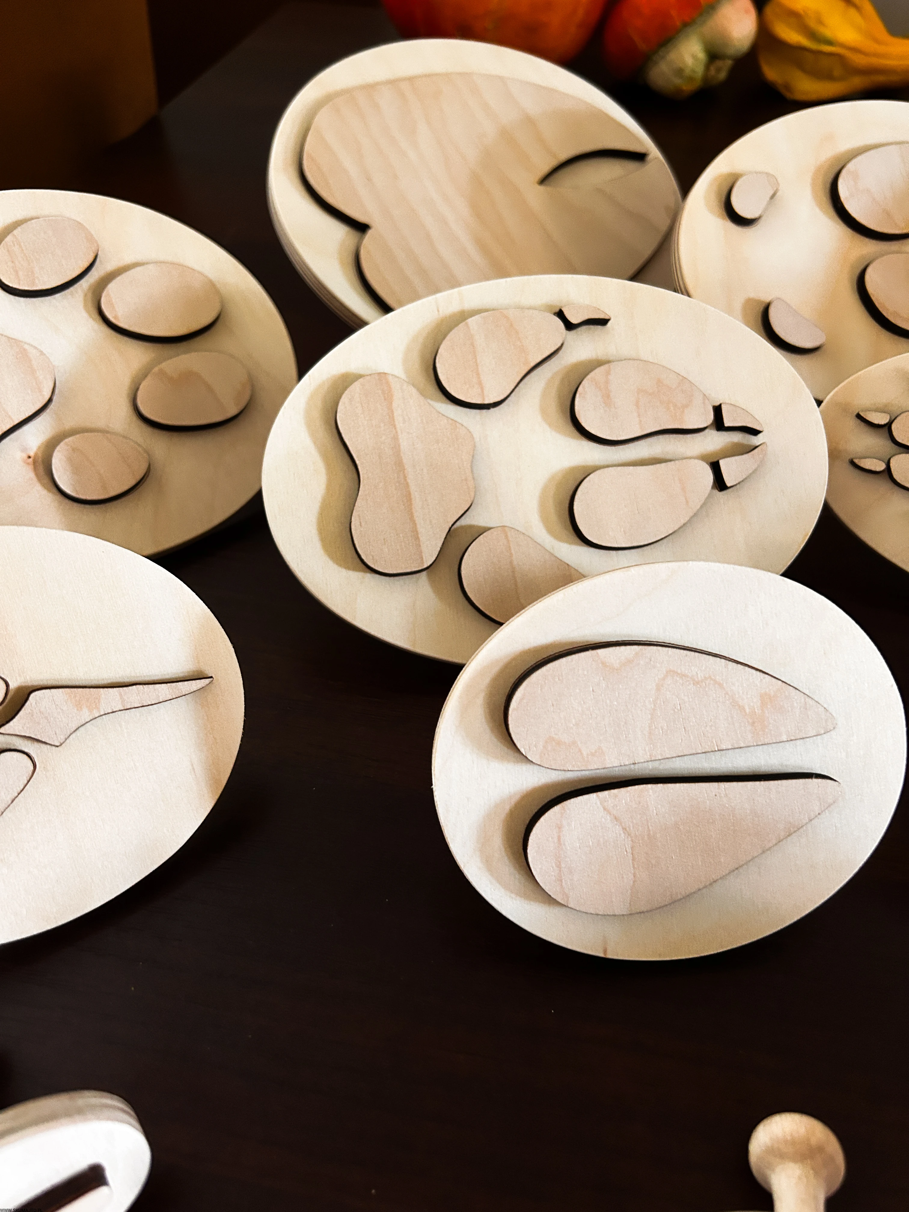 Wystarczy zestaw drewnianych pieczątek z tropami, które – dosłownie – przenoszą leśną ścieżkę do sali zabaw, przedszkola czy domu.