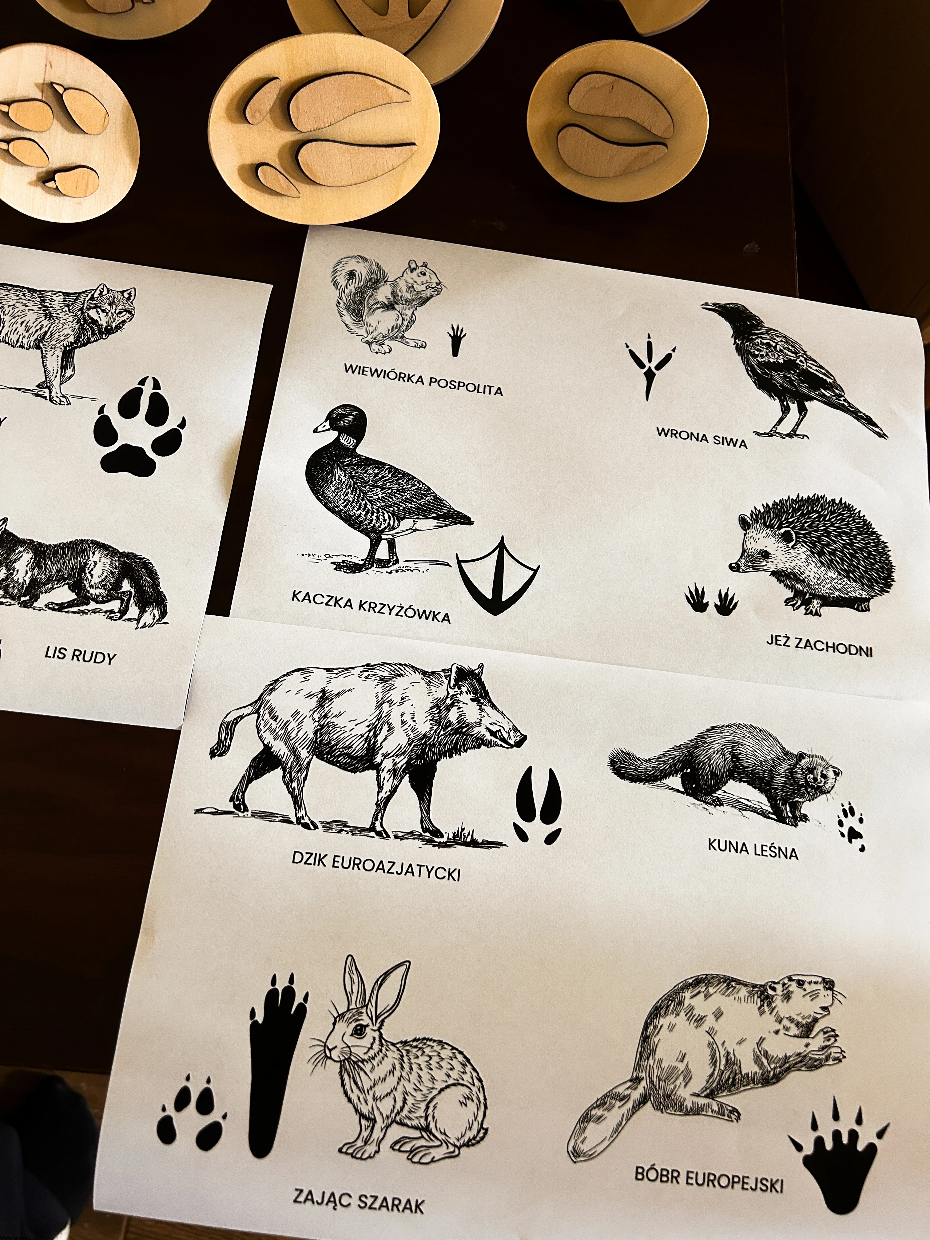 Który trop jest największy? Który ma pazury? Który należy do ptaka, a który do ssaka? Dzieci uczą się analizować i kategoryzować.