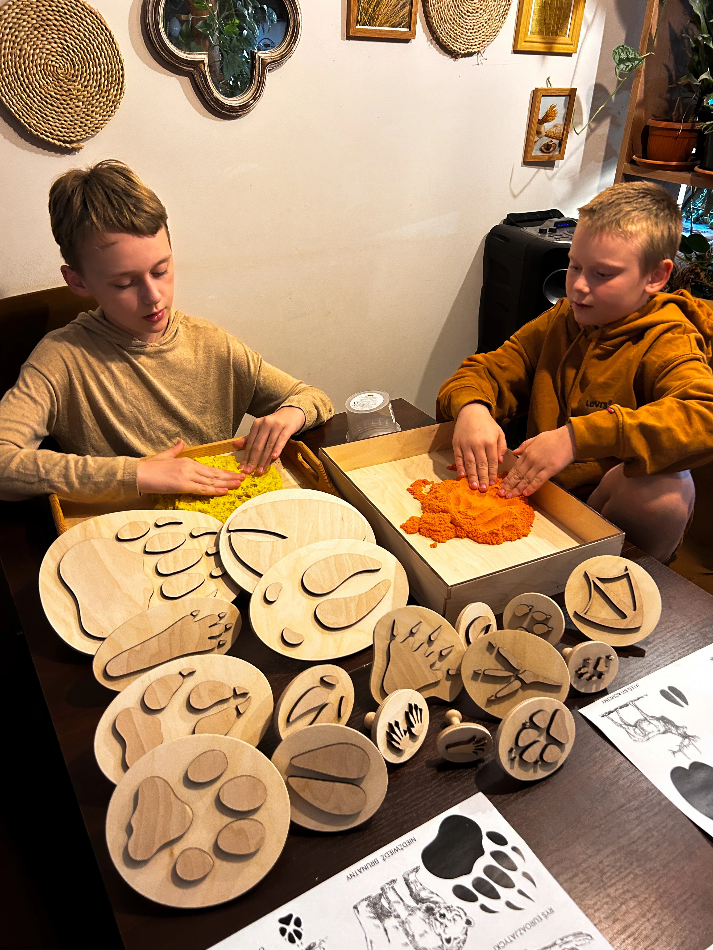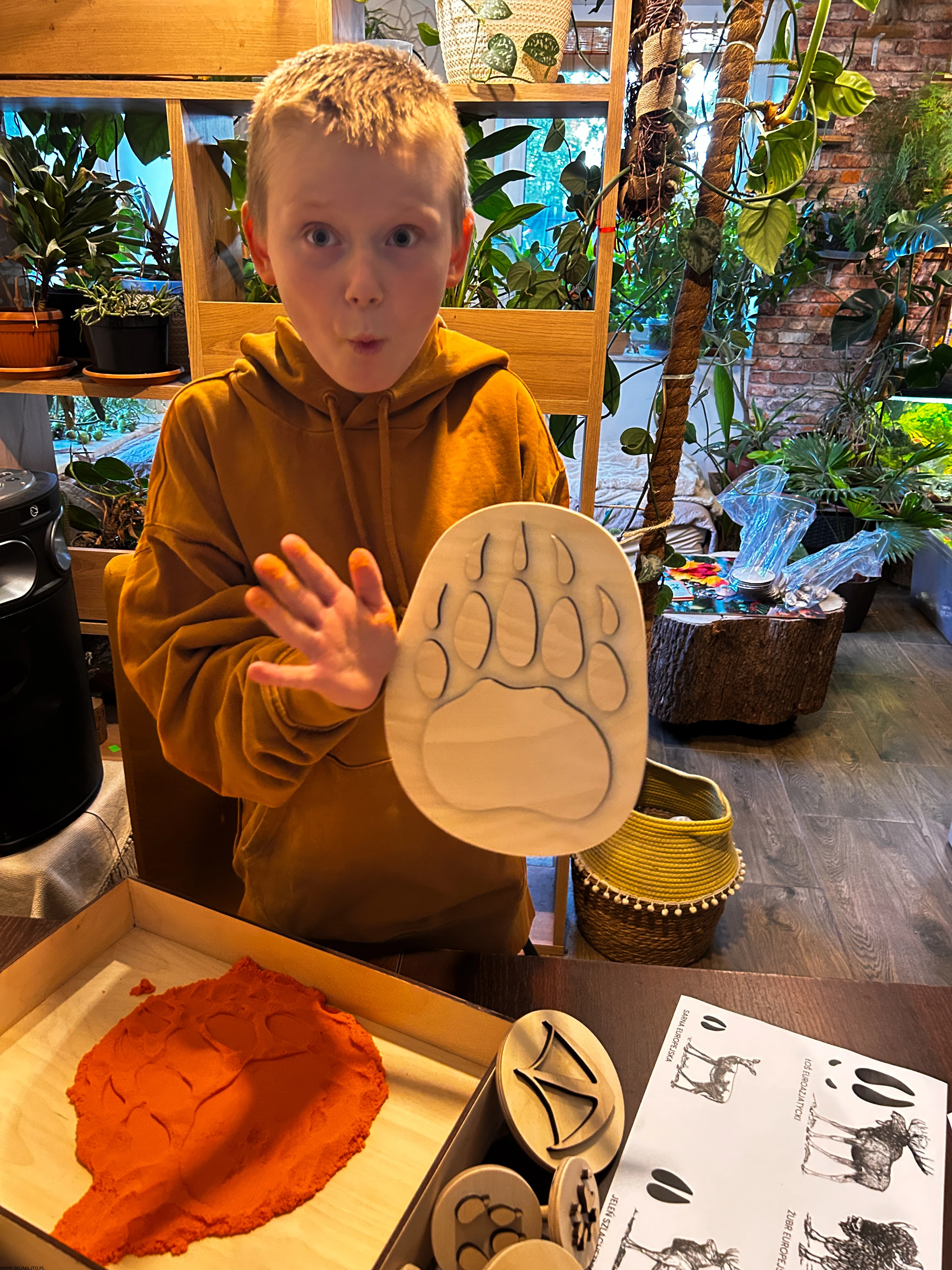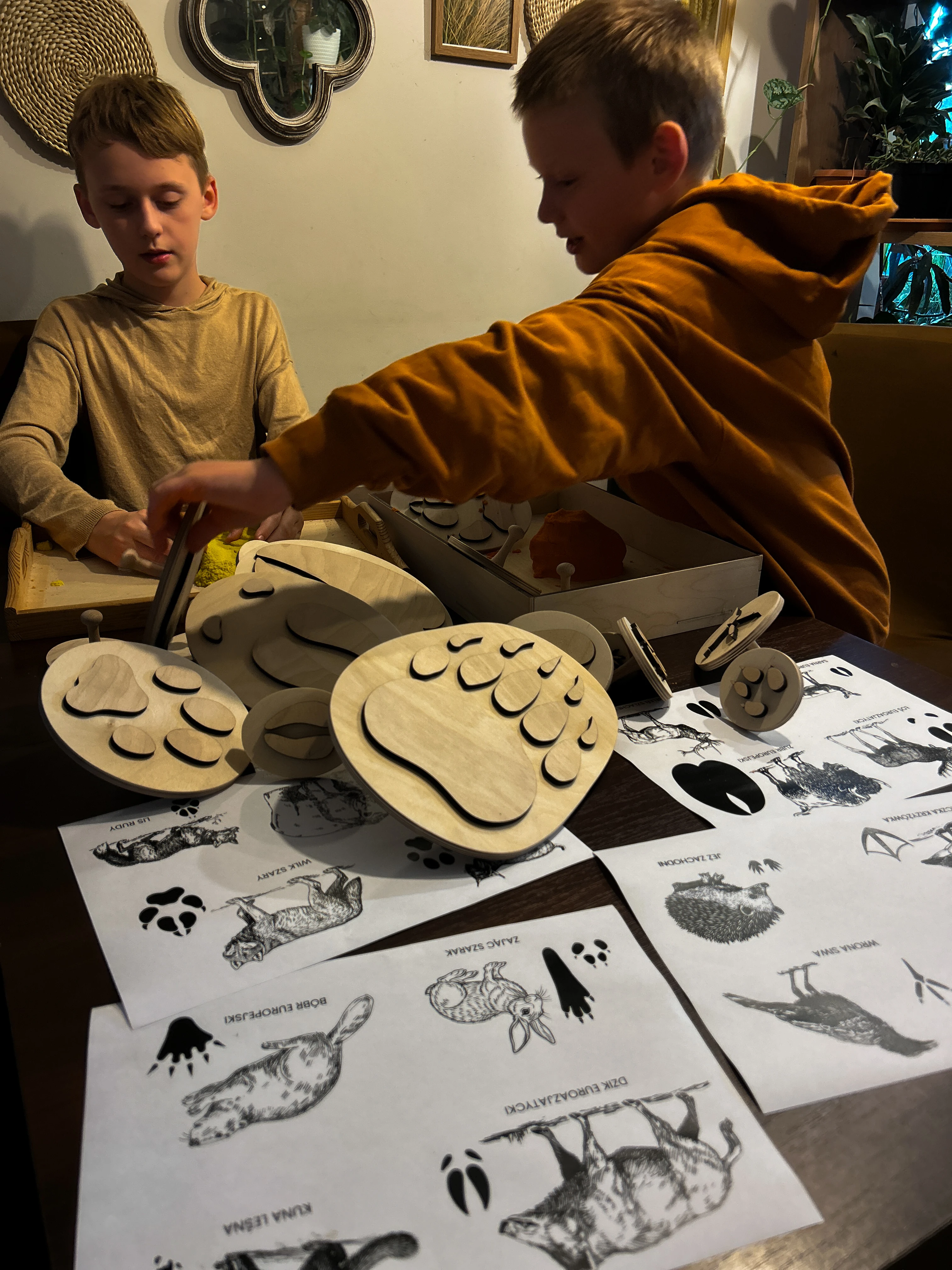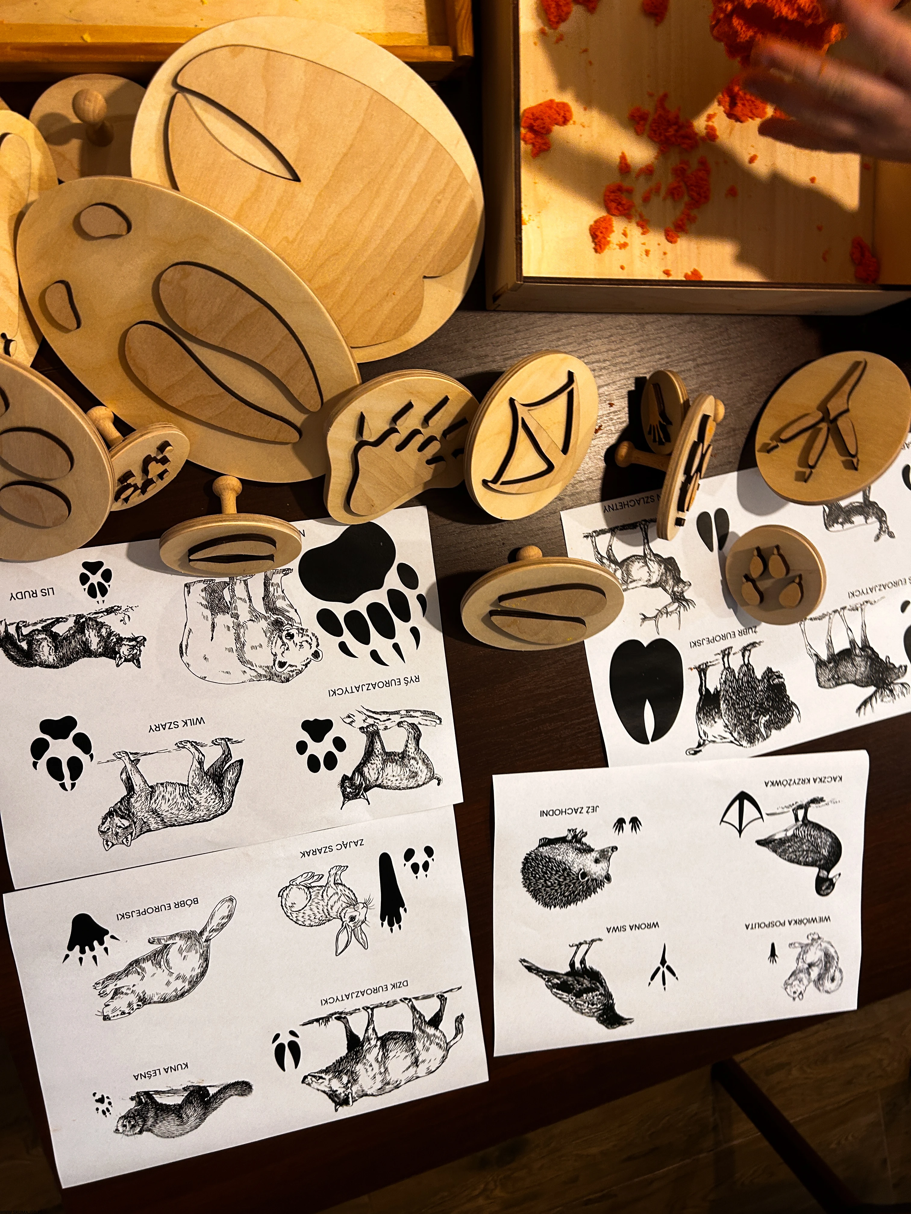 Każdy trop został zaprojektowany i wykonany w skali 1:1, co oznacza, że dzieci widzą i dotykają dokładnie takie ślady, jakie można znaleźć w naturze.