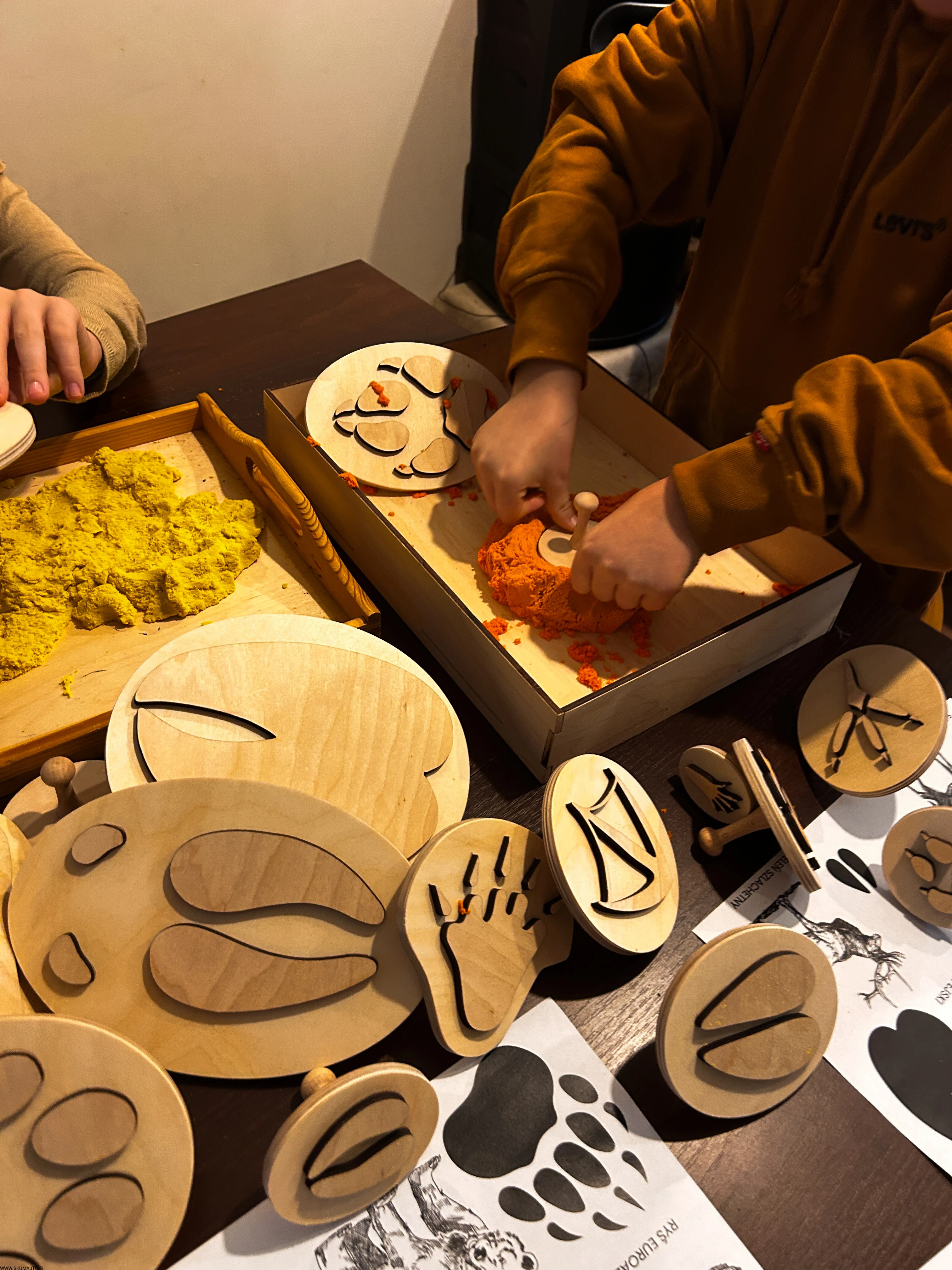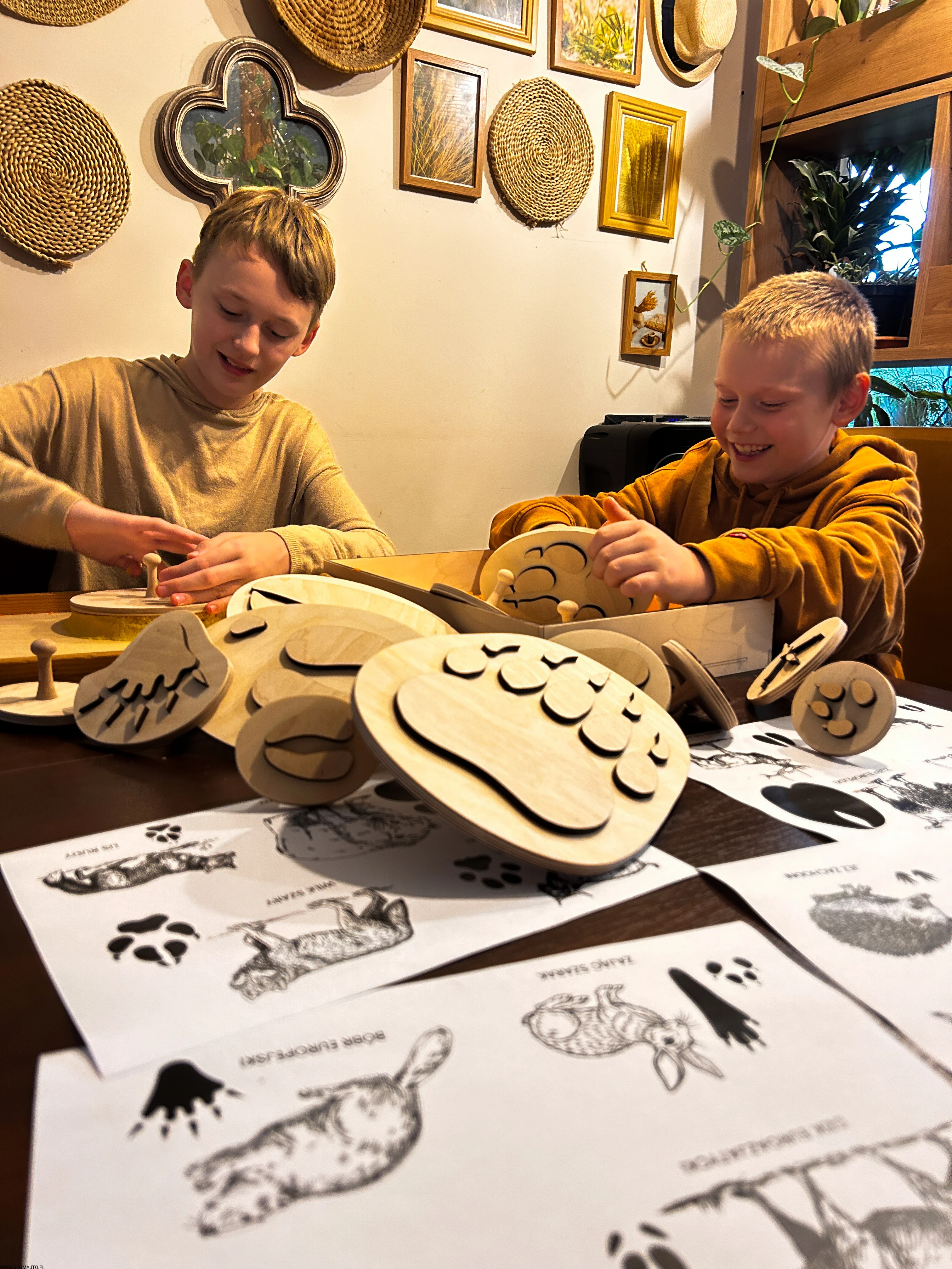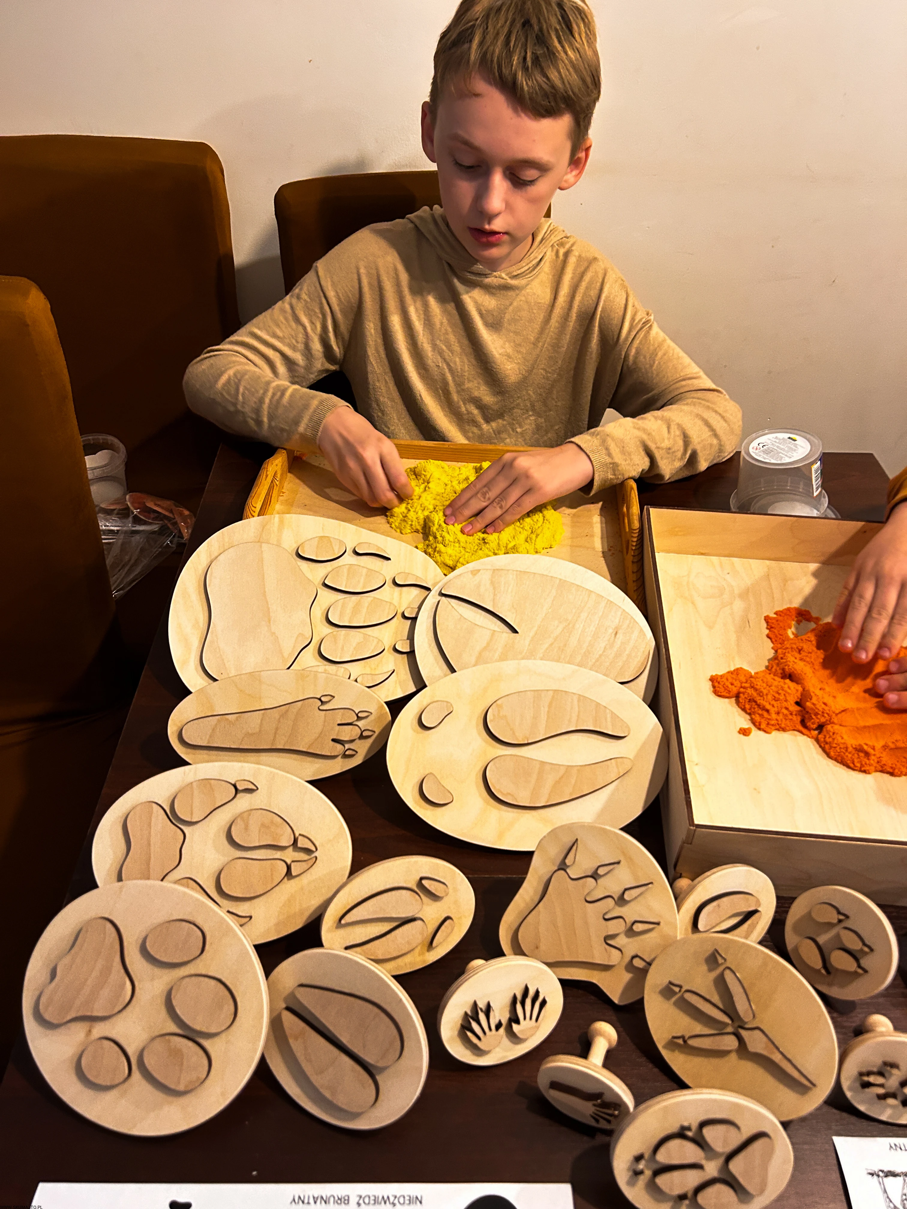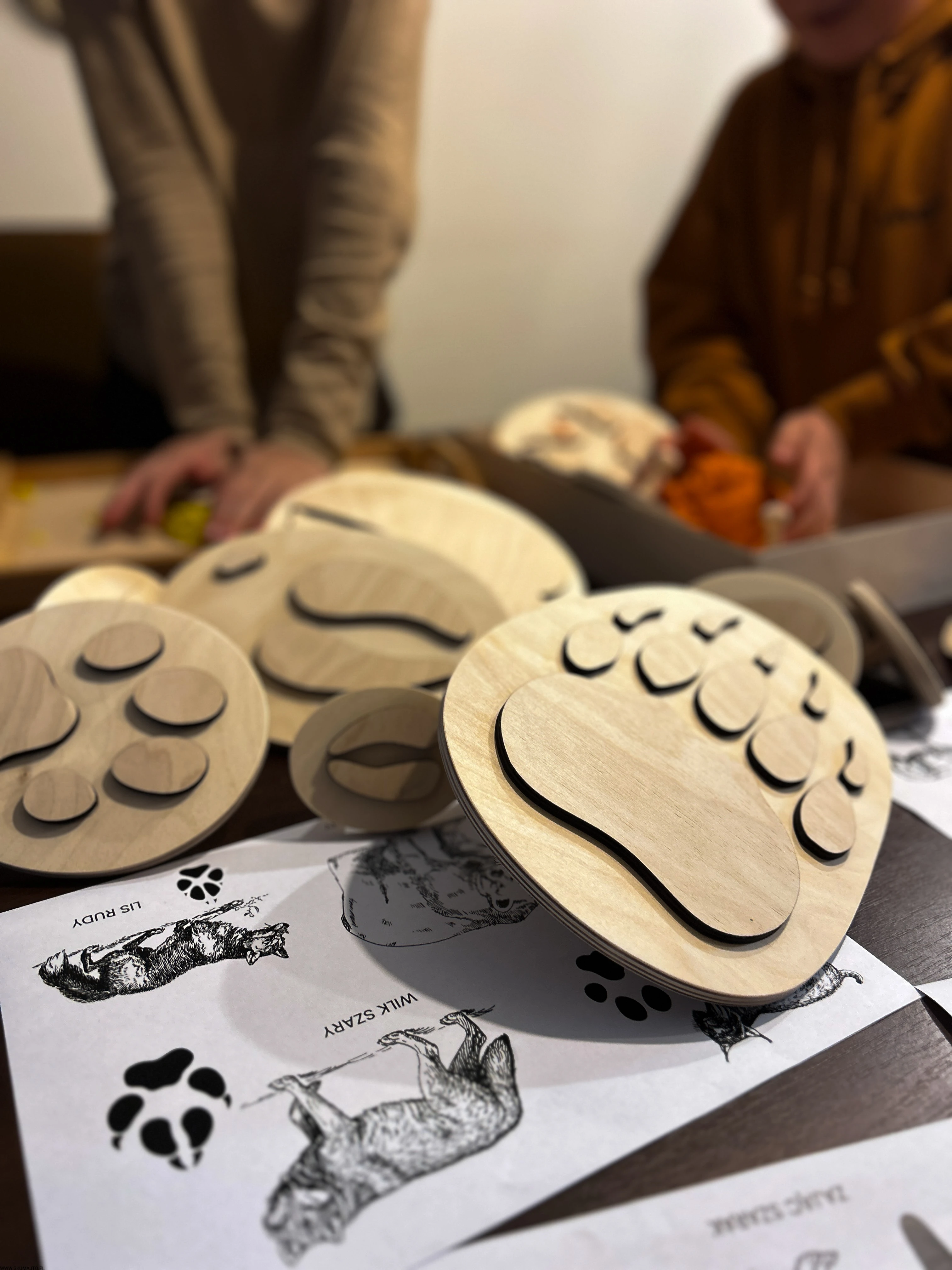 Każdy trop został zaprojektowany i wykonany w skali 1:1, co oznacza, że dzieci widzą i dotykają dokładnie takie ślady, jakie można znaleźć w naturze.