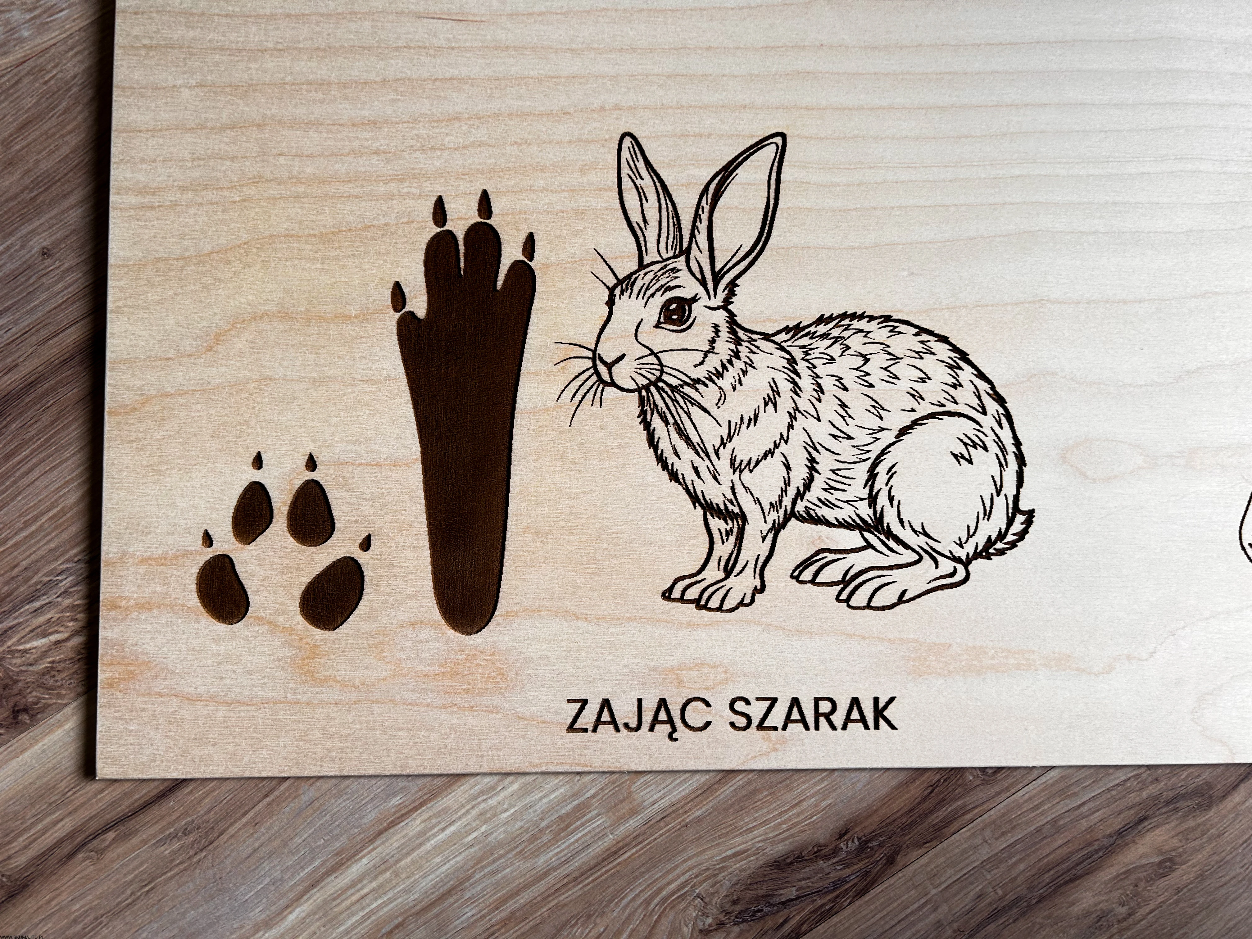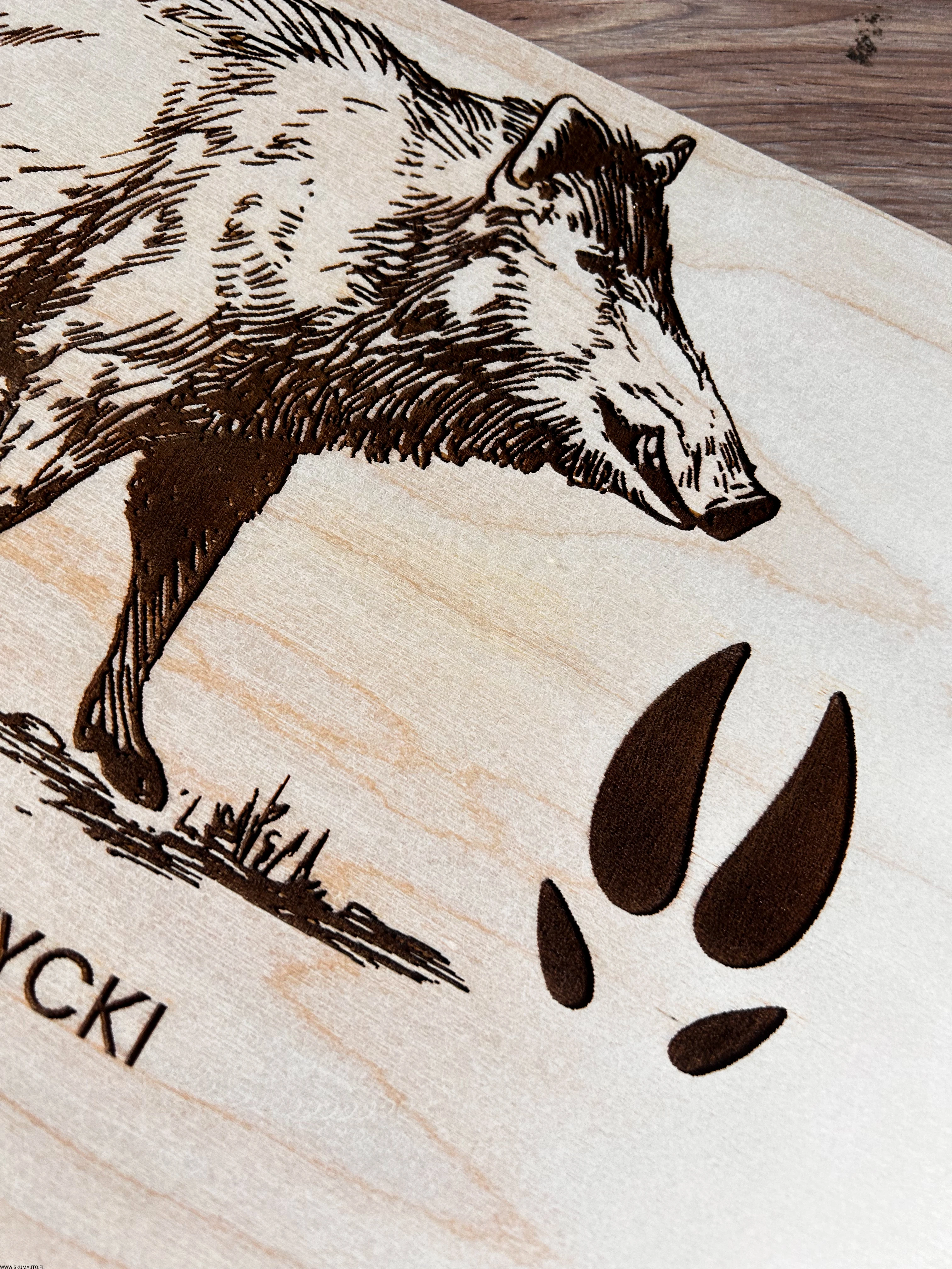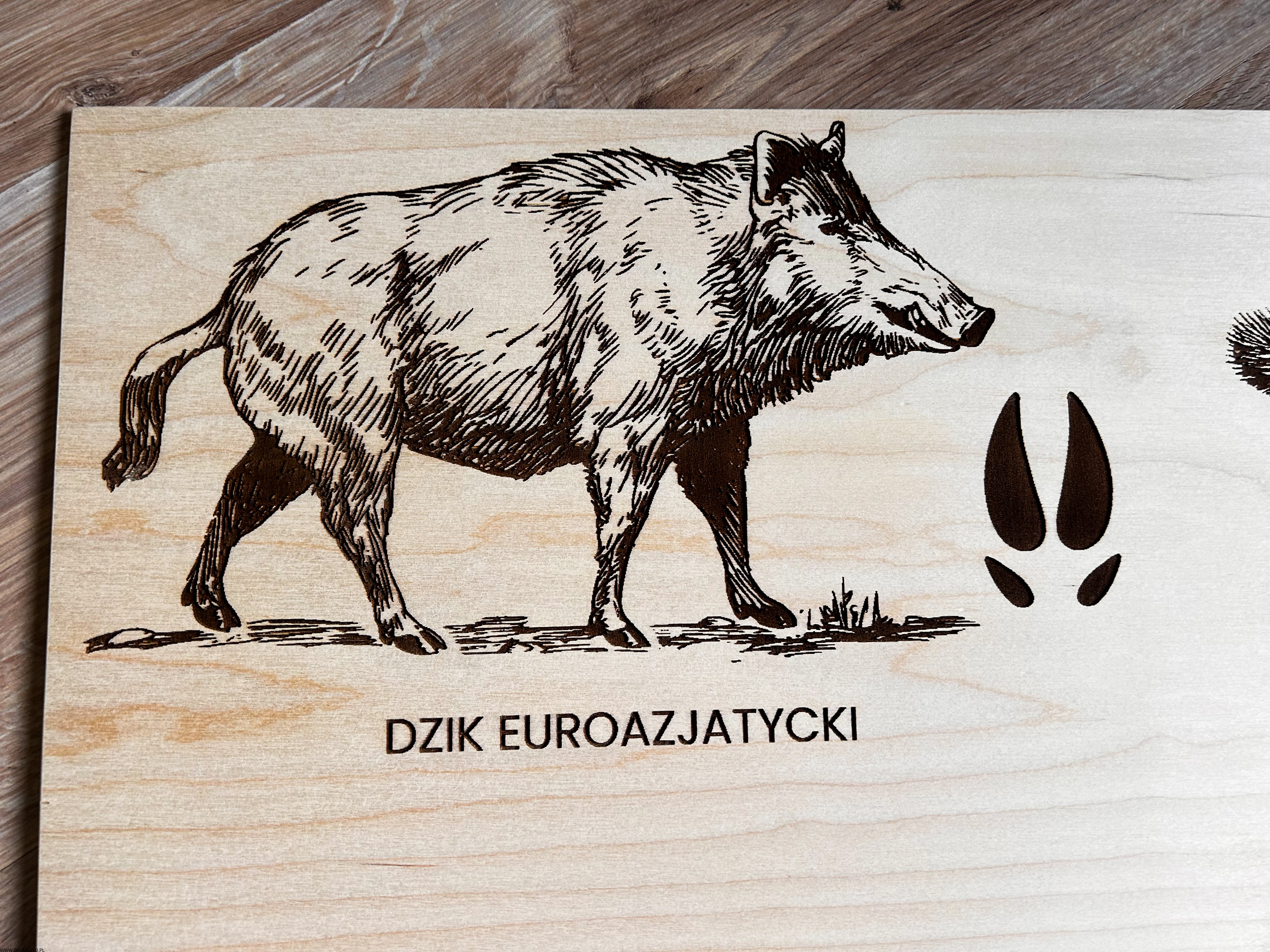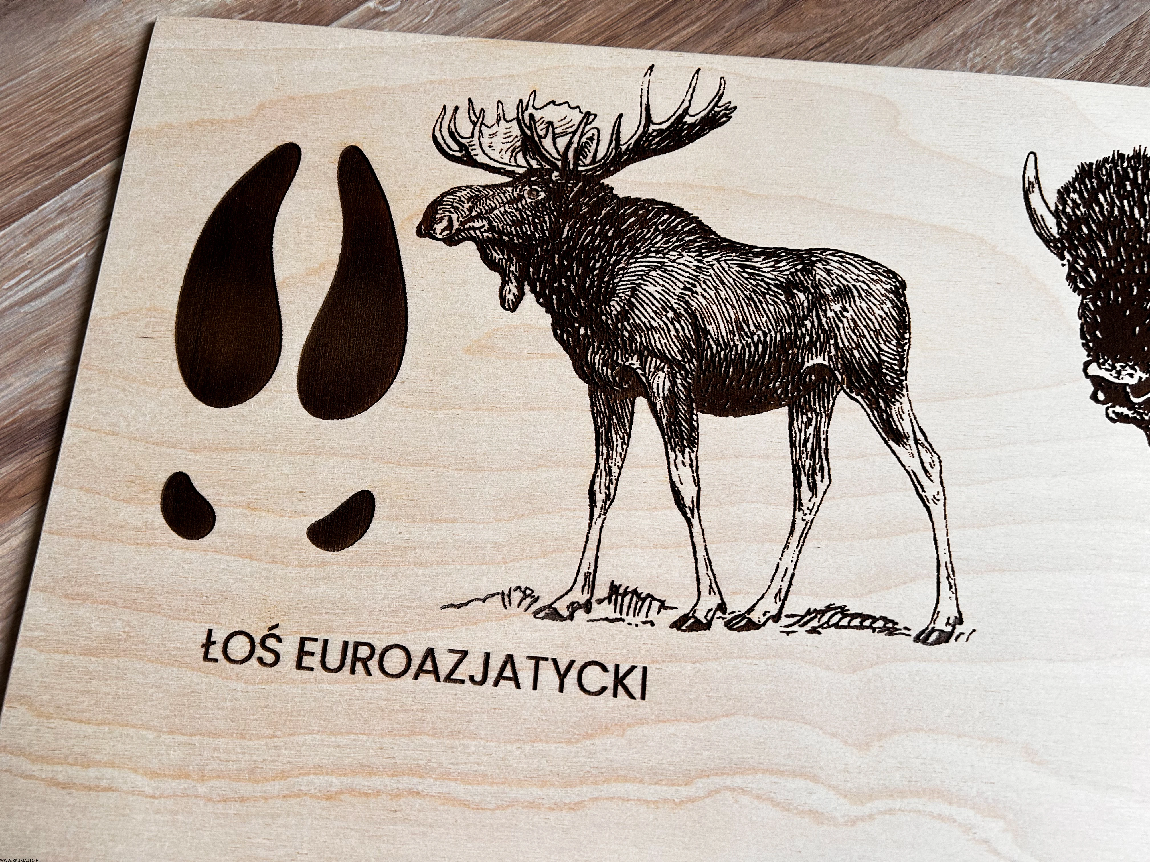 Wykonane z wysokiej jakości drewna, każda plansza prezentuje sylwetki zwierząt leśnych i ich tropy – wygrawerowane w sposób precyzyjny, trwały i efektowny.