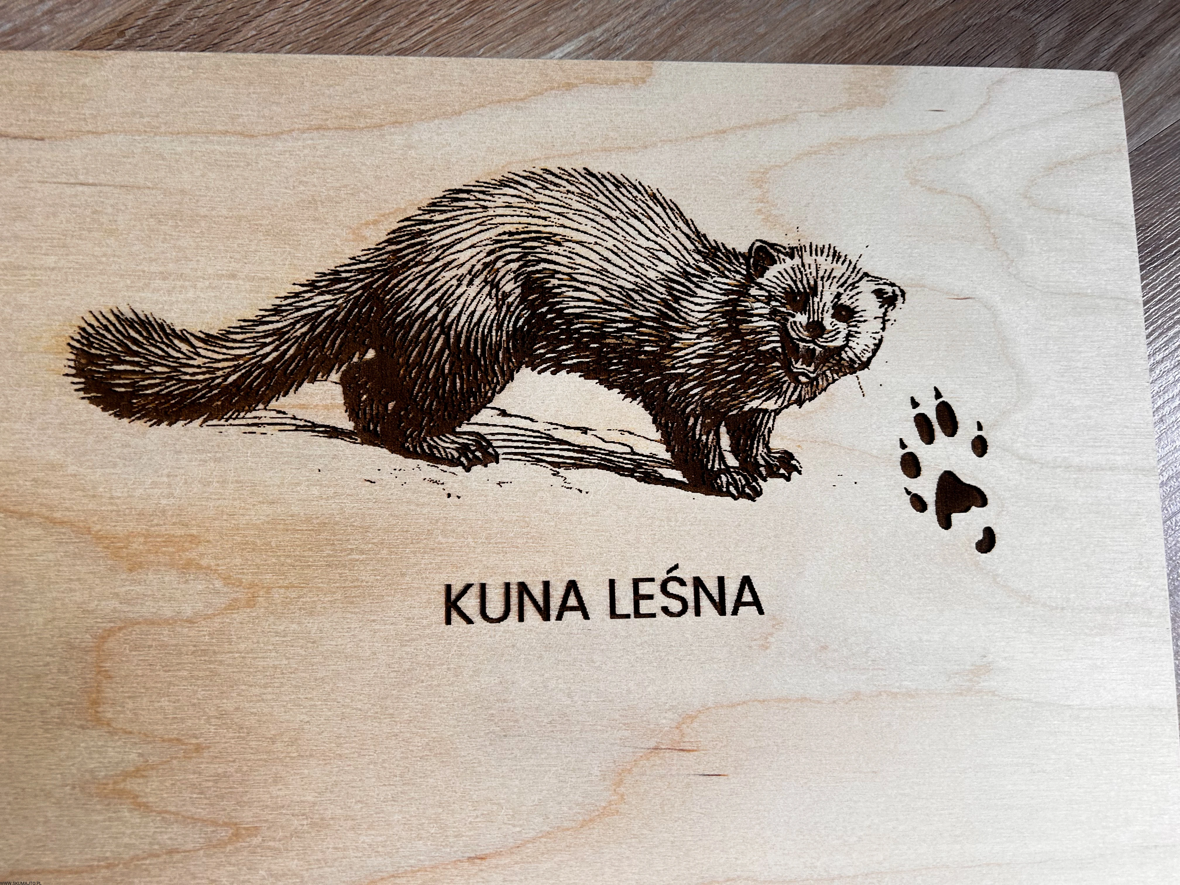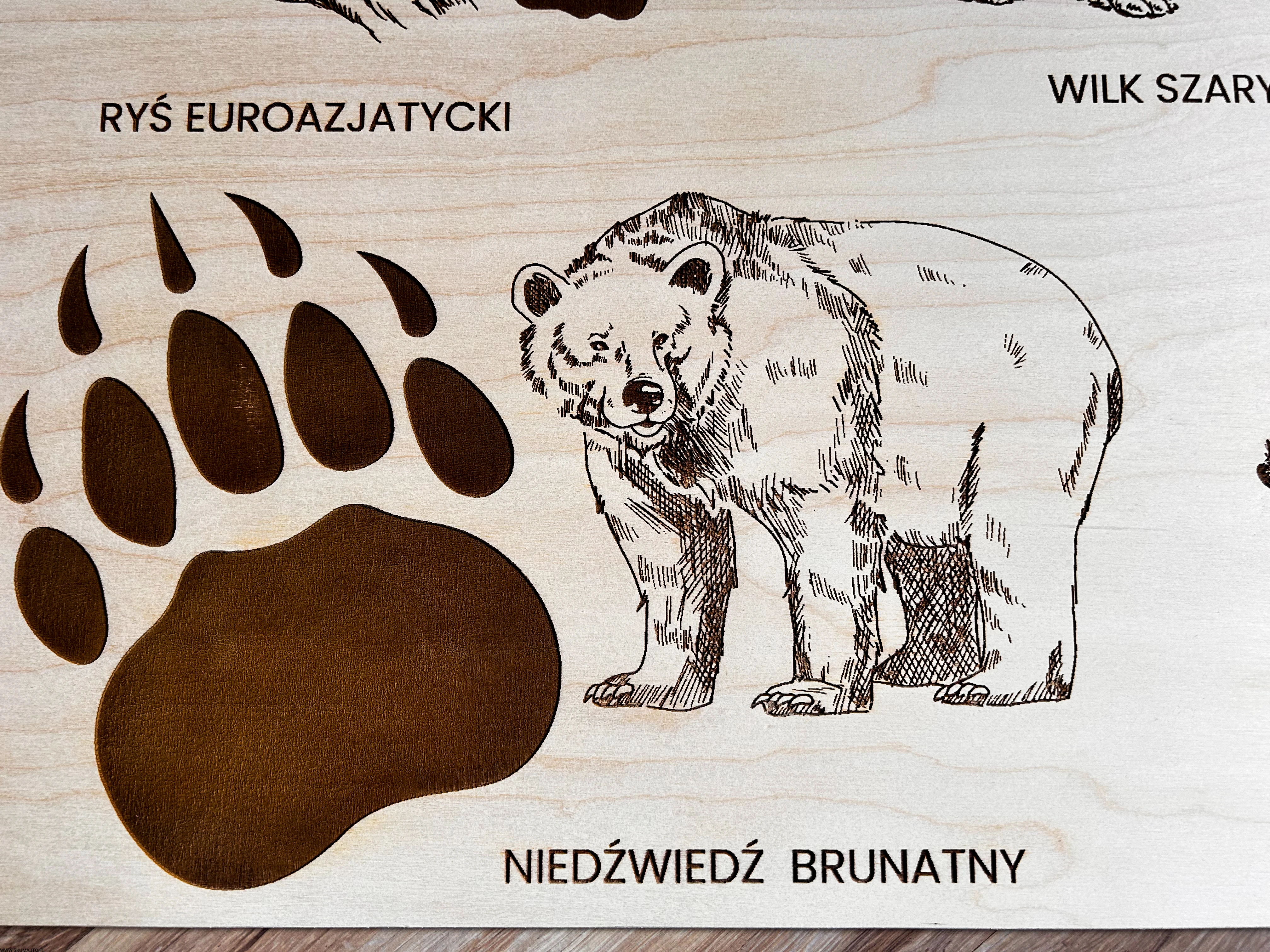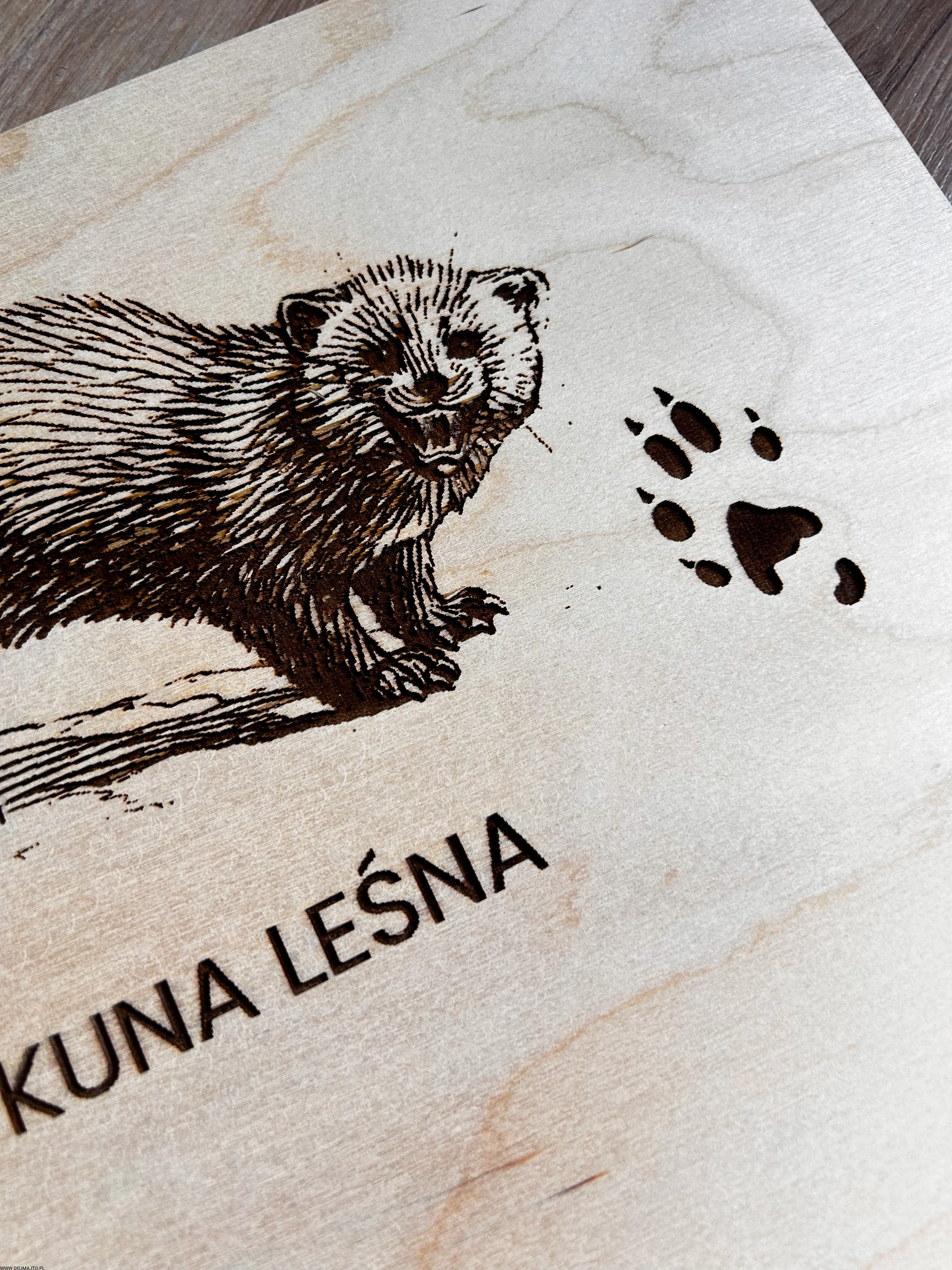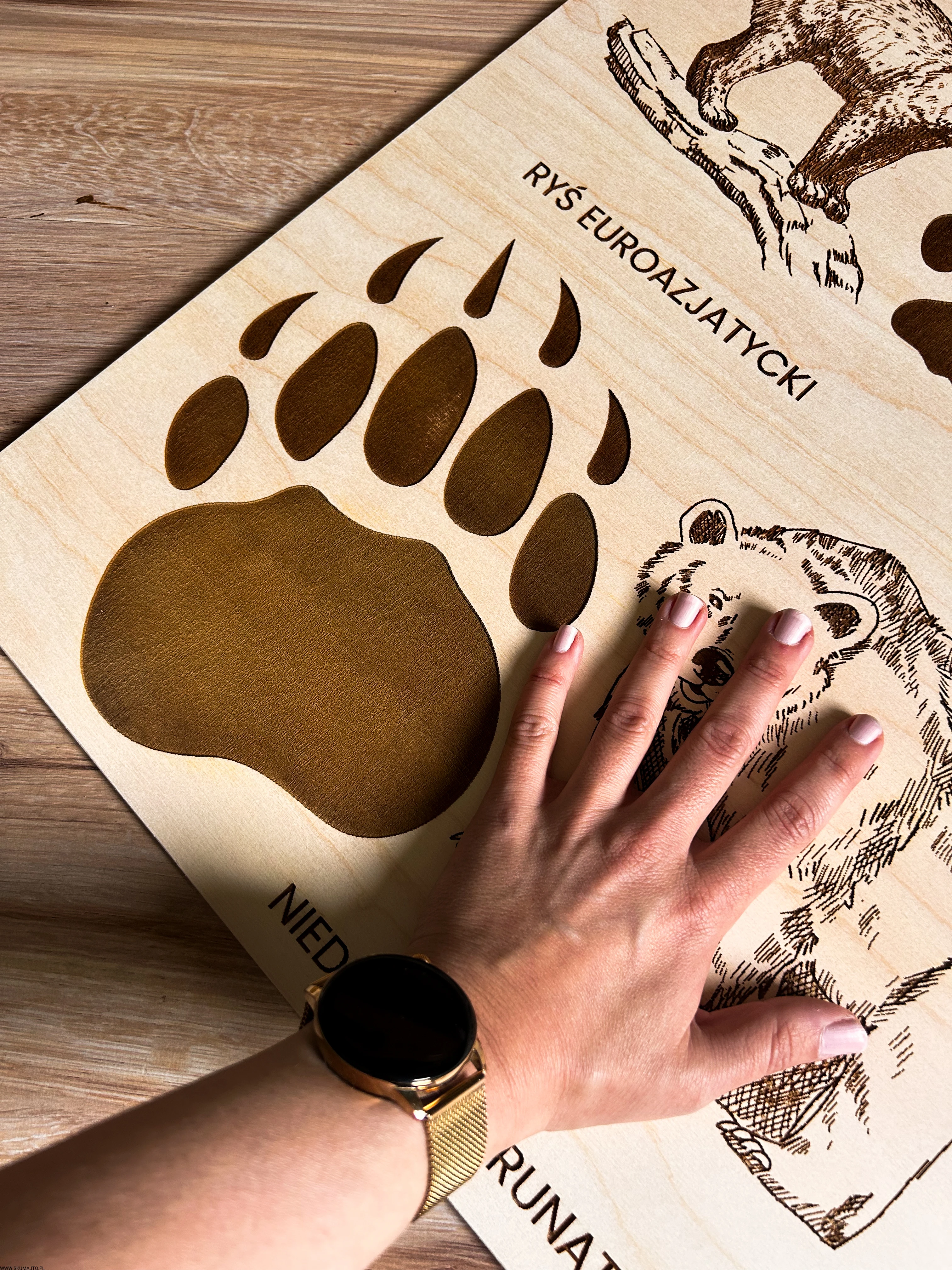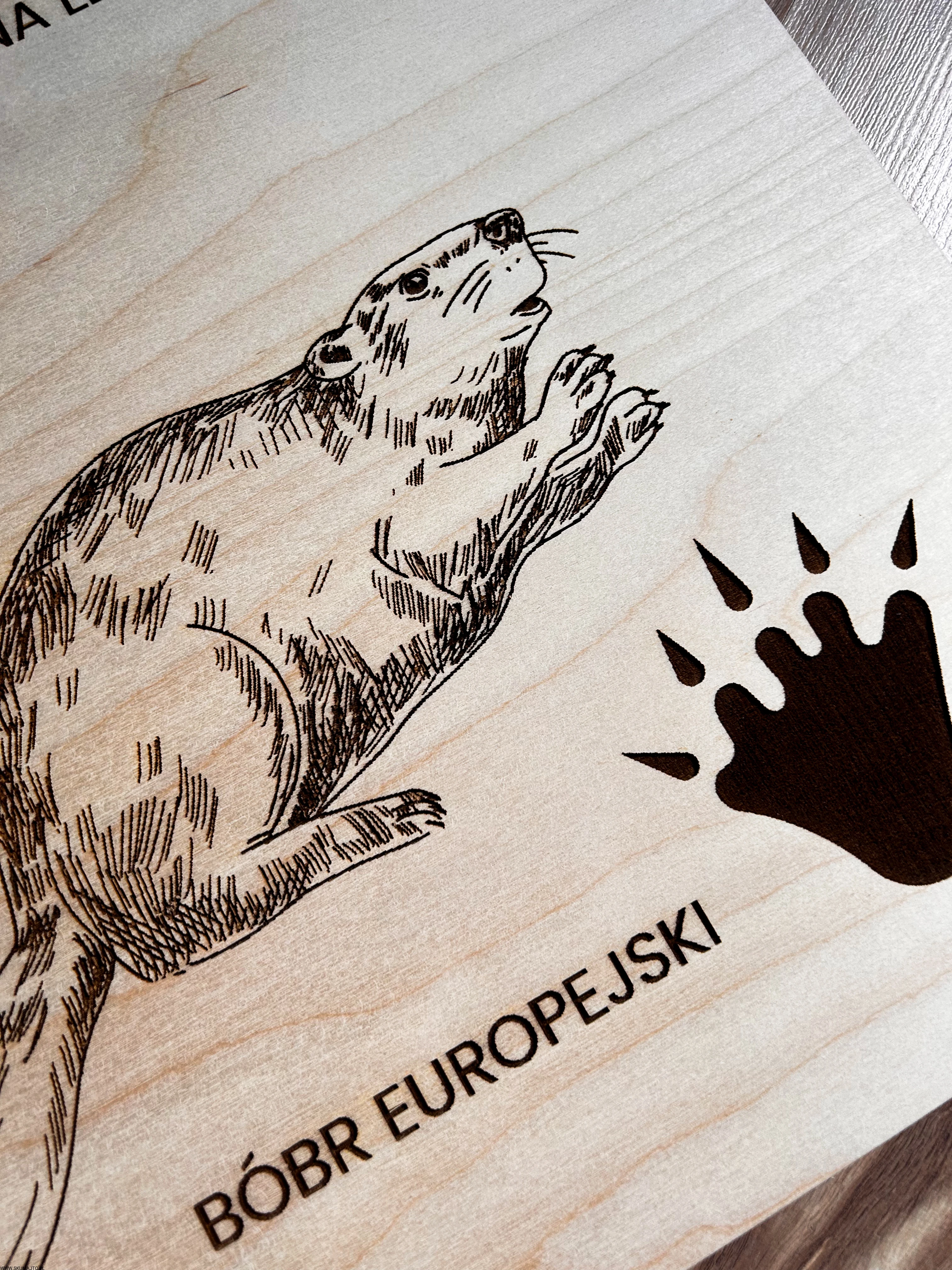 Wykonane z wysokiej jakości drewna, każda plansza prezentuje sylwetki zwierząt leśnych i ich tropy – wygrawerowane w sposób precyzyjny, trwały i efektowny.