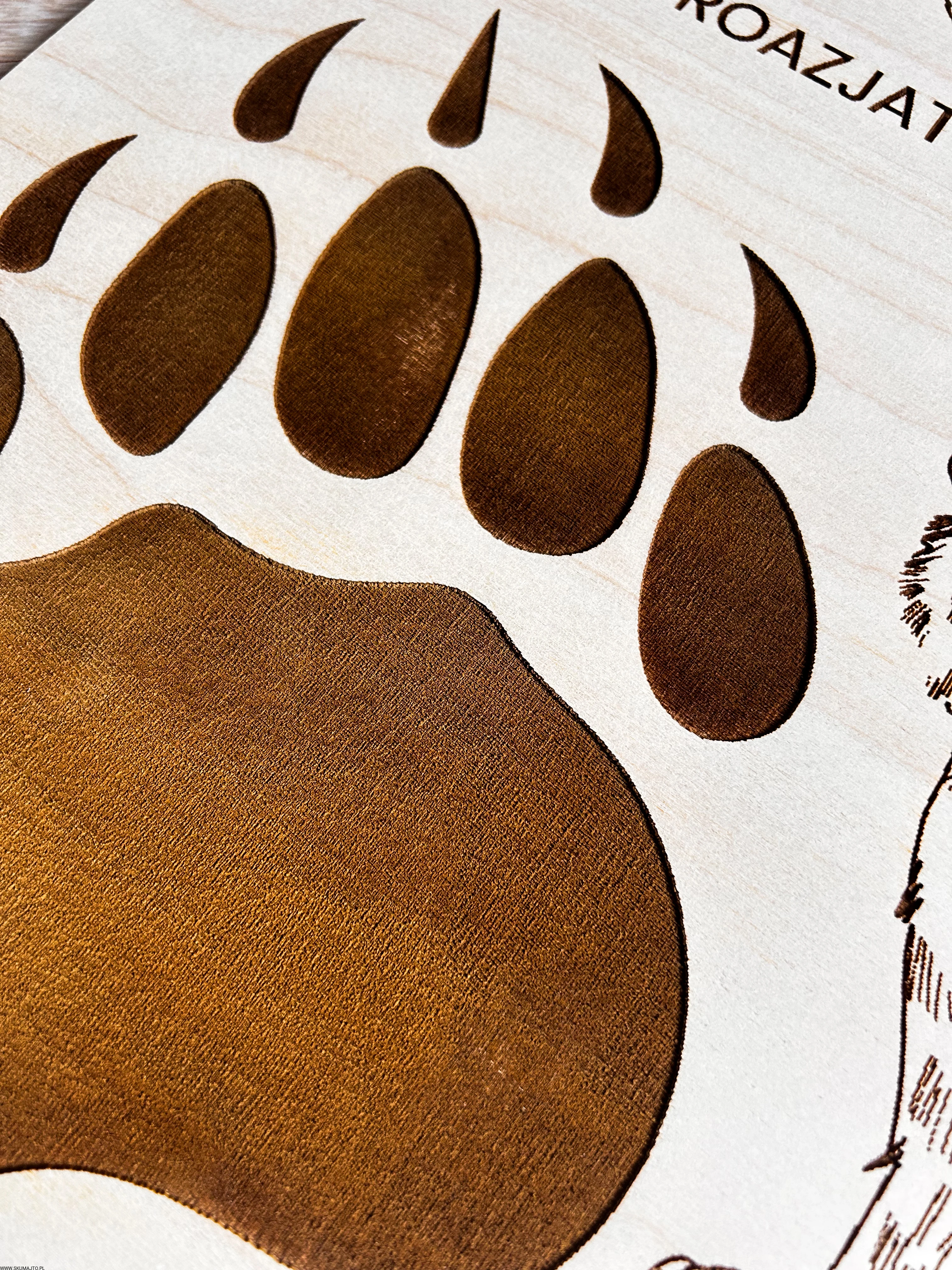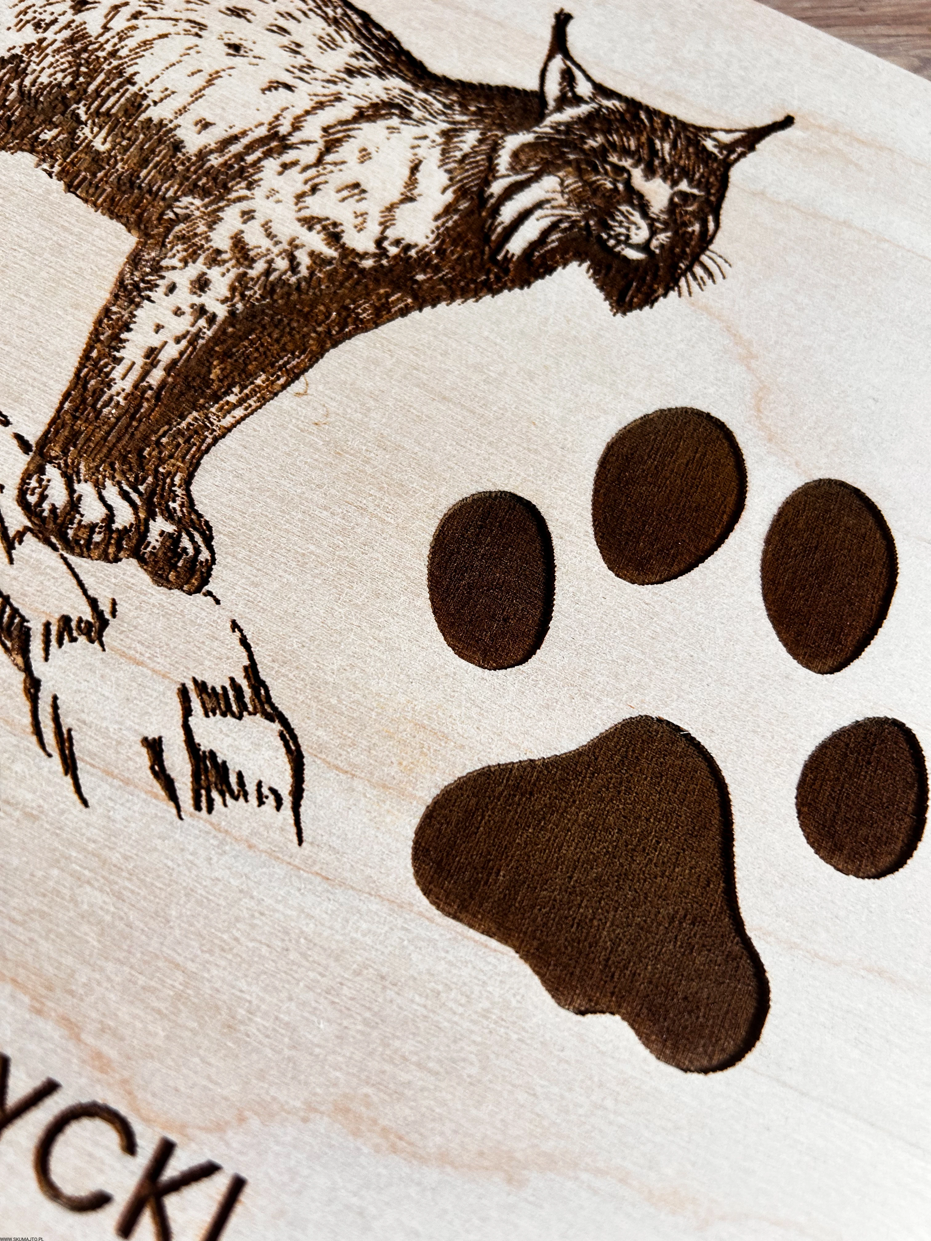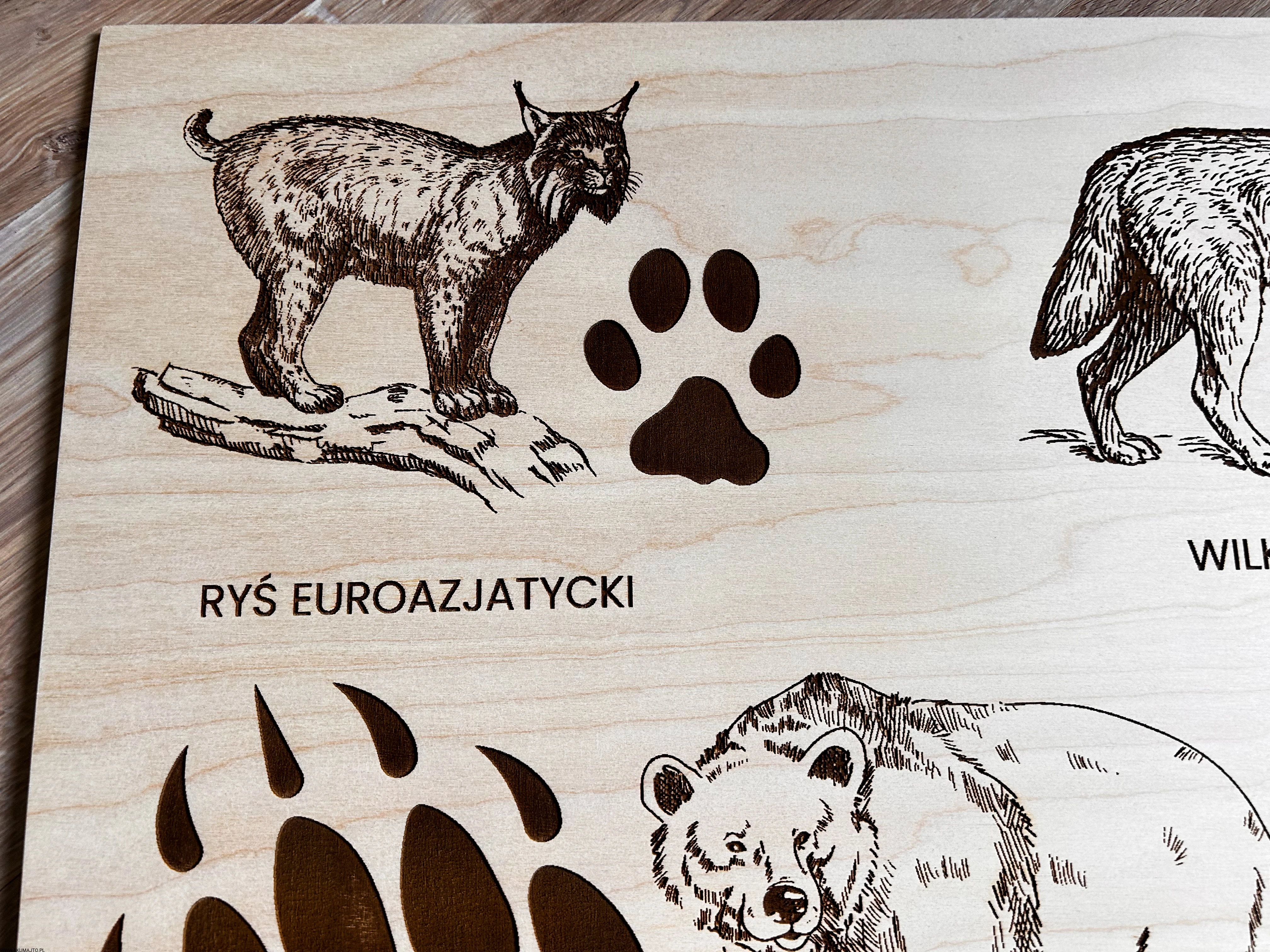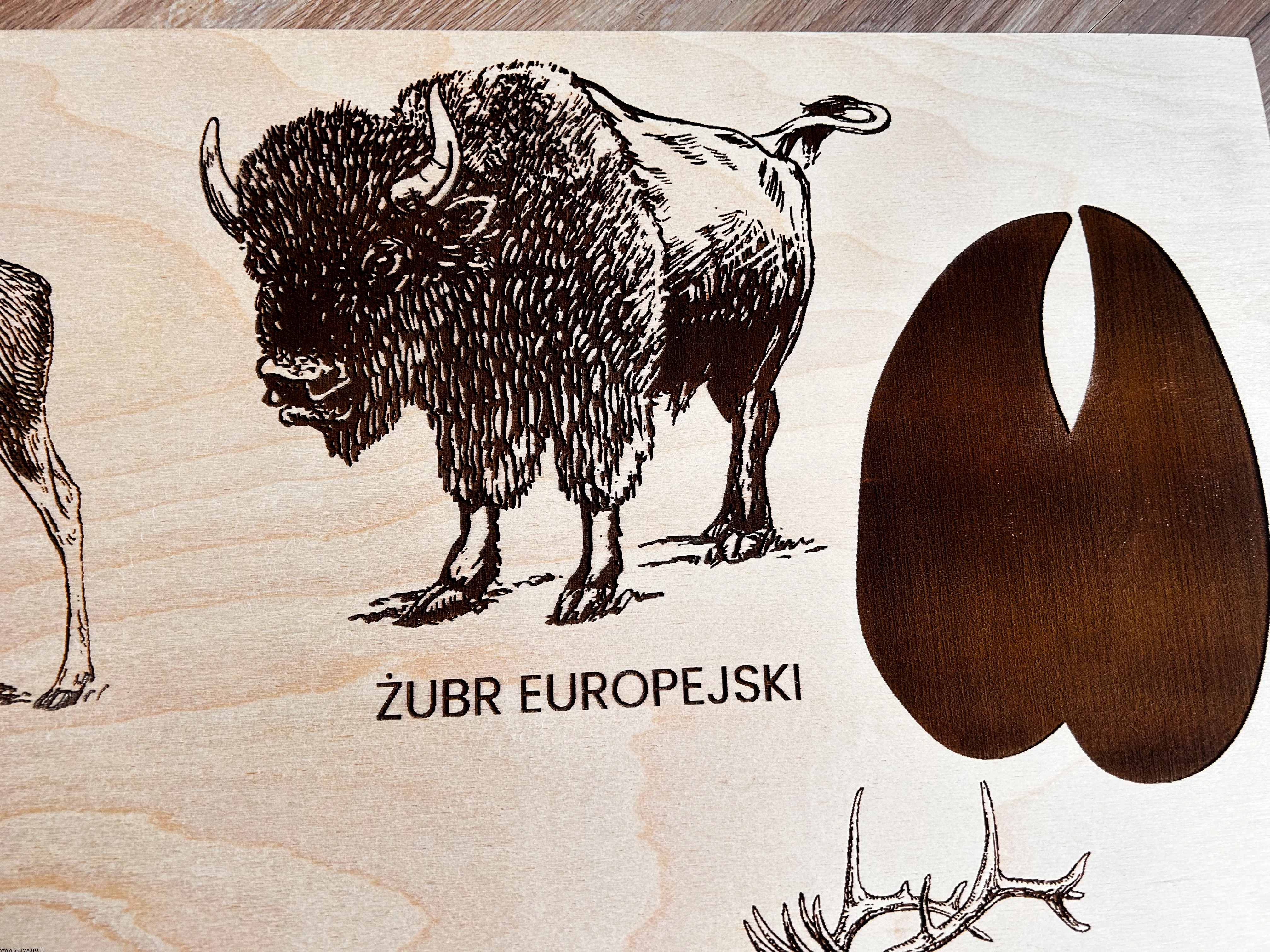 Wykonane z wysokiej jakości drewna, każda plansza prezentuje sylwetki zwierząt leśnych i ich tropy – wygrawerowane w sposób precyzyjny, trwały i efektowny.