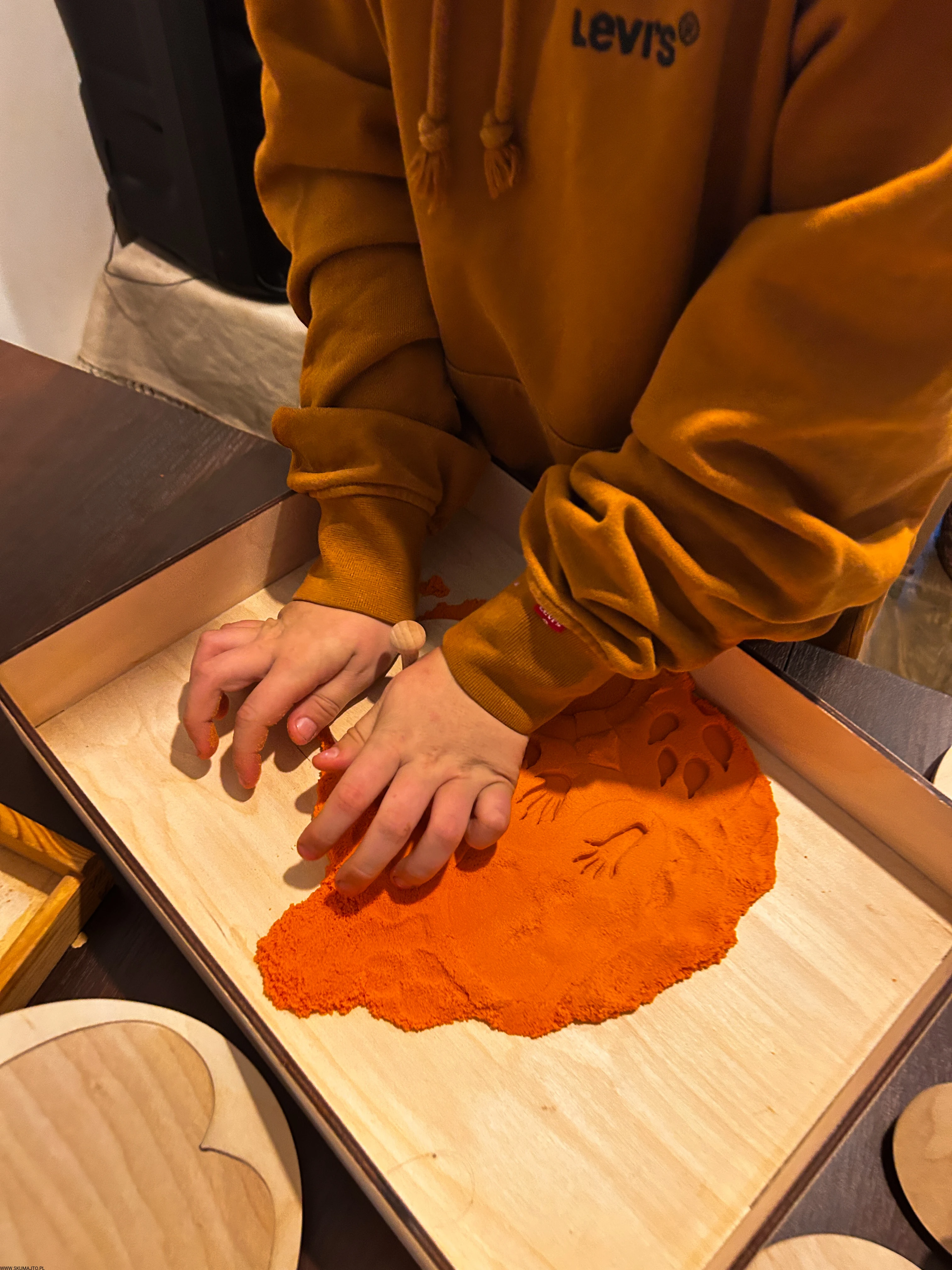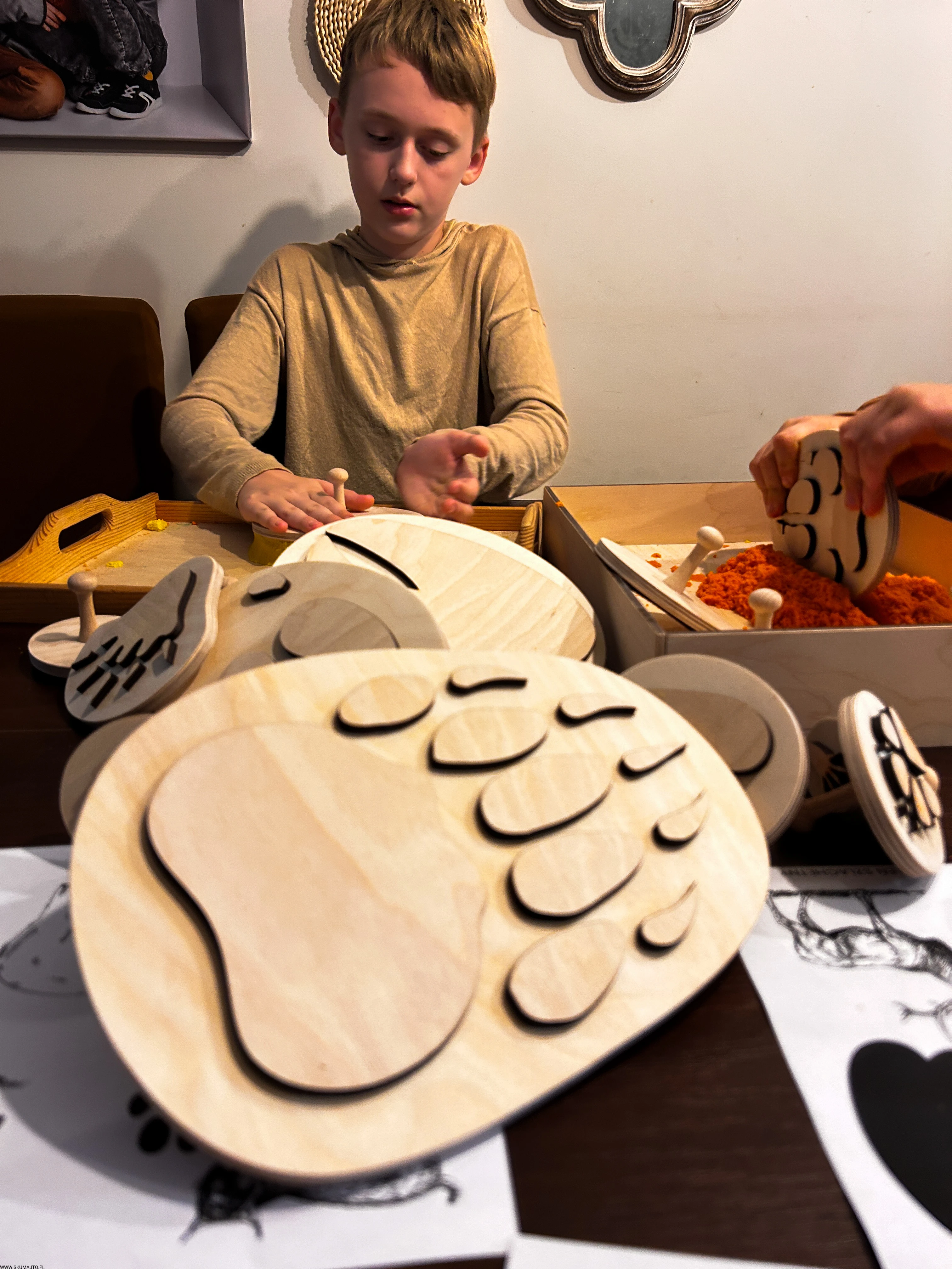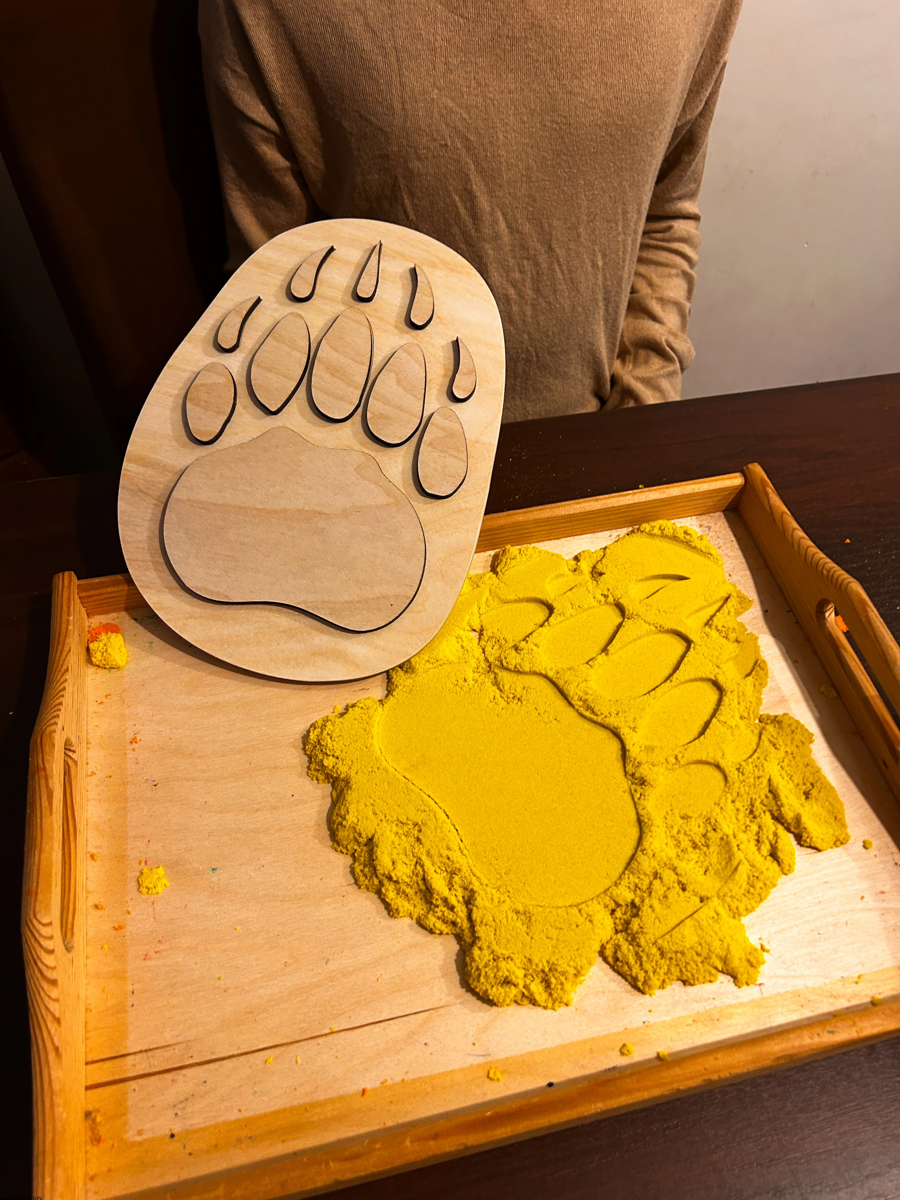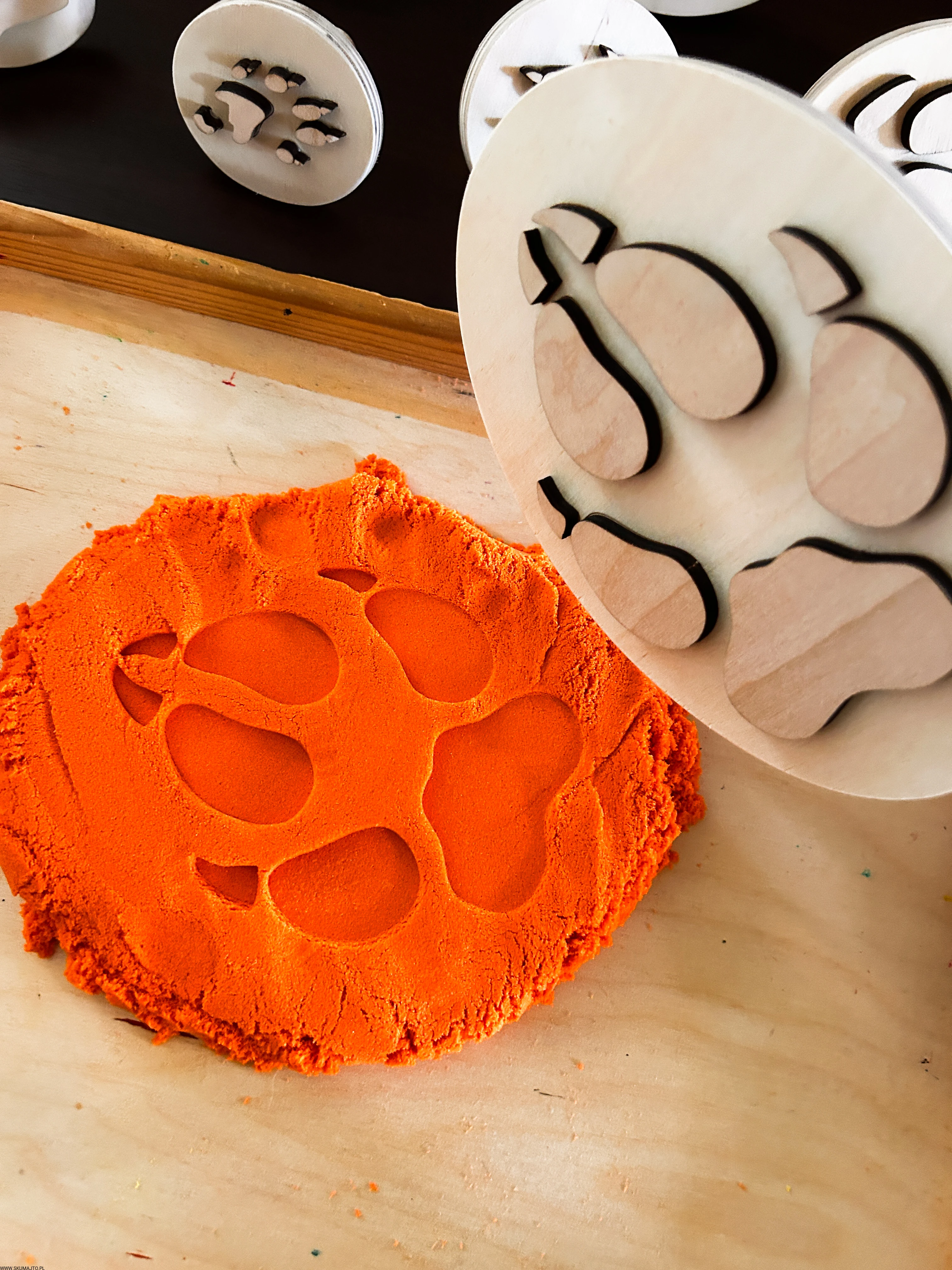 pracować sensorycznie, odbijając tropy np. w piasku kinetycznym, glinie, ciastolinie czy farbie