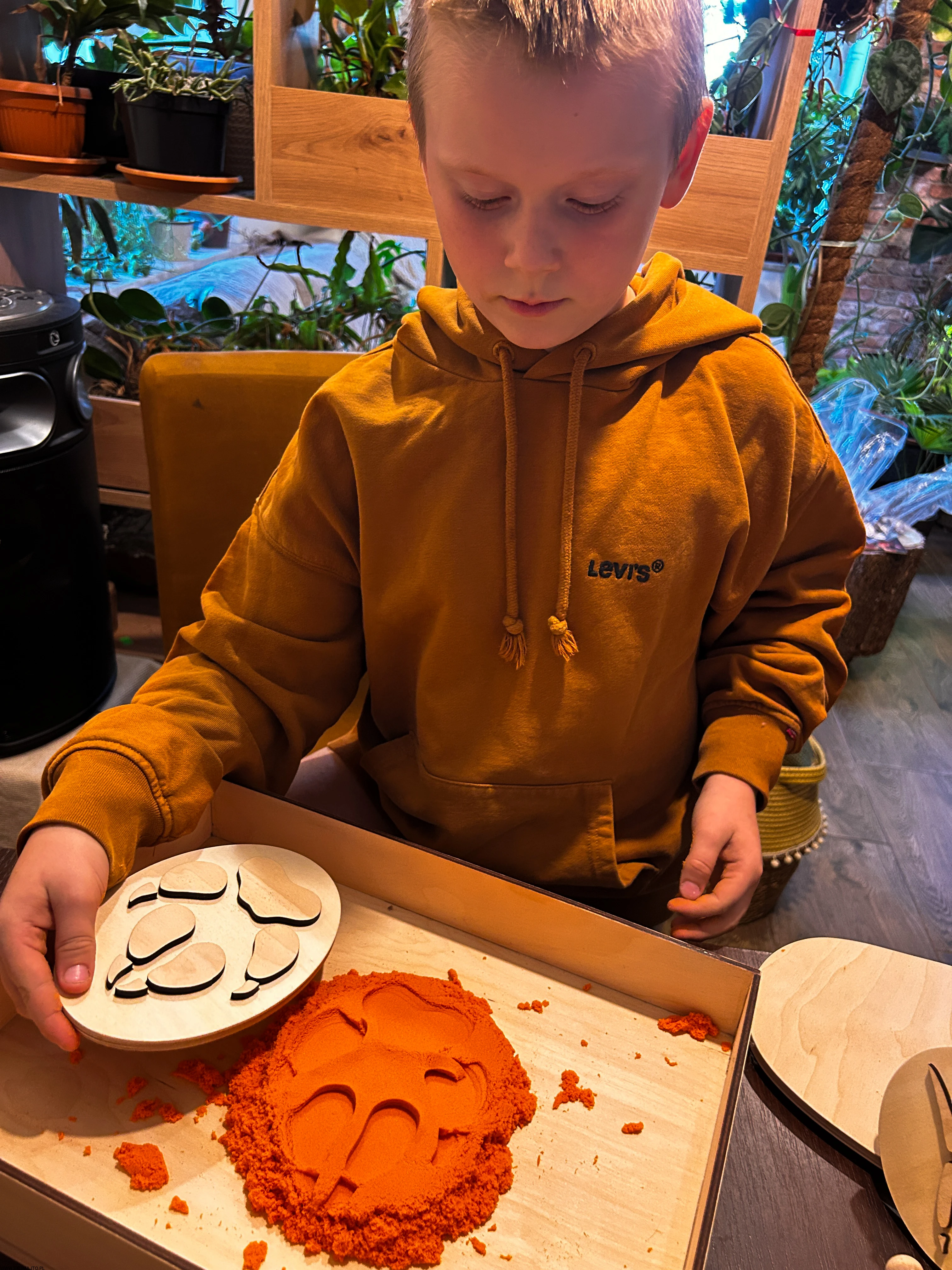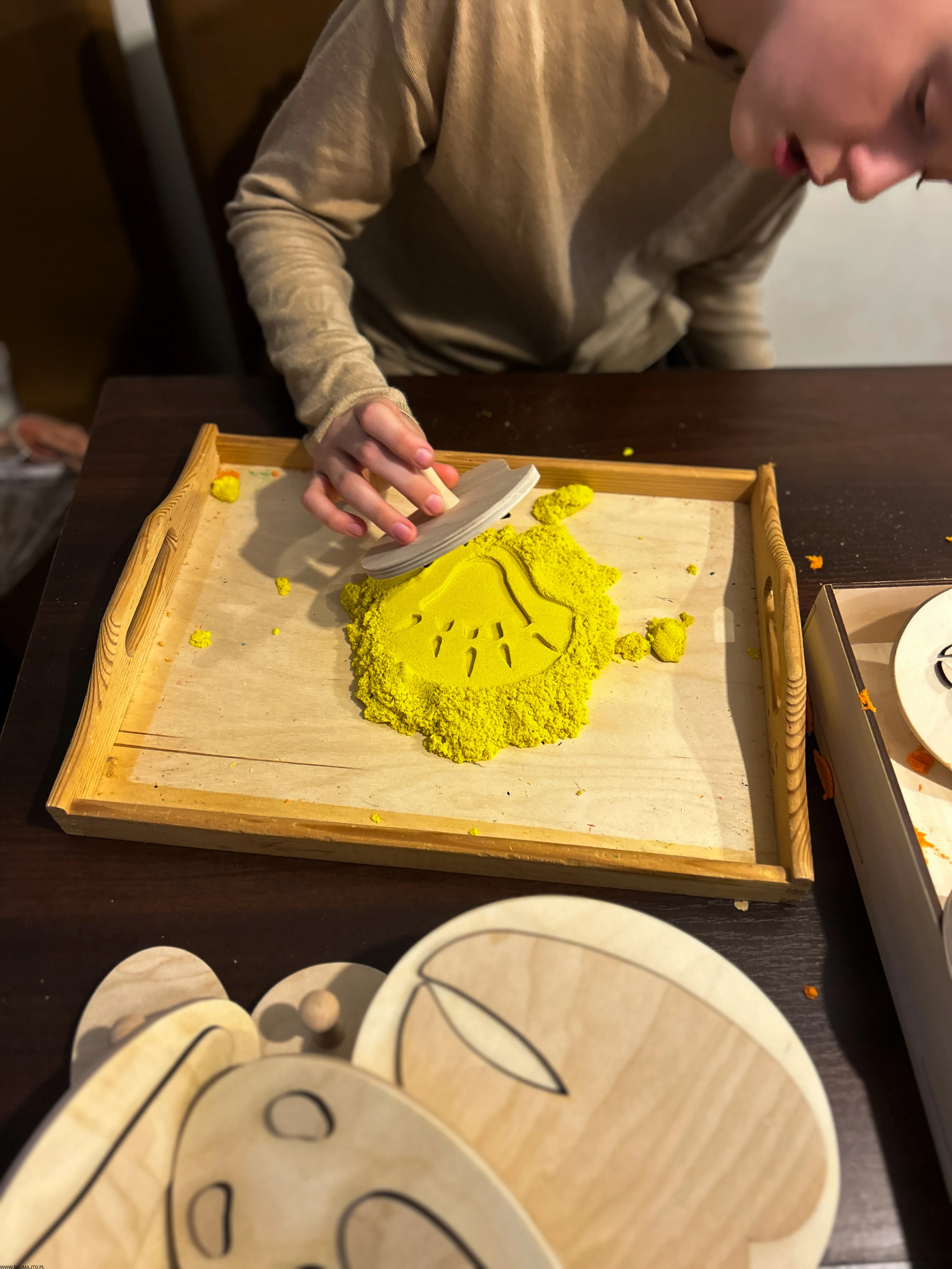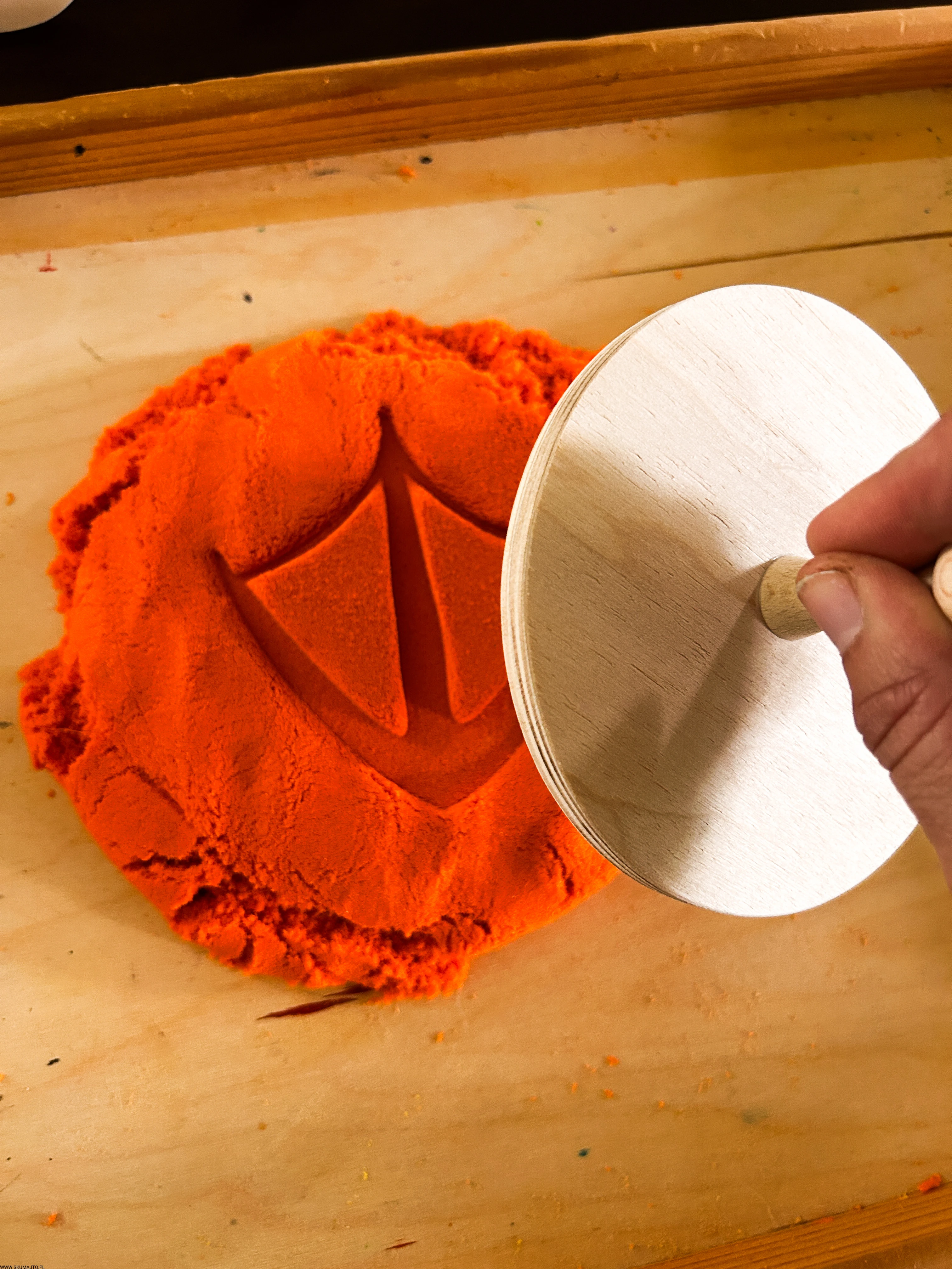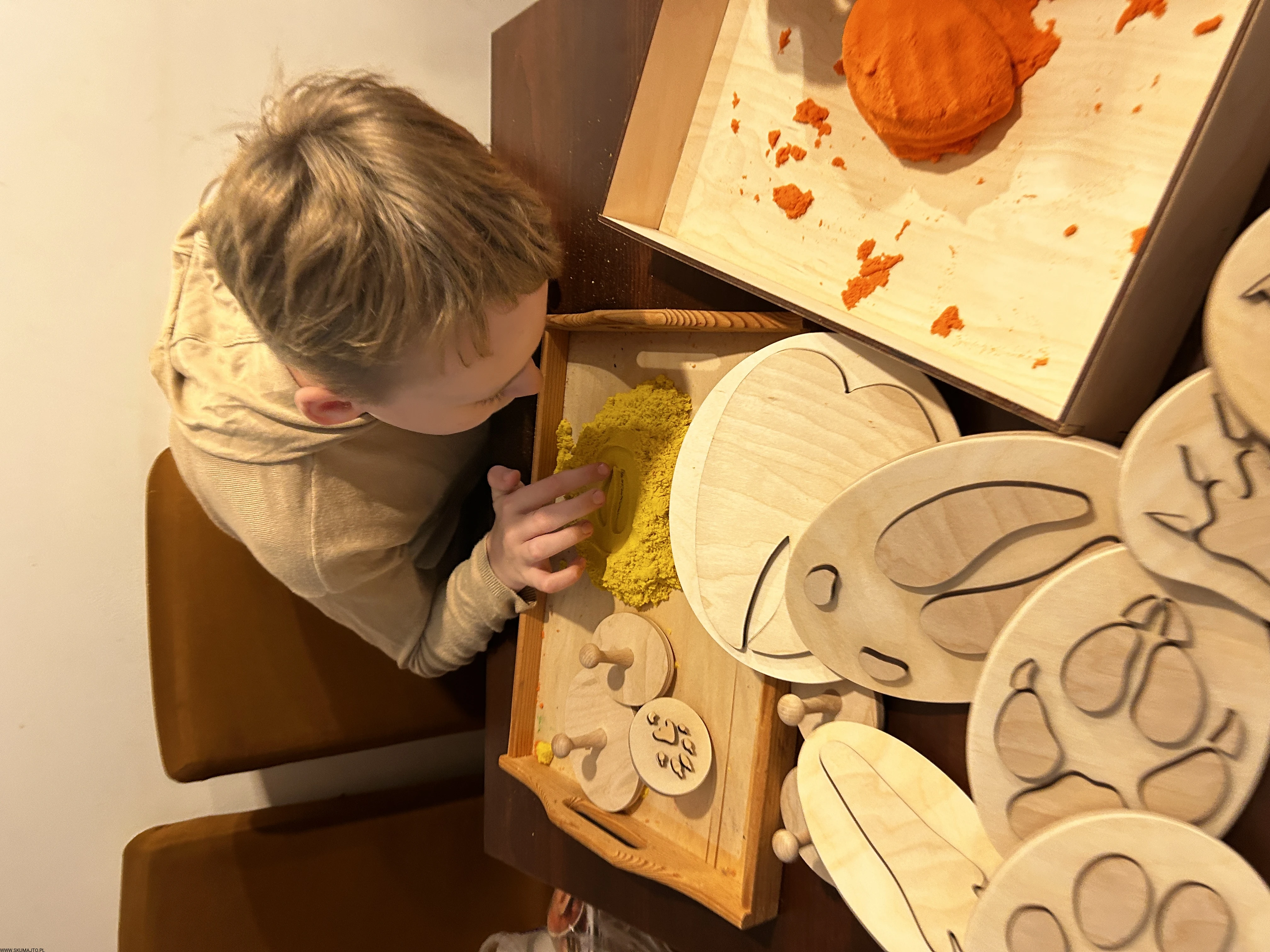 pracować sensorycznie, odbijając tropy np. w piasku kinetycznym, glinie, ciastolinie czy farbie