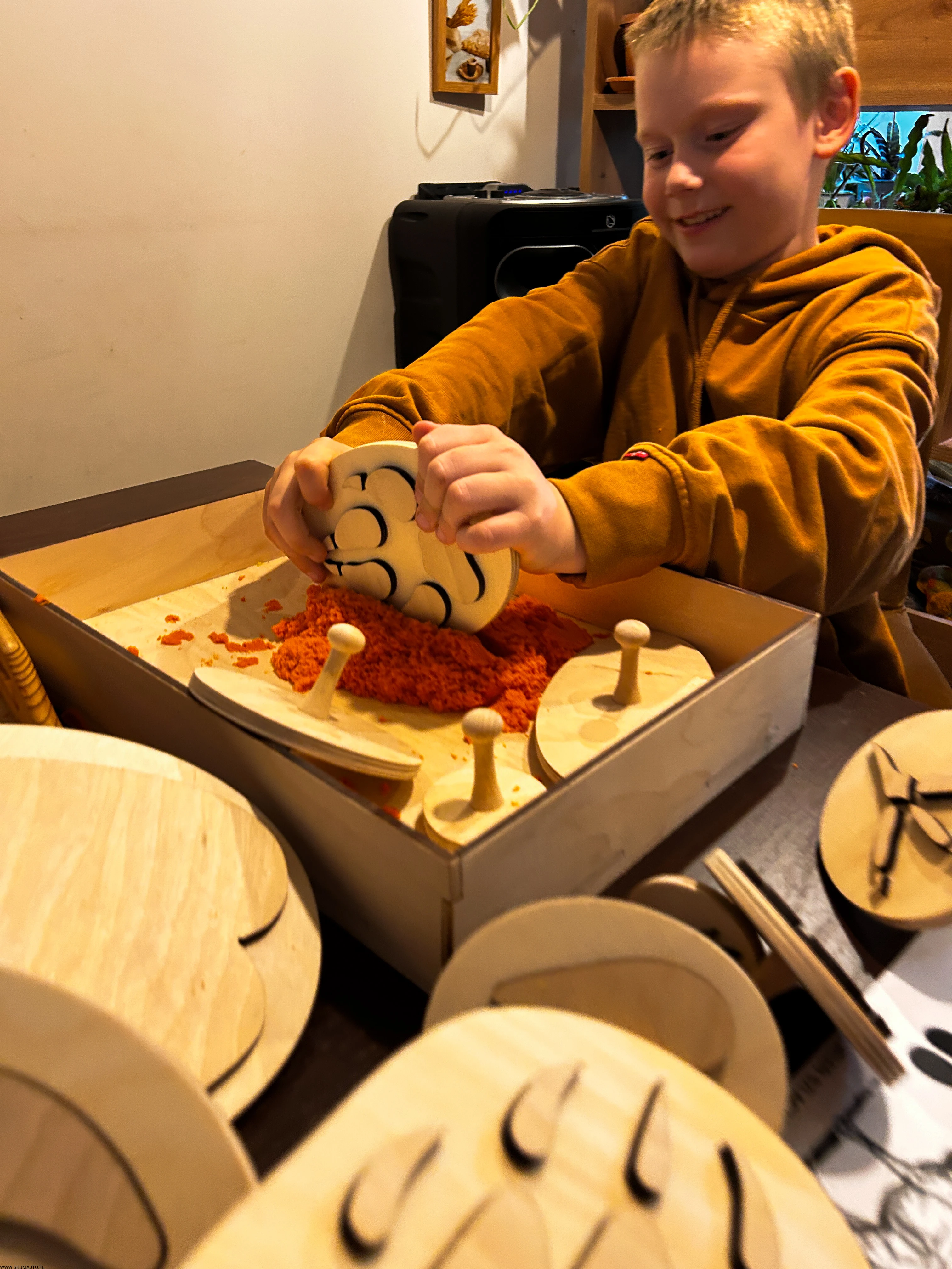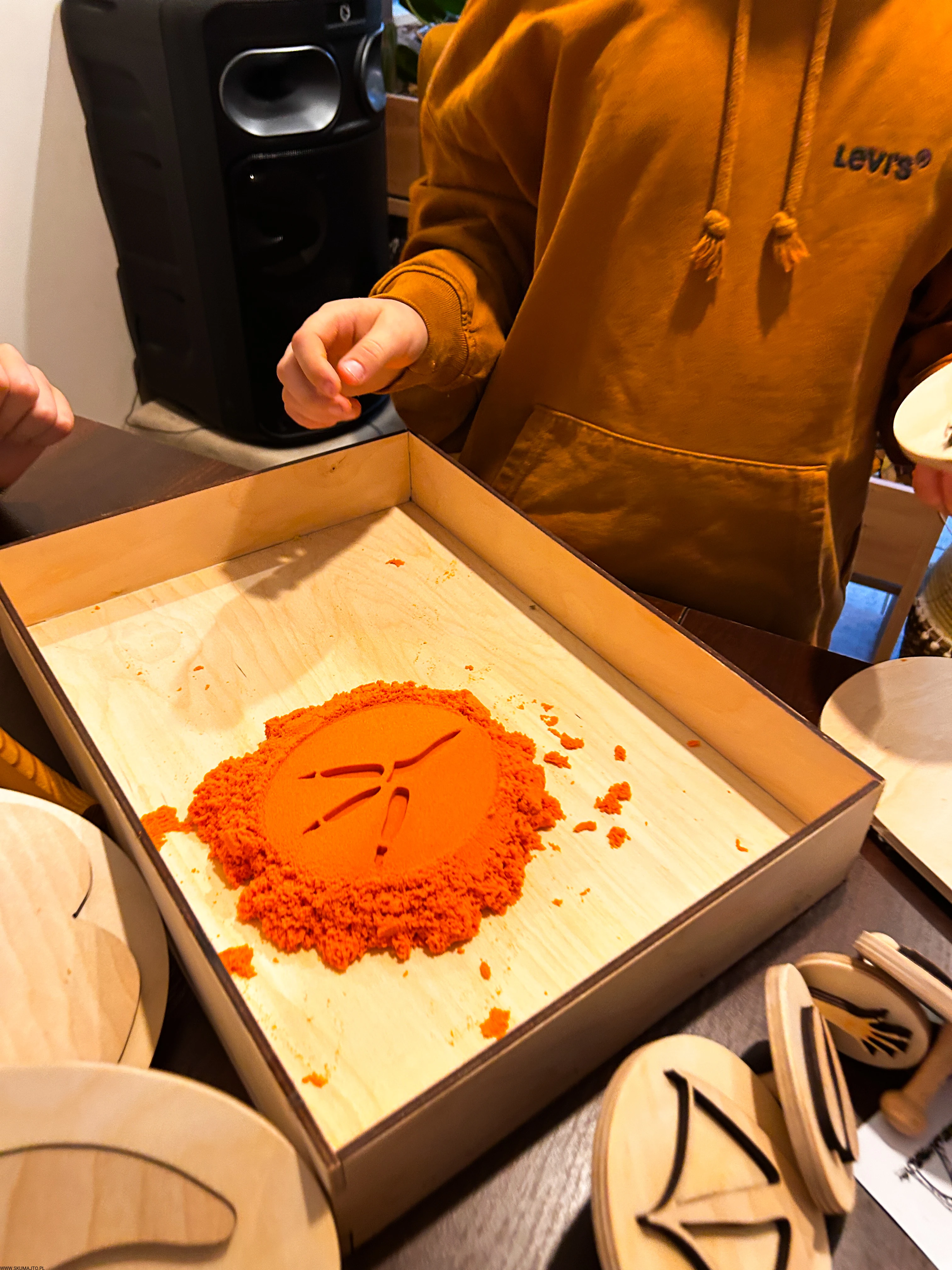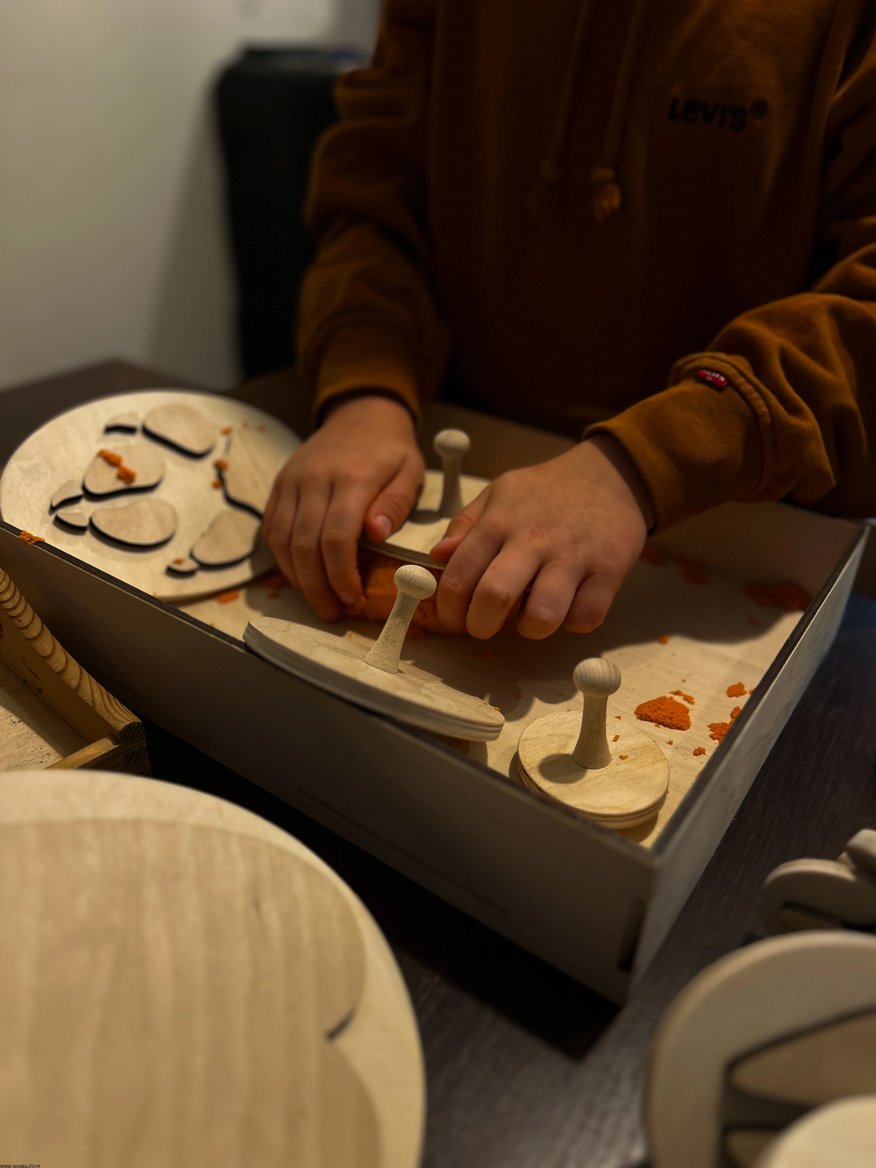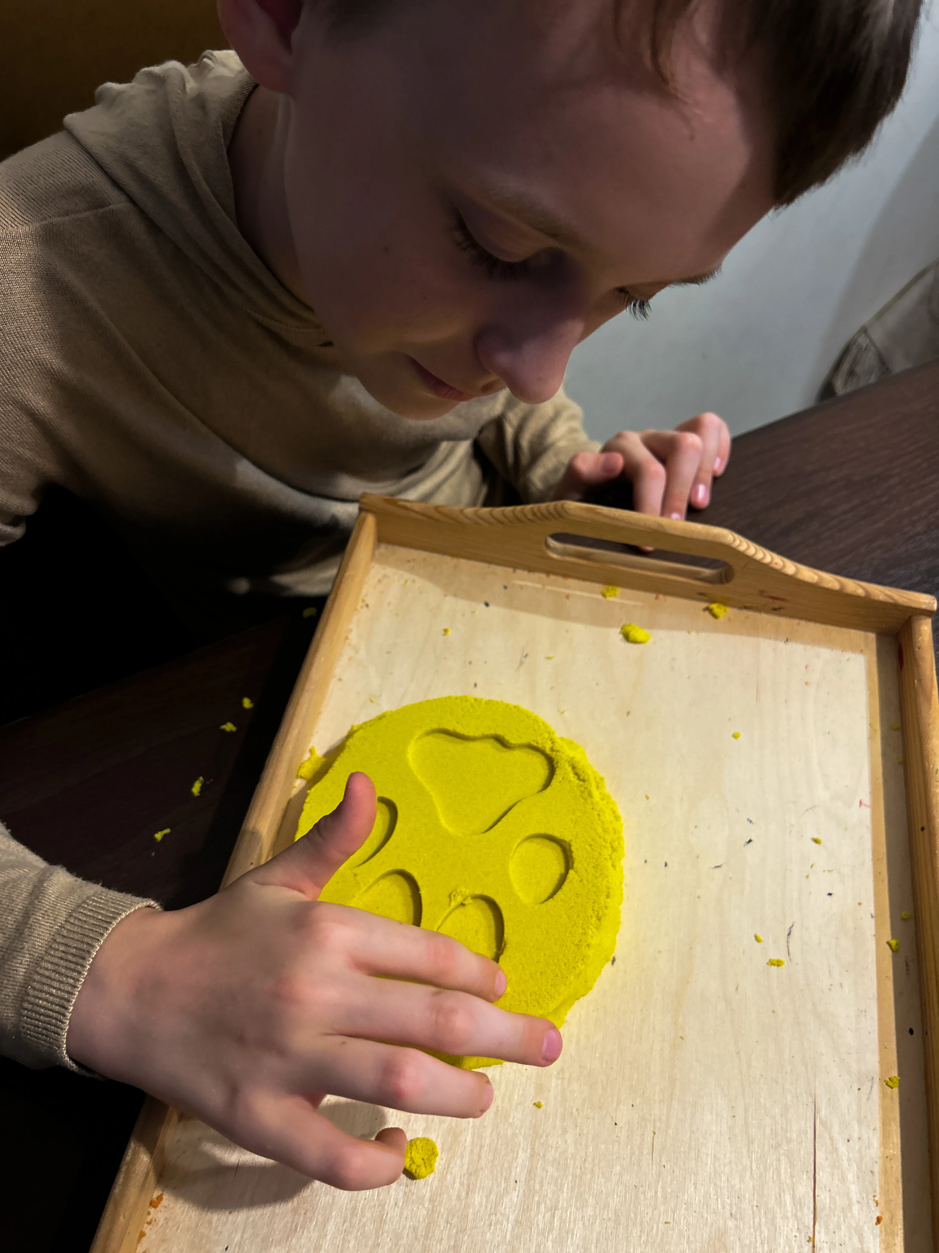 pracować sensorycznie, odbijając tropy np. w piasku kinetycznym, glinie, ciastolinie czy farbie