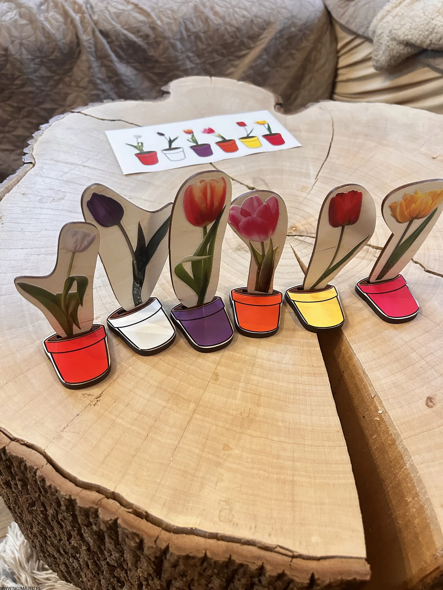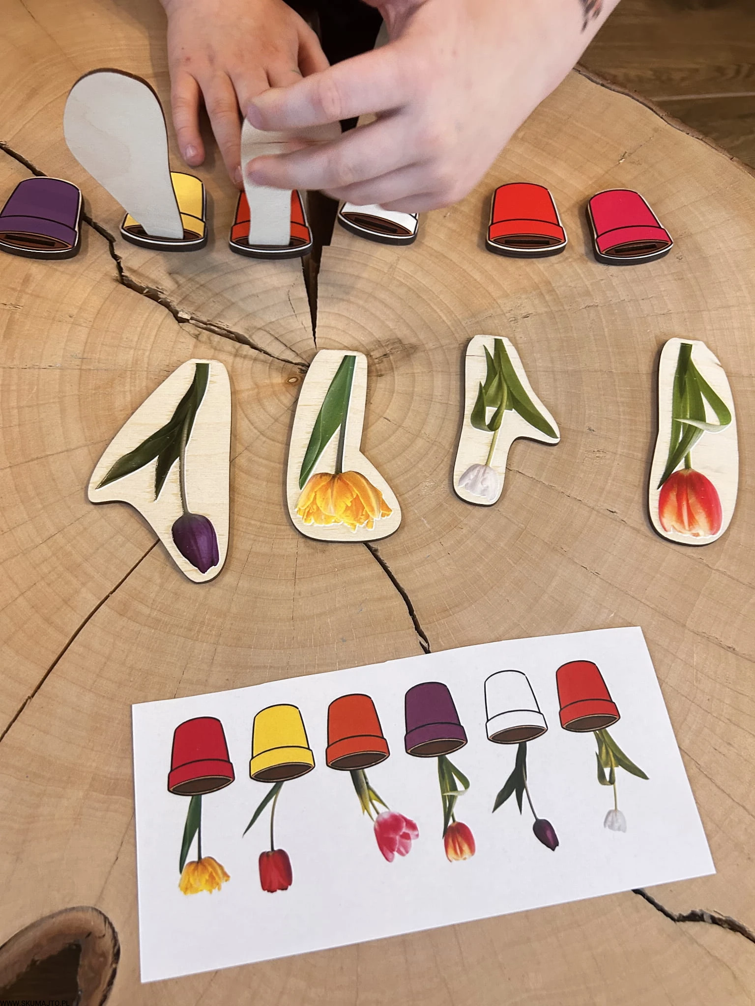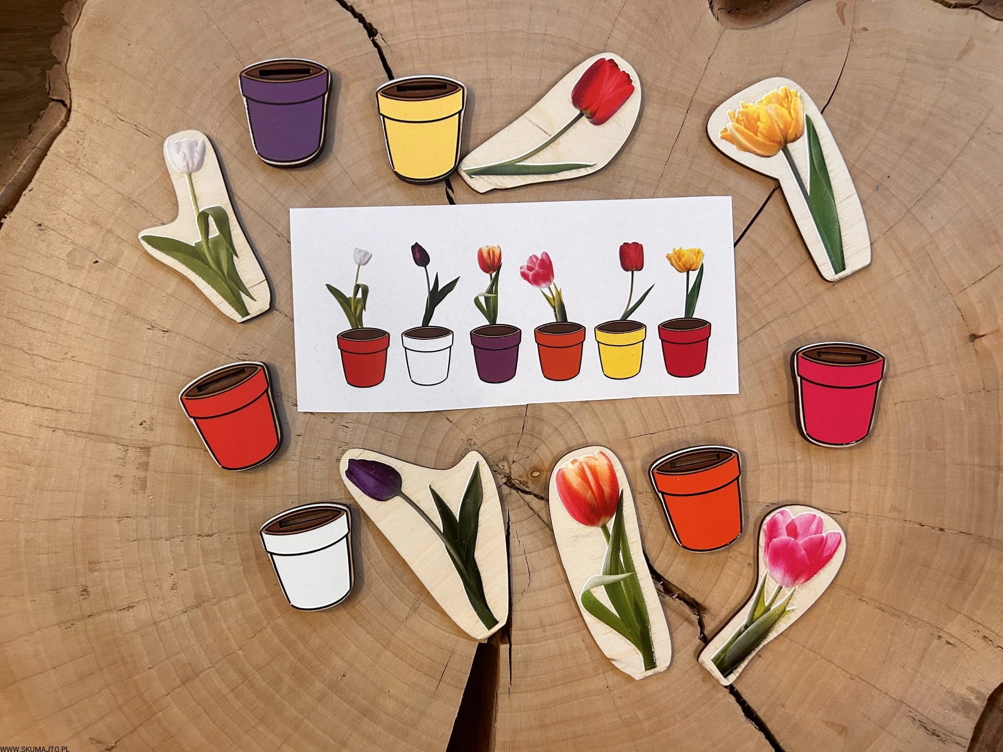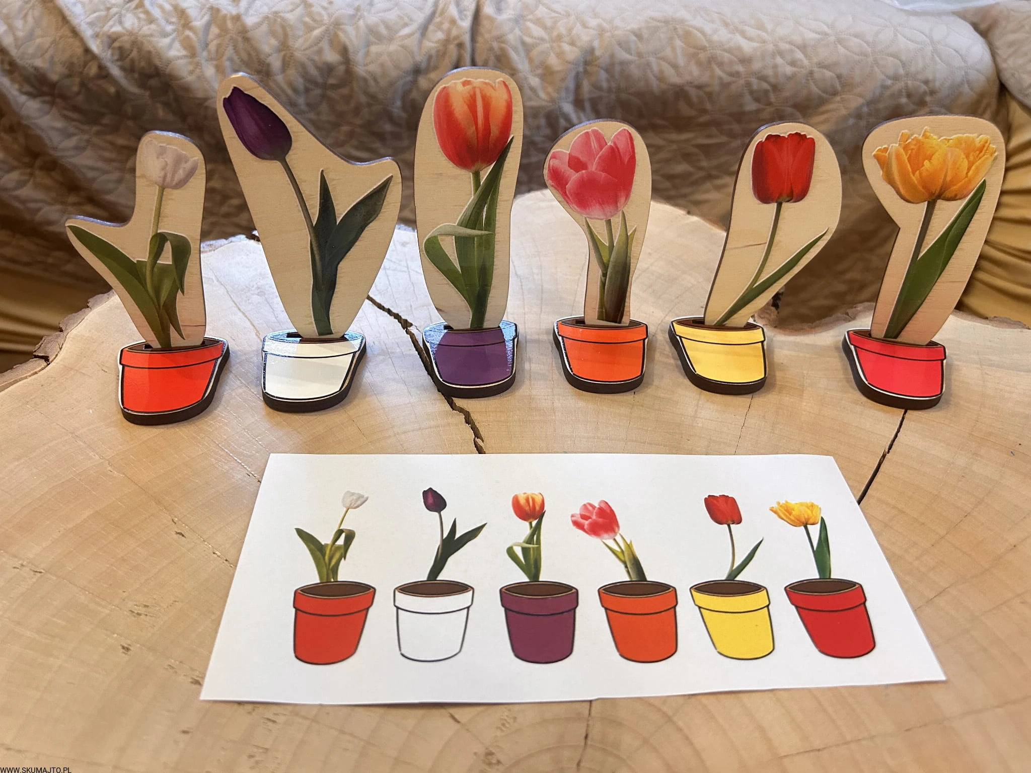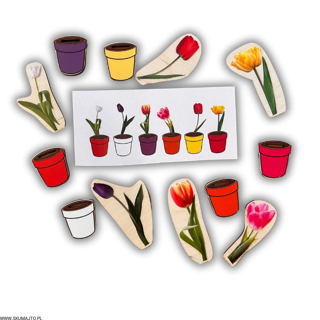 Tulipany, drewniana układanka do odwzorowywania i nauki kolorów
