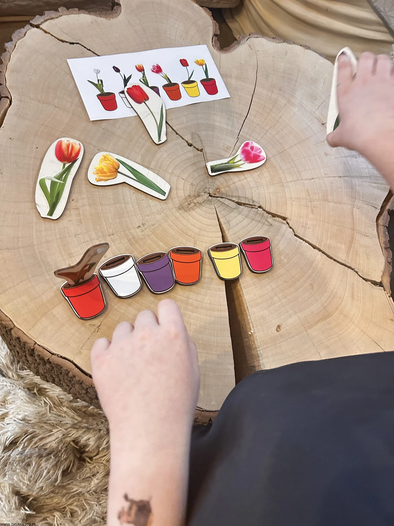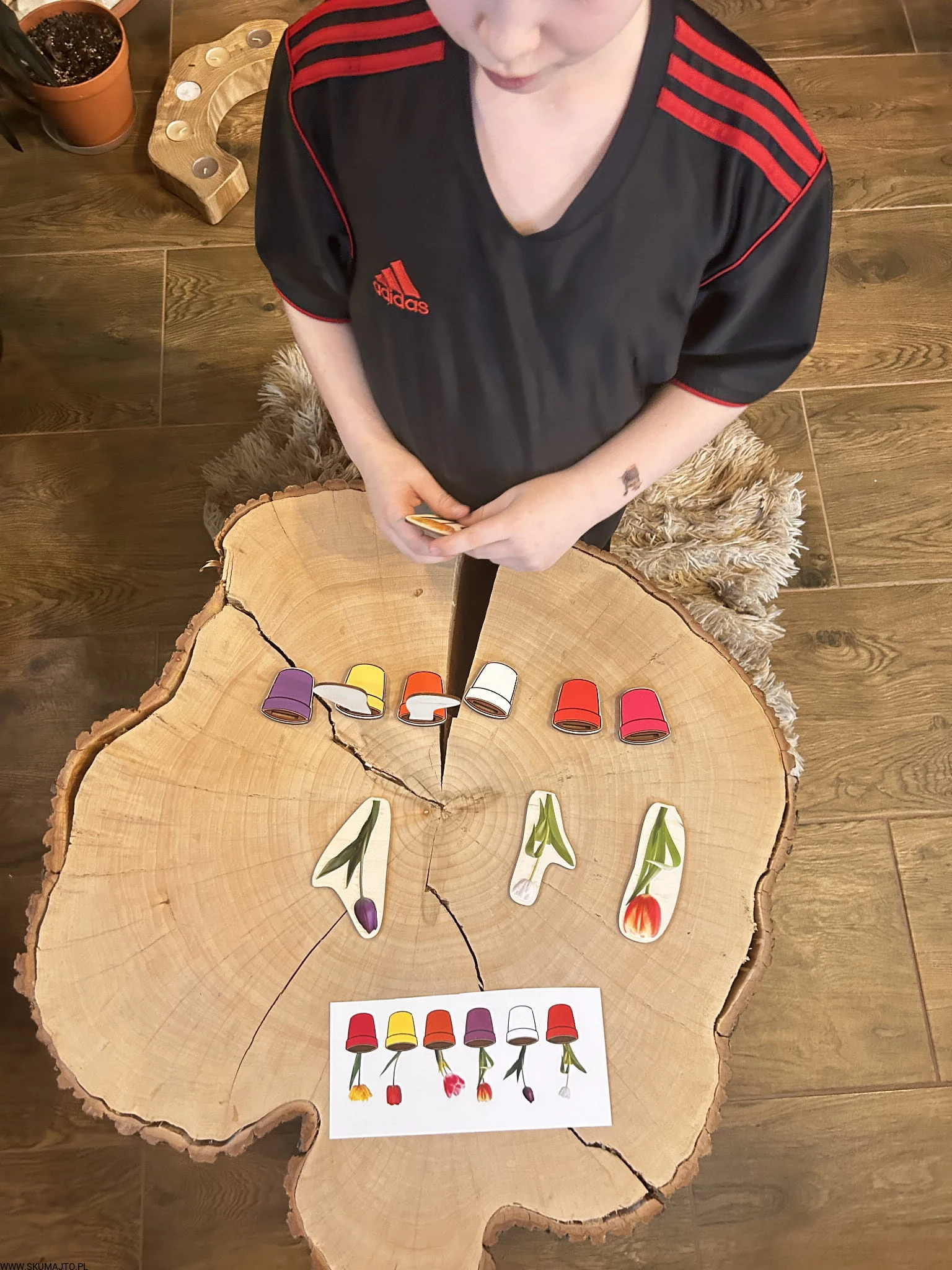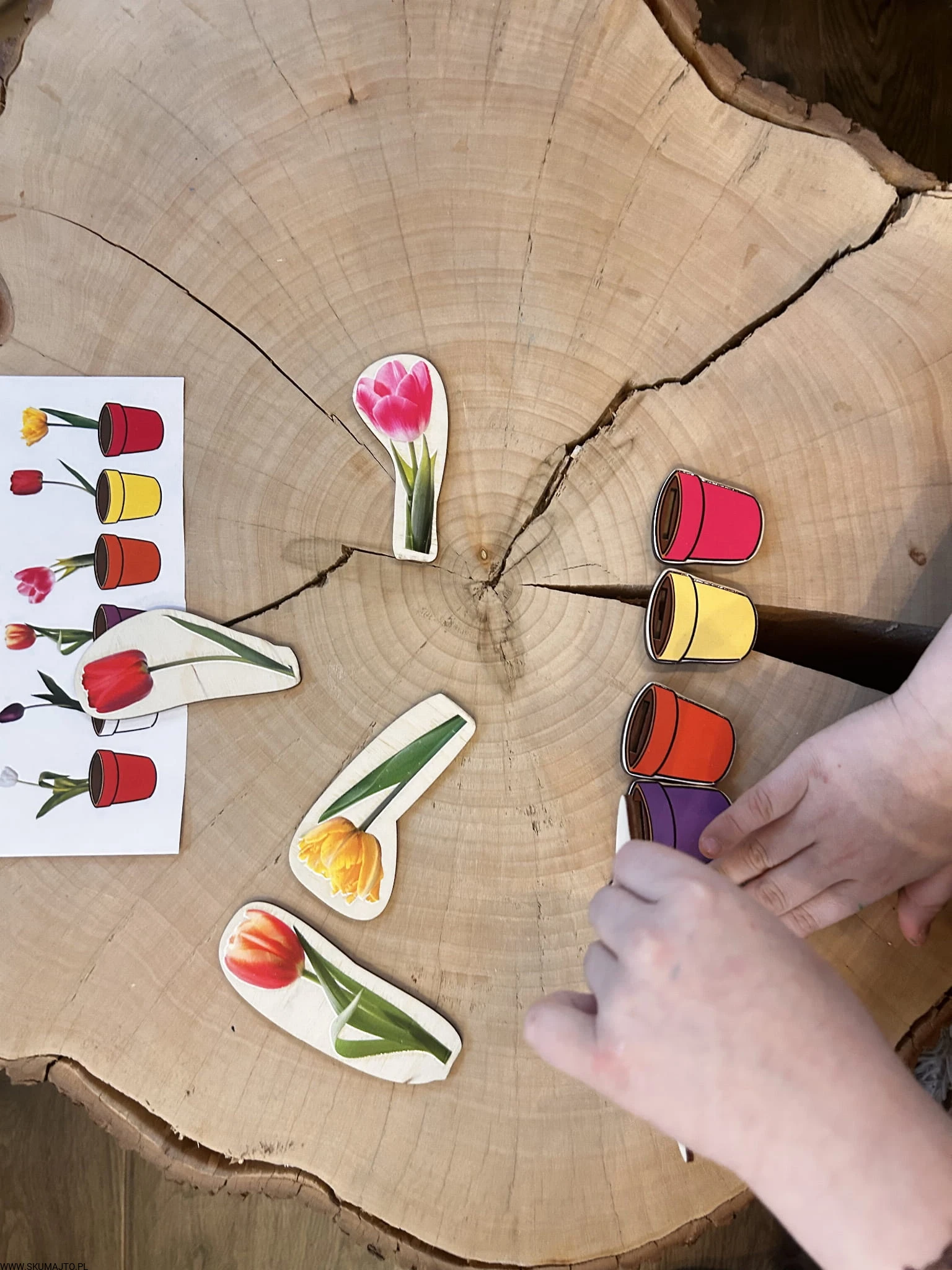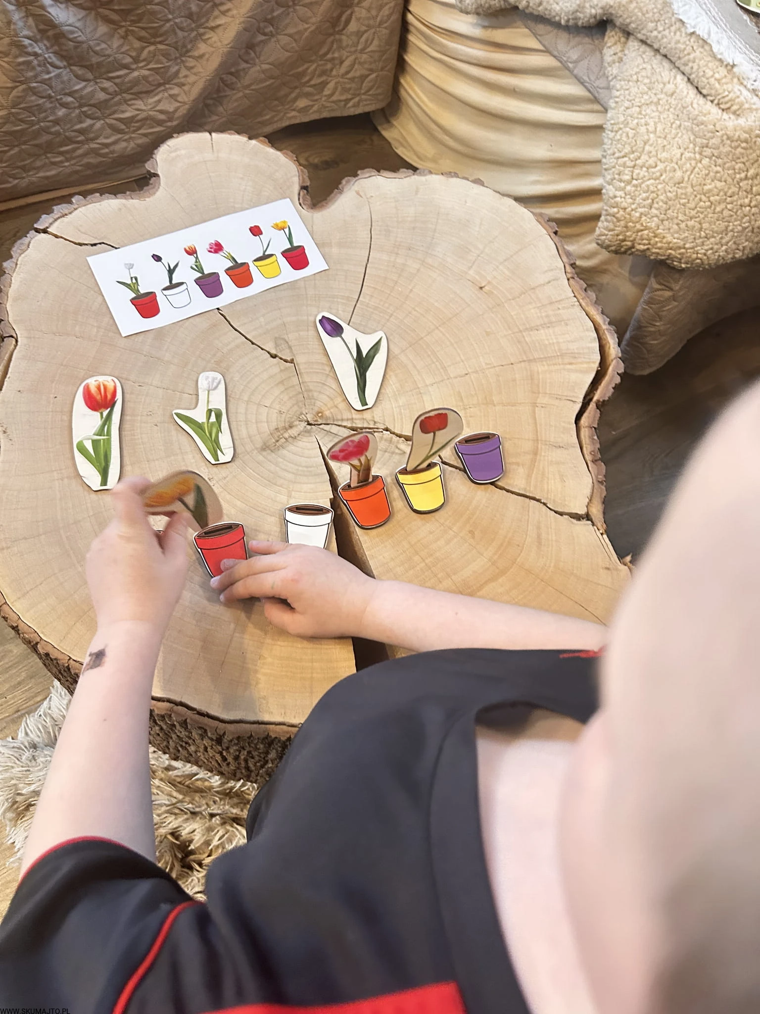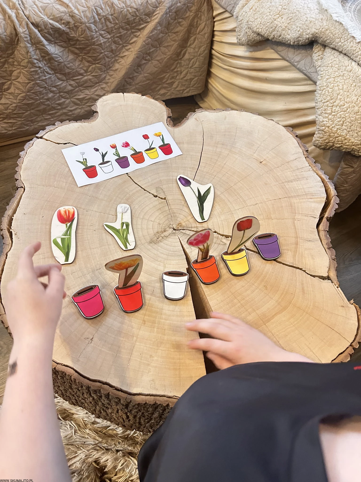 ✔️ Rozwój motoryki małej – dopasowywanie tulipanów i doniczek, chwytanie i układanie elementów to świetne ćwiczenie precyzji rączek i koordynacji ręka-oko.