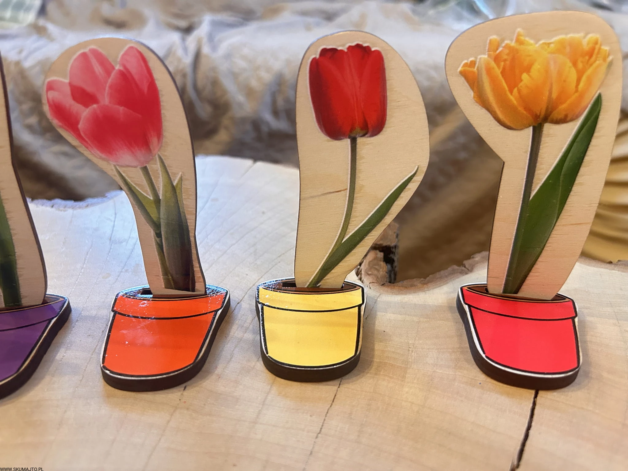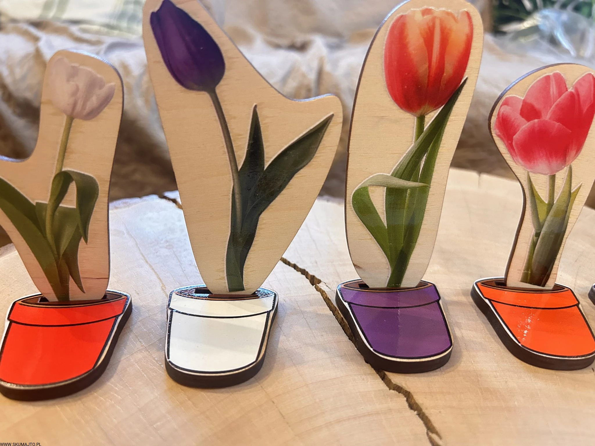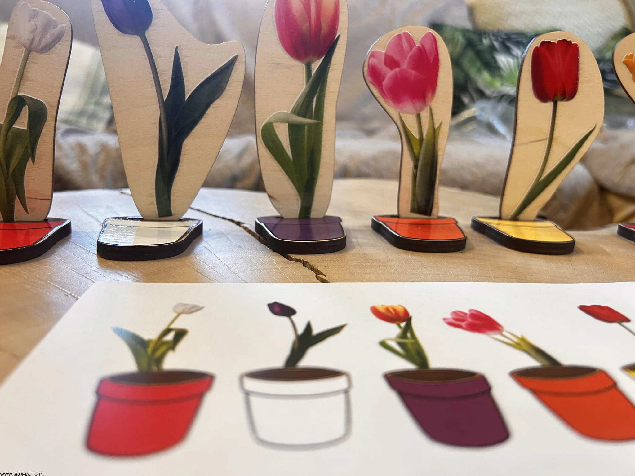 ✔️ Tworzenie własnych kompozycji – dziecko może dowolnie łączyć tulipany i doniczki, tworząc niepowtarzalne układy. To rozwija kreatywność i wyobraźnię.