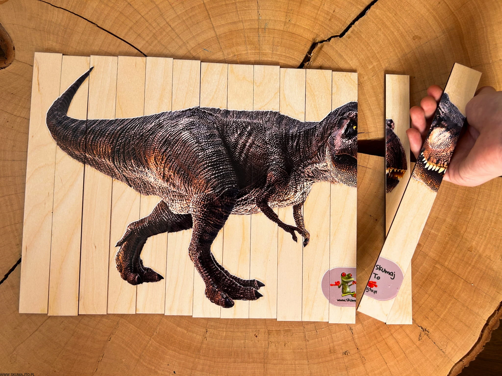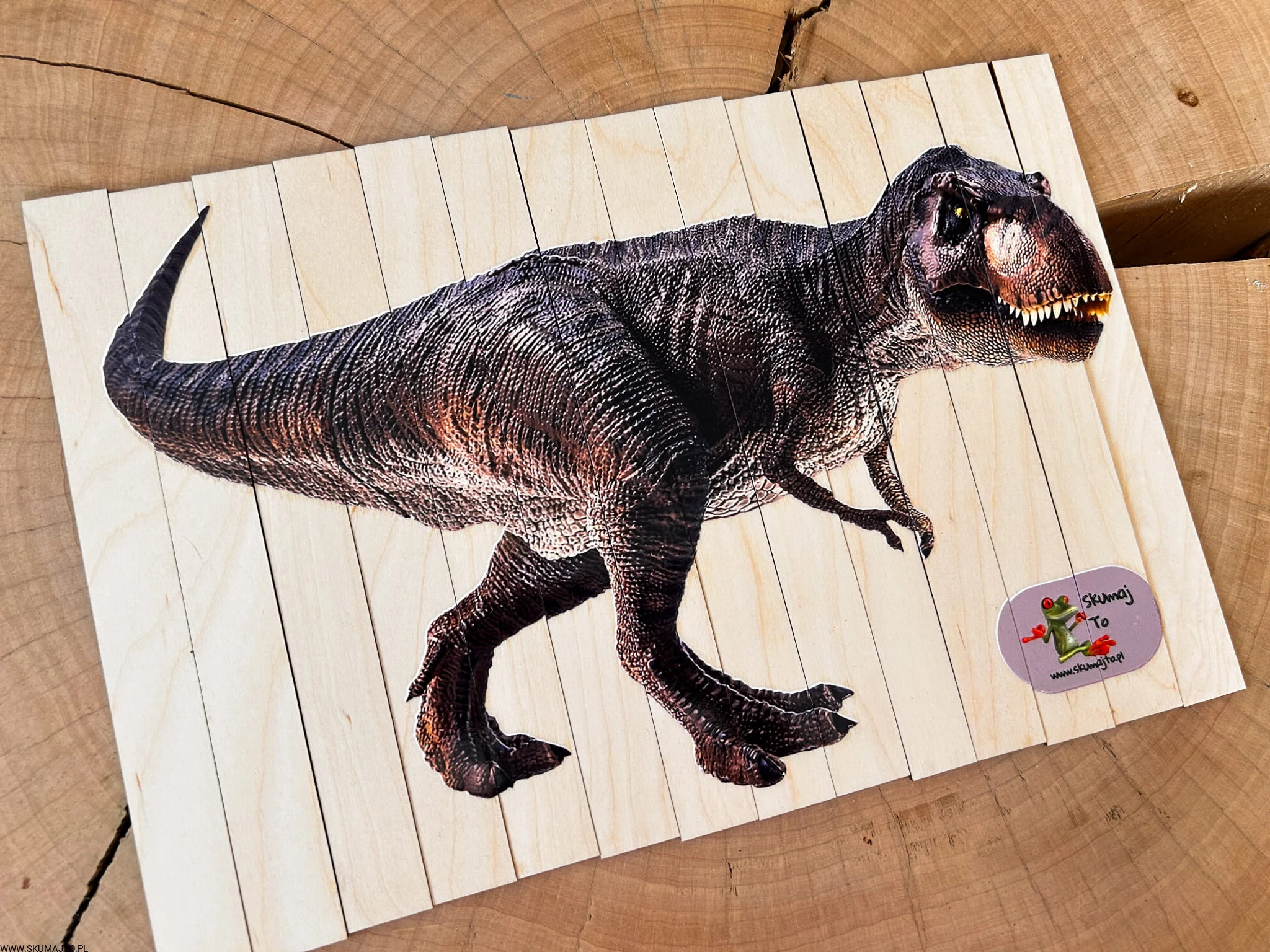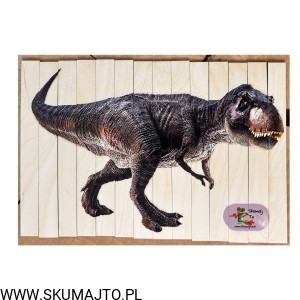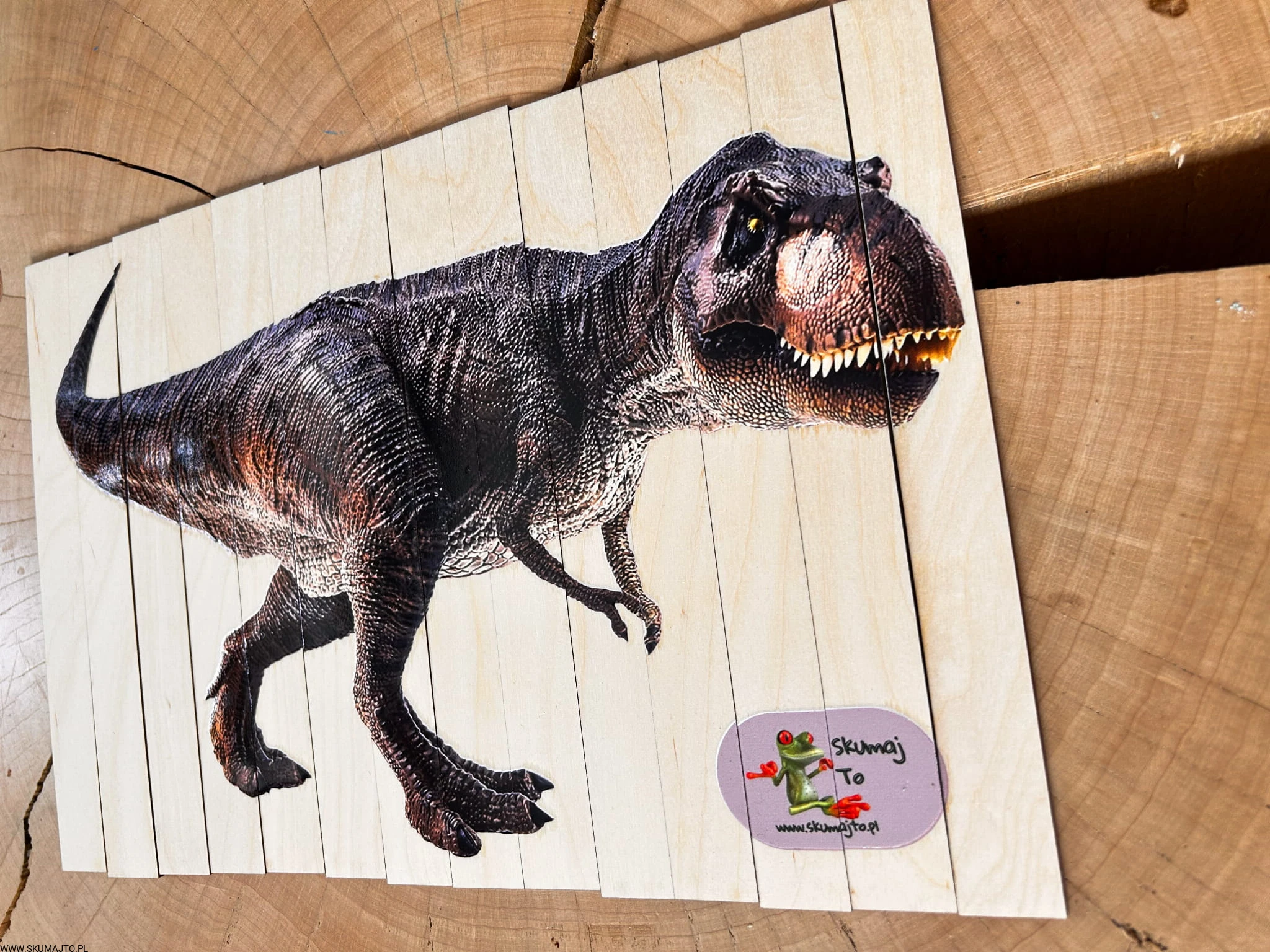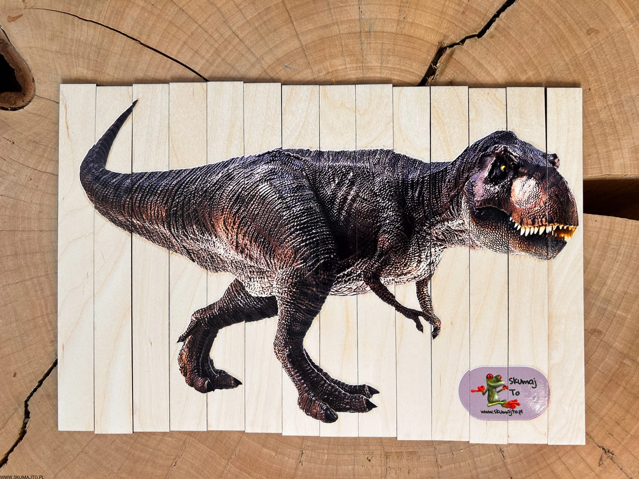 Tyranozaur, drewniane puzzle paskowe, dinozaur do układania