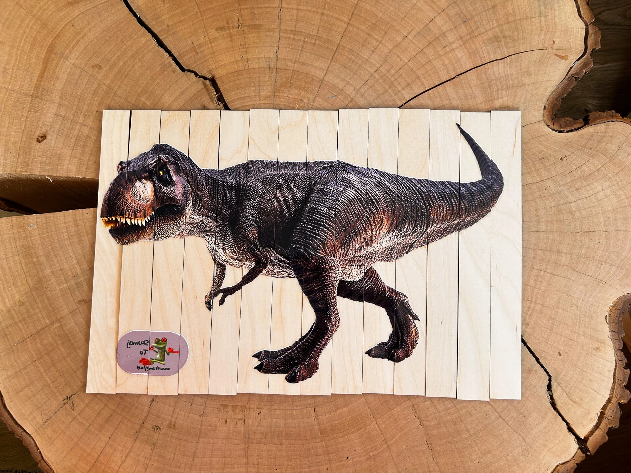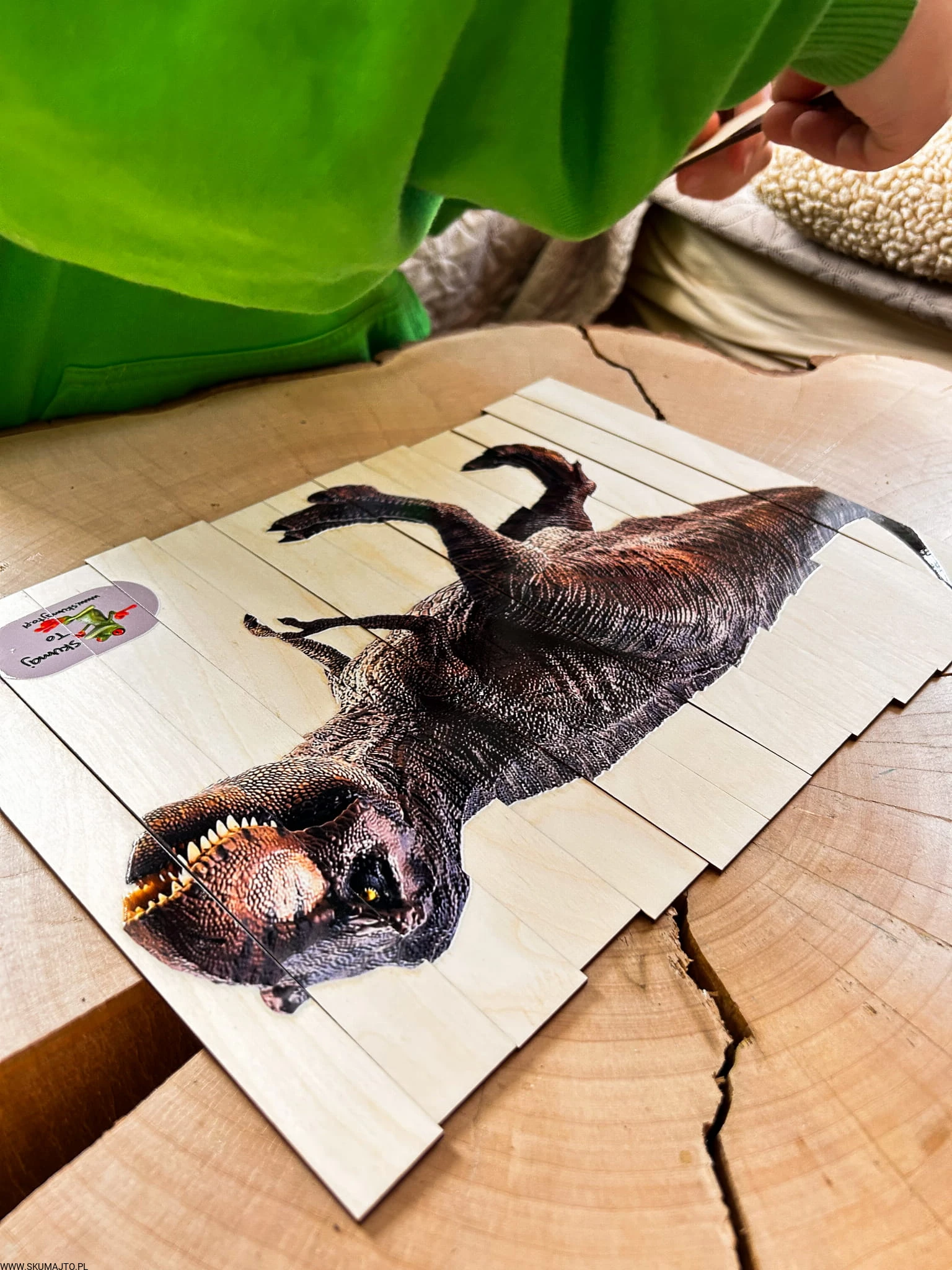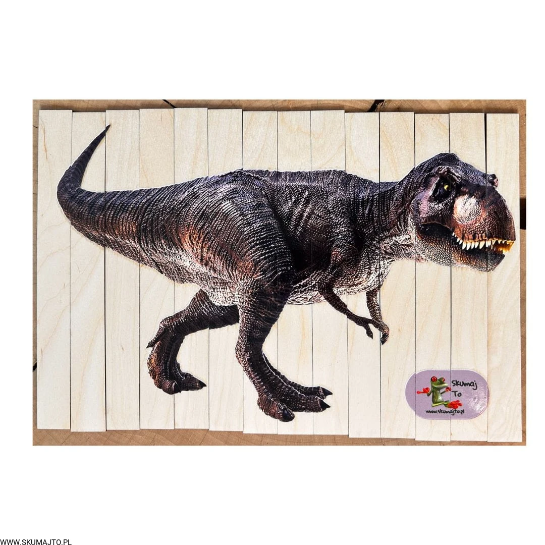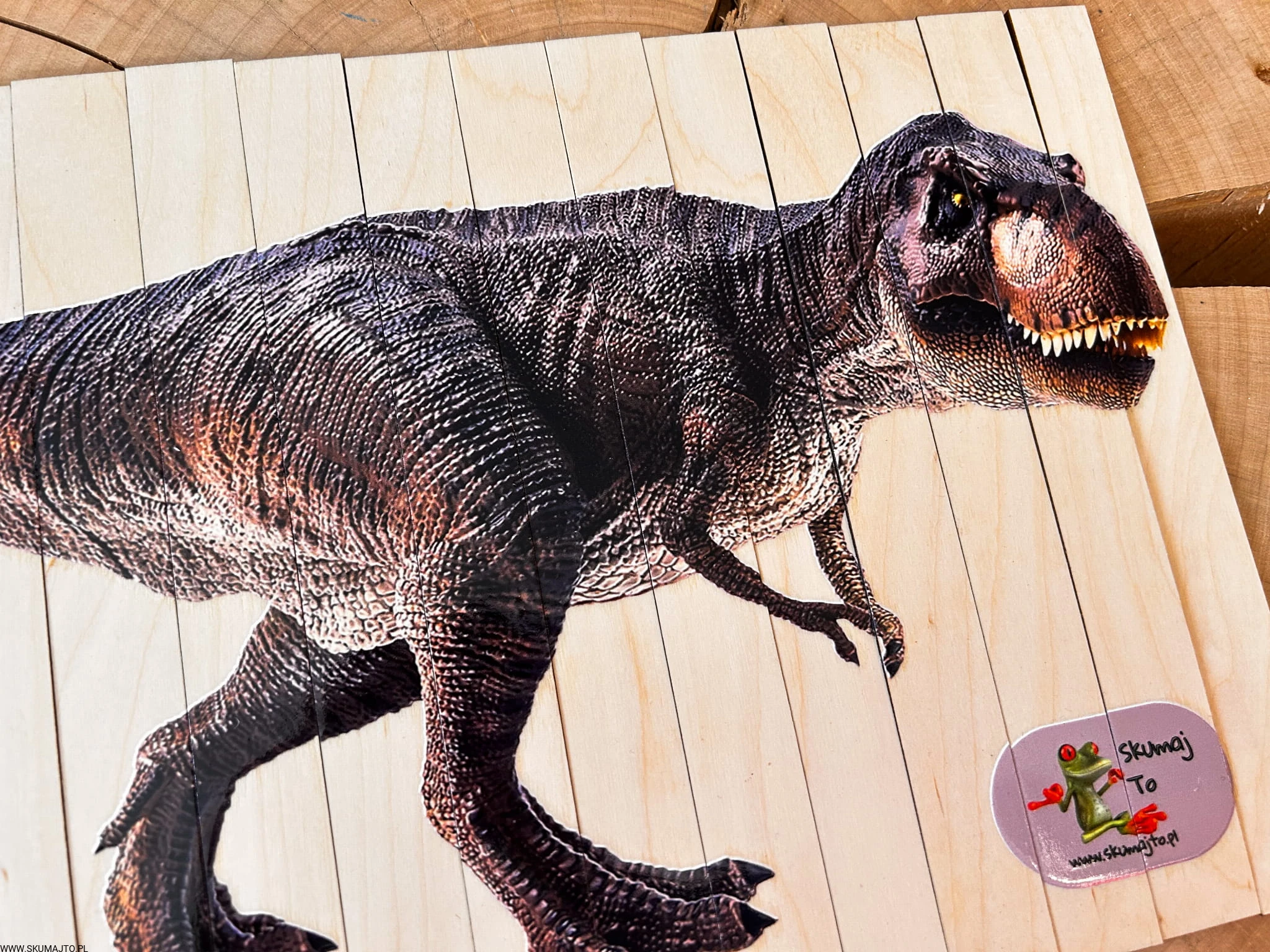 Tyranozaur, drewniane puzzle paskowe, dinozaur do układania
