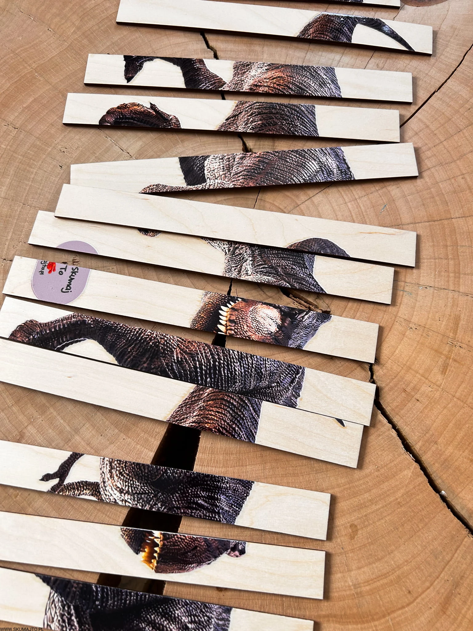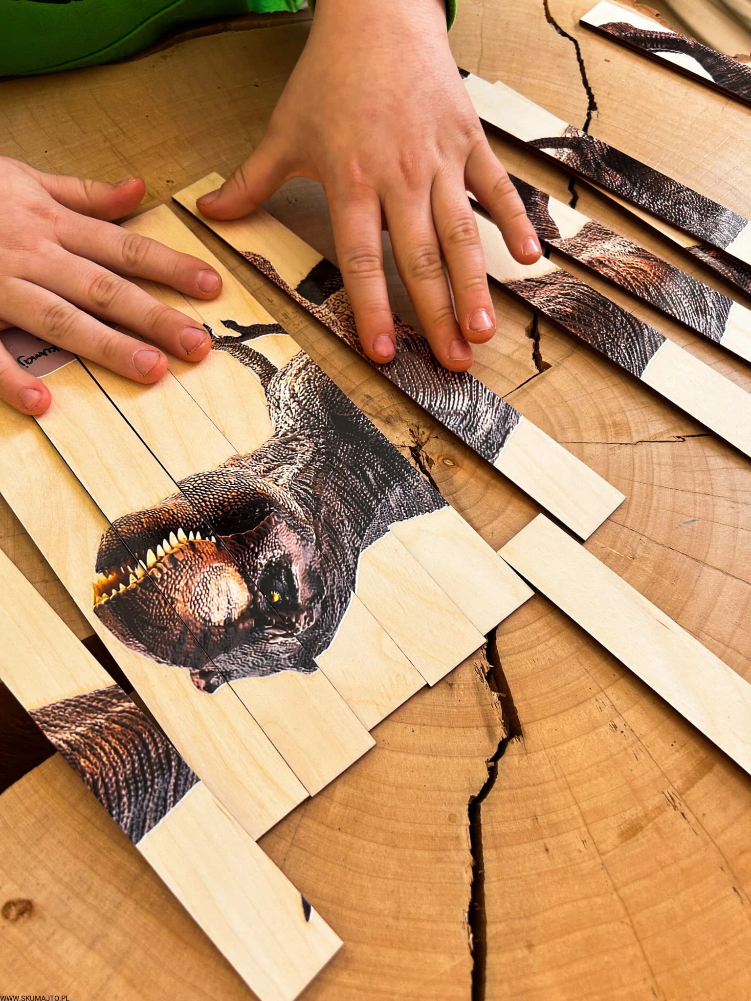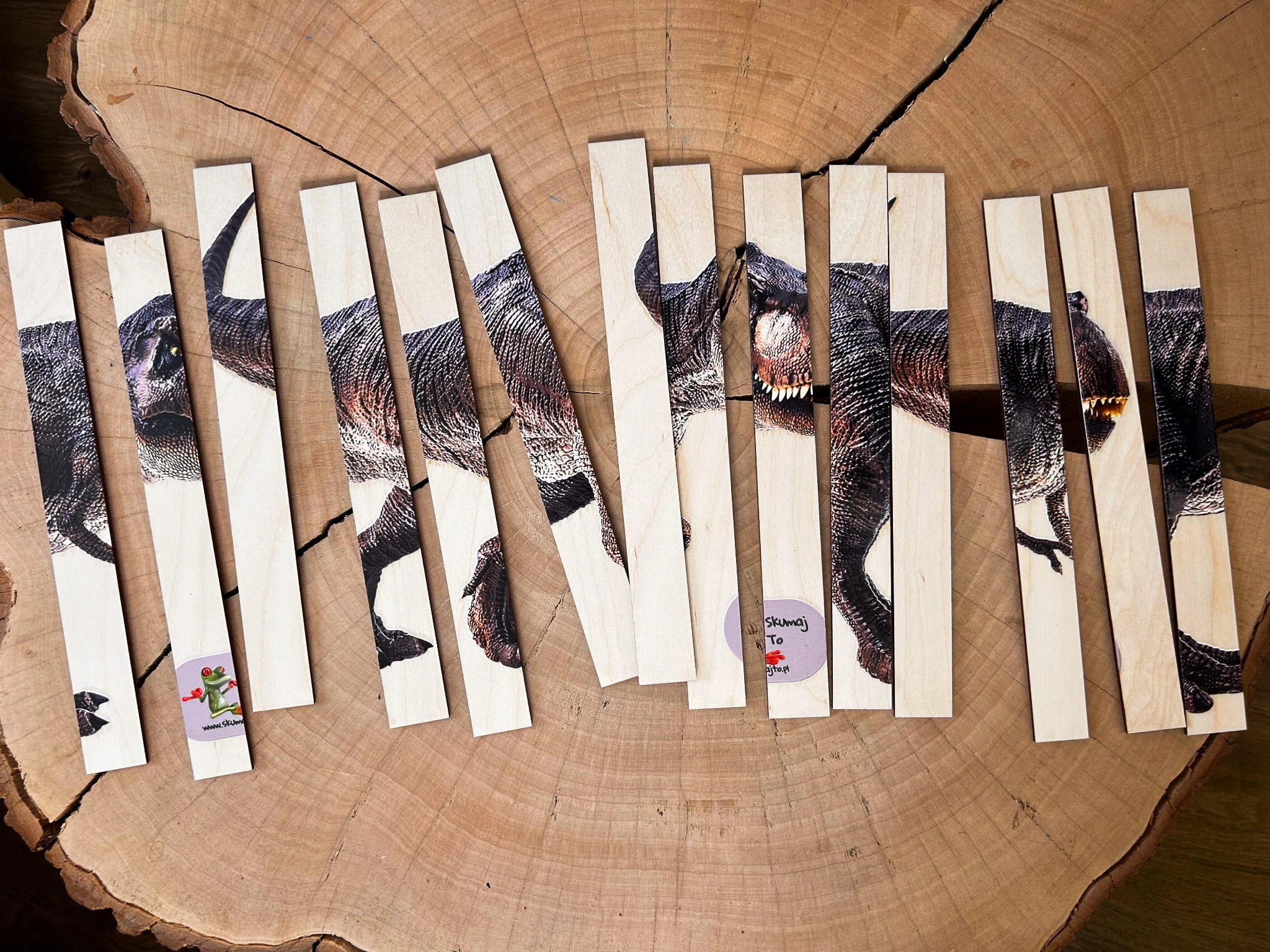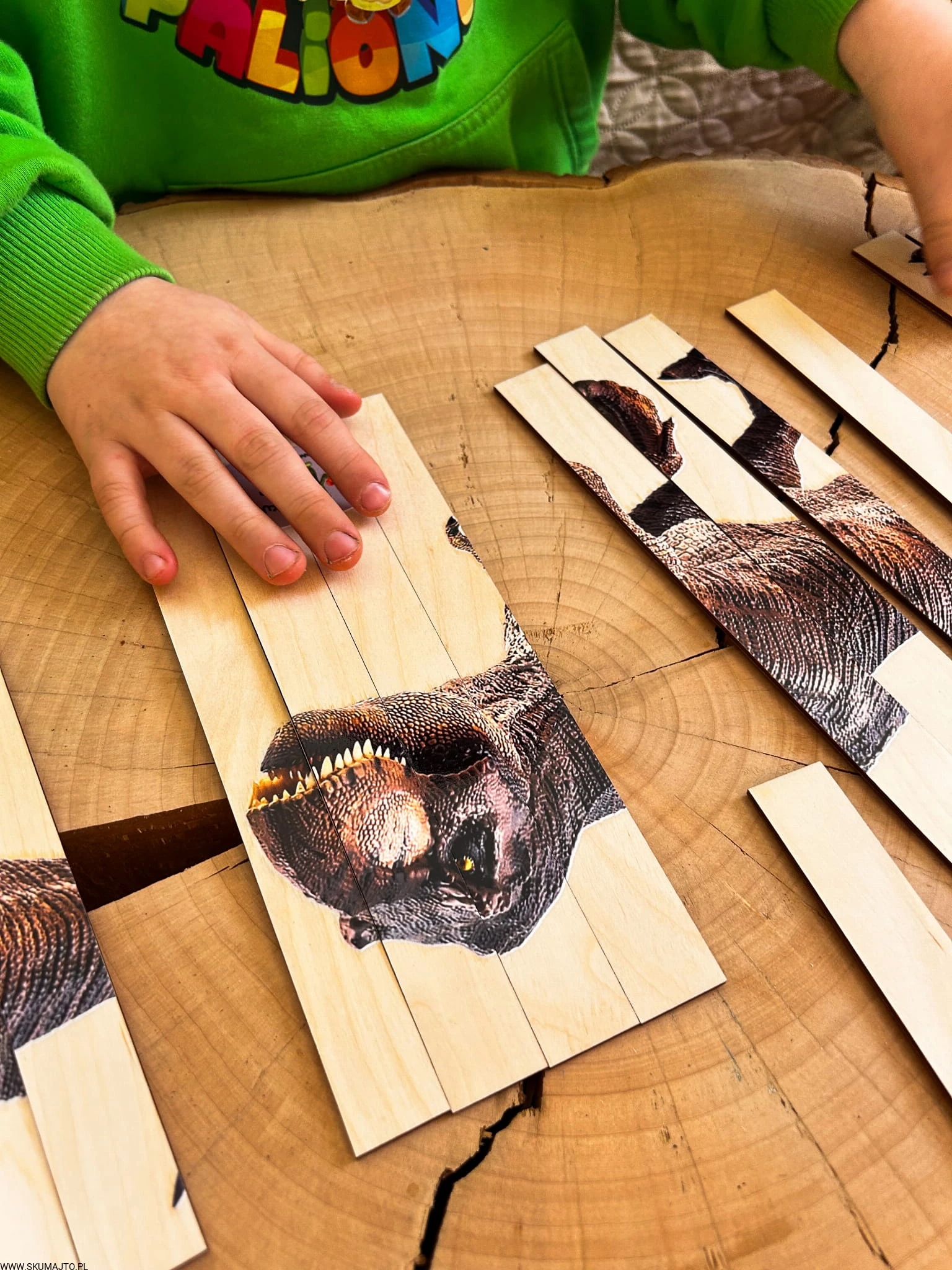 ✔ 14 drewnianych pasków z realistycznym nadrukiem dinozaura