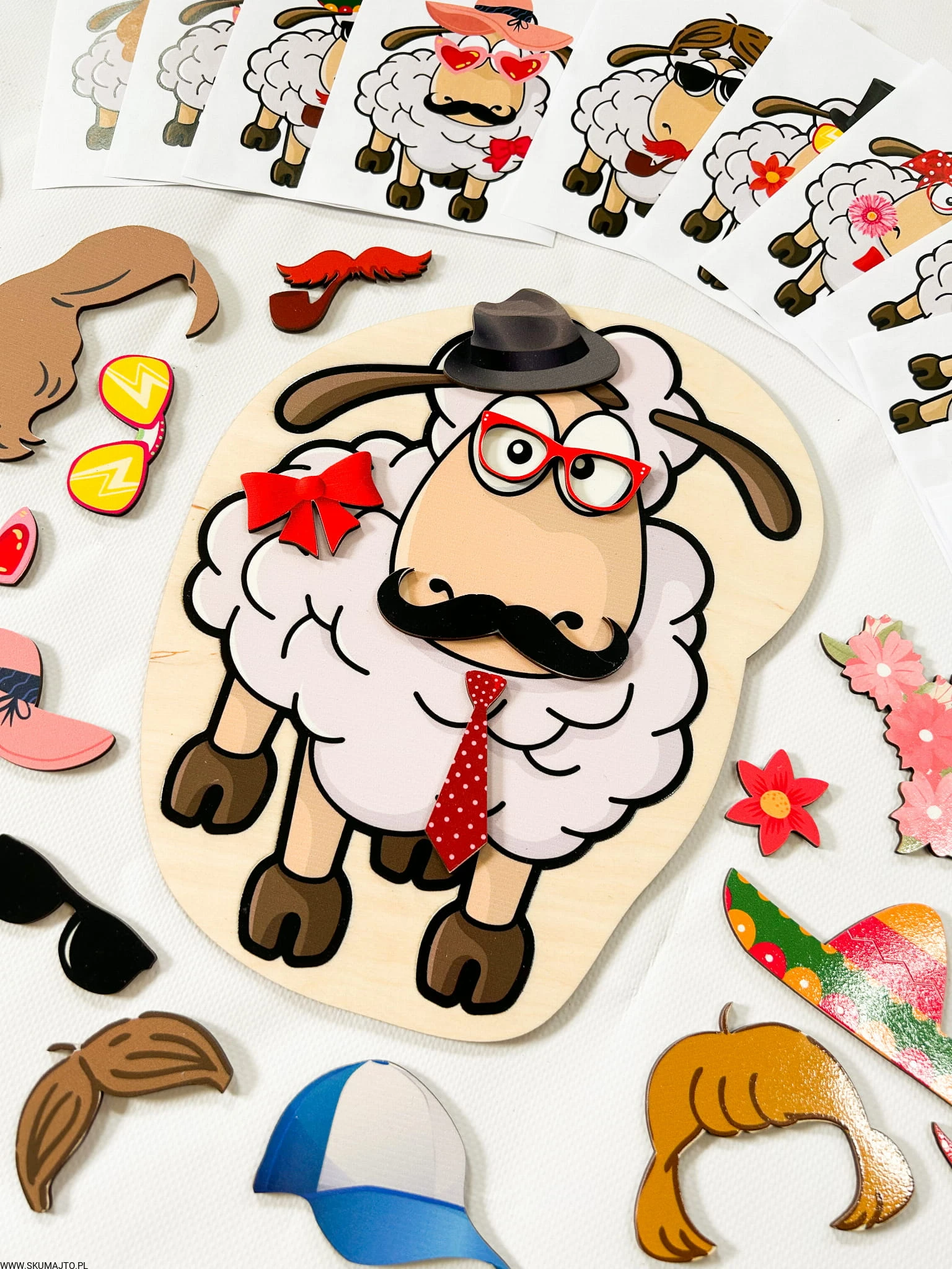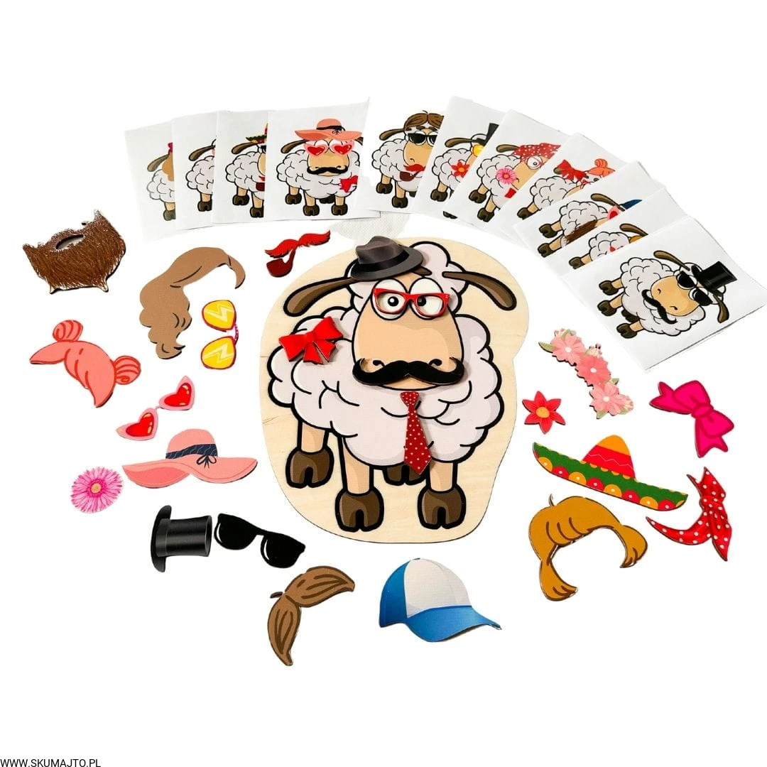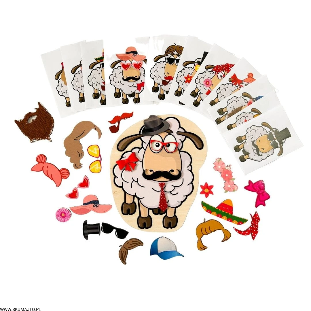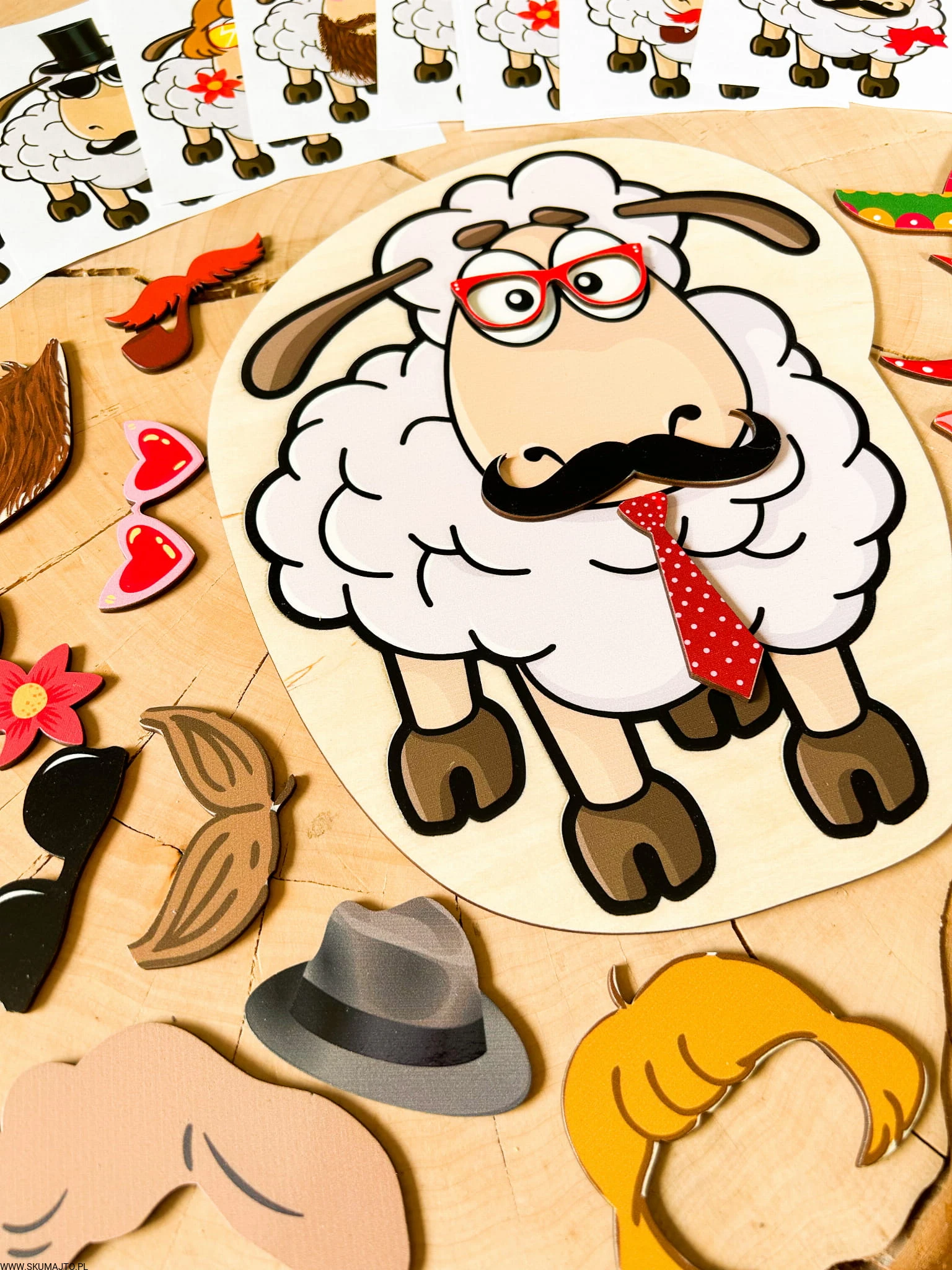 Owca szykuje się na ważną imprezę i potrzebuje Twojej pomocy, by wyglądać jak najlepiej! Pomóż jej dobrać stylizację, korzystając z dołączonych kart lub własnej wyobraźni.