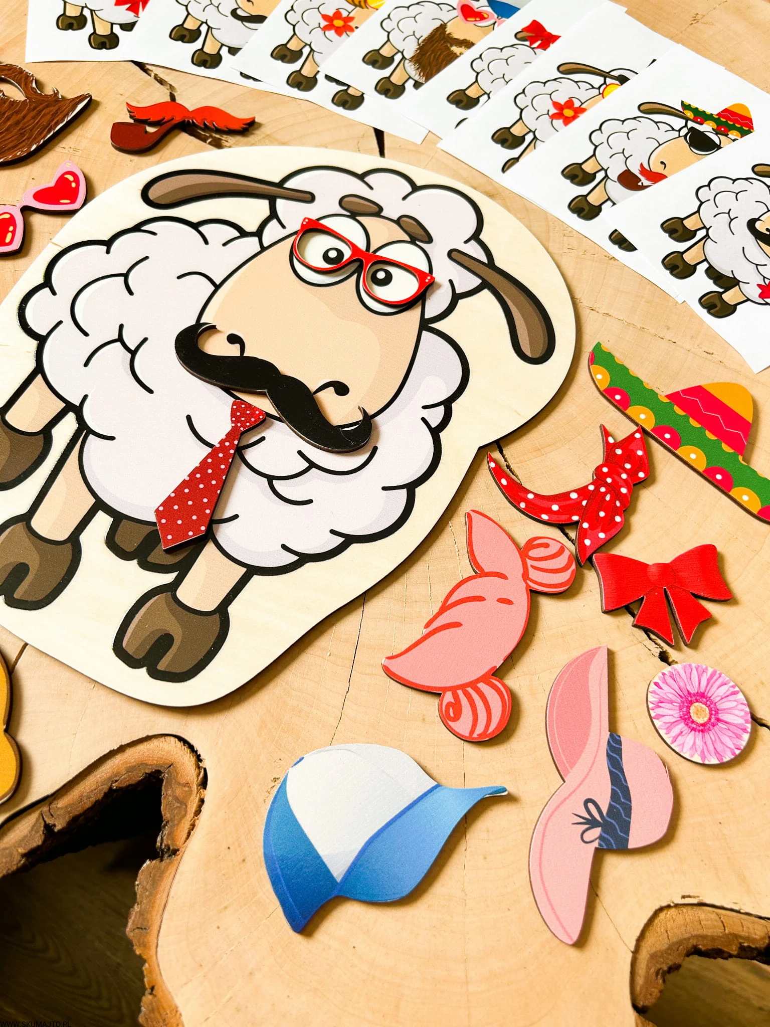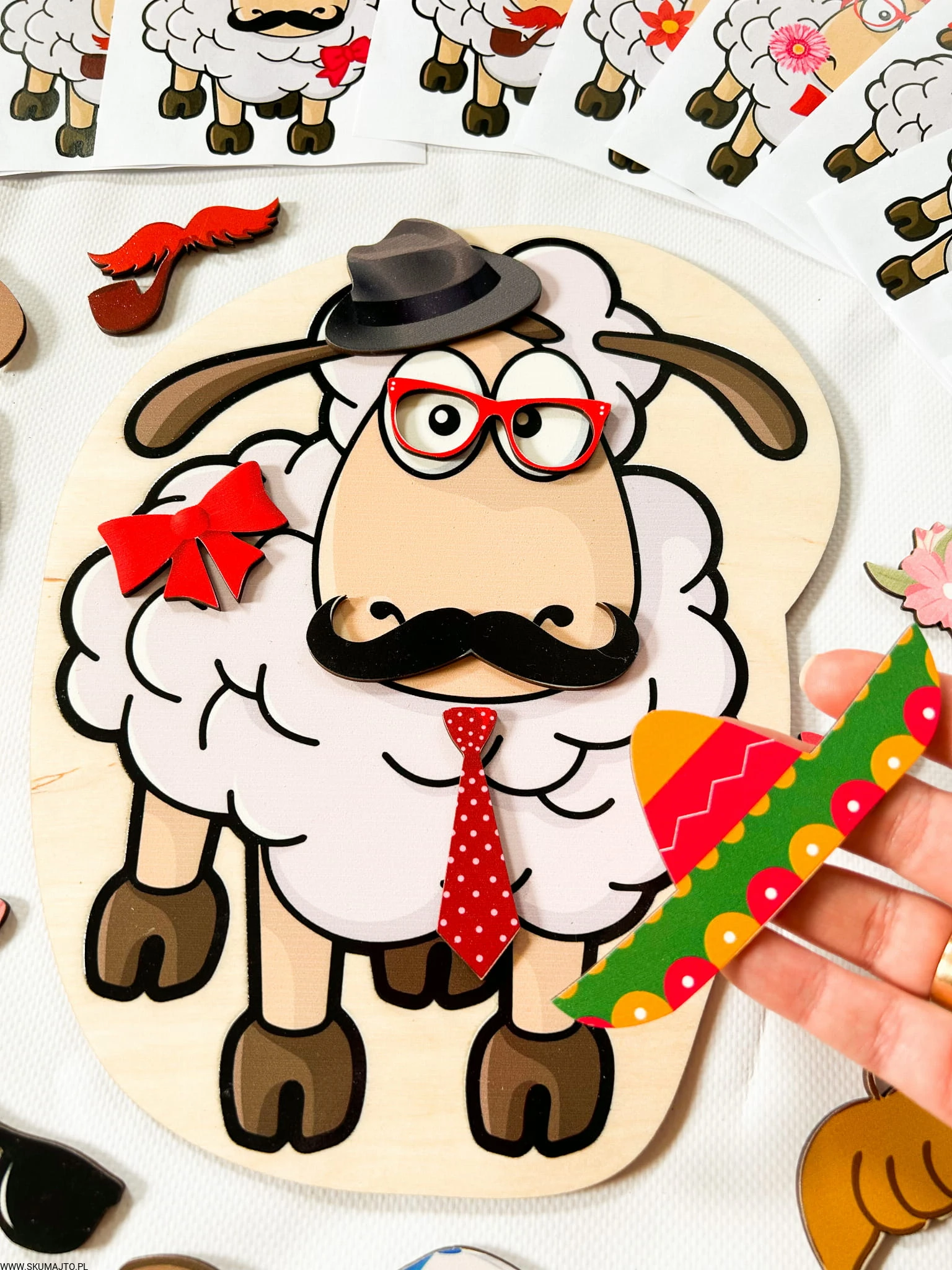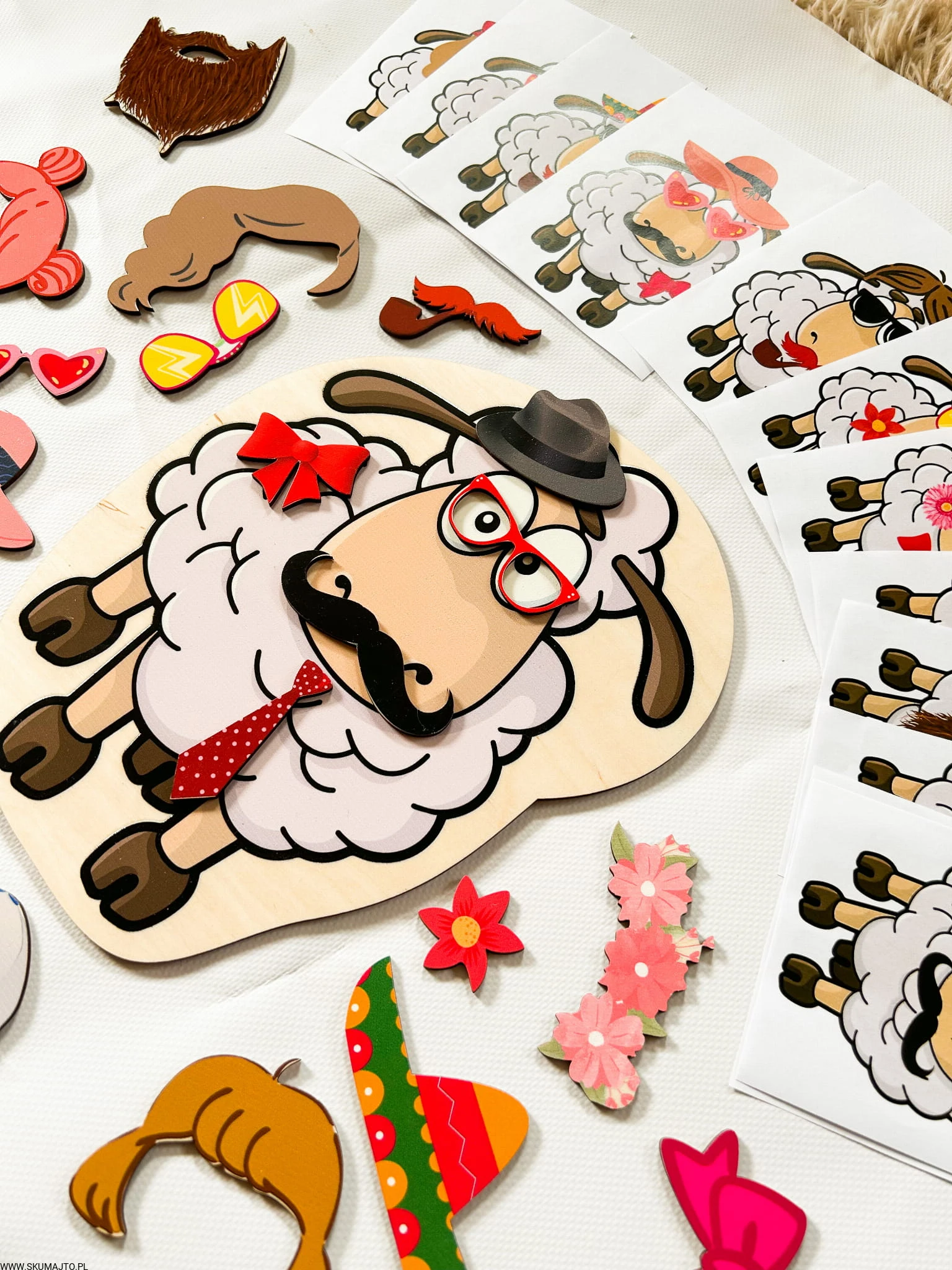 - Wybierz kartę stylizacji: Dziecko wybiera jedną z dołączonych kart i odwzorowuje stylizację na owcy.