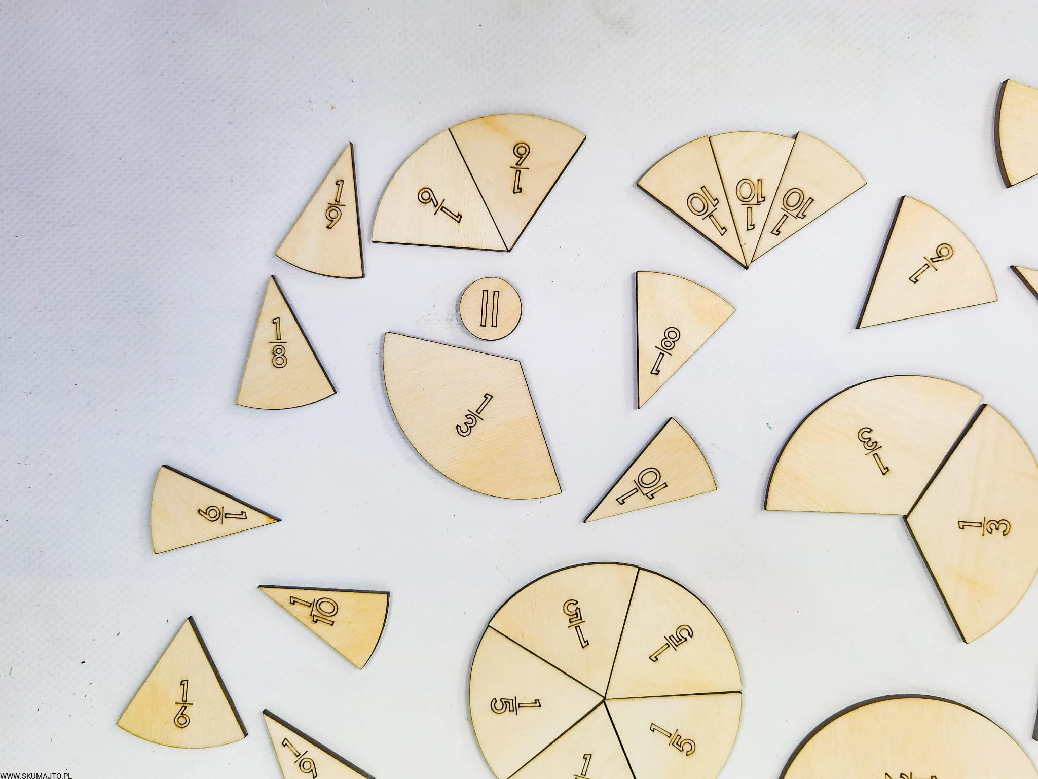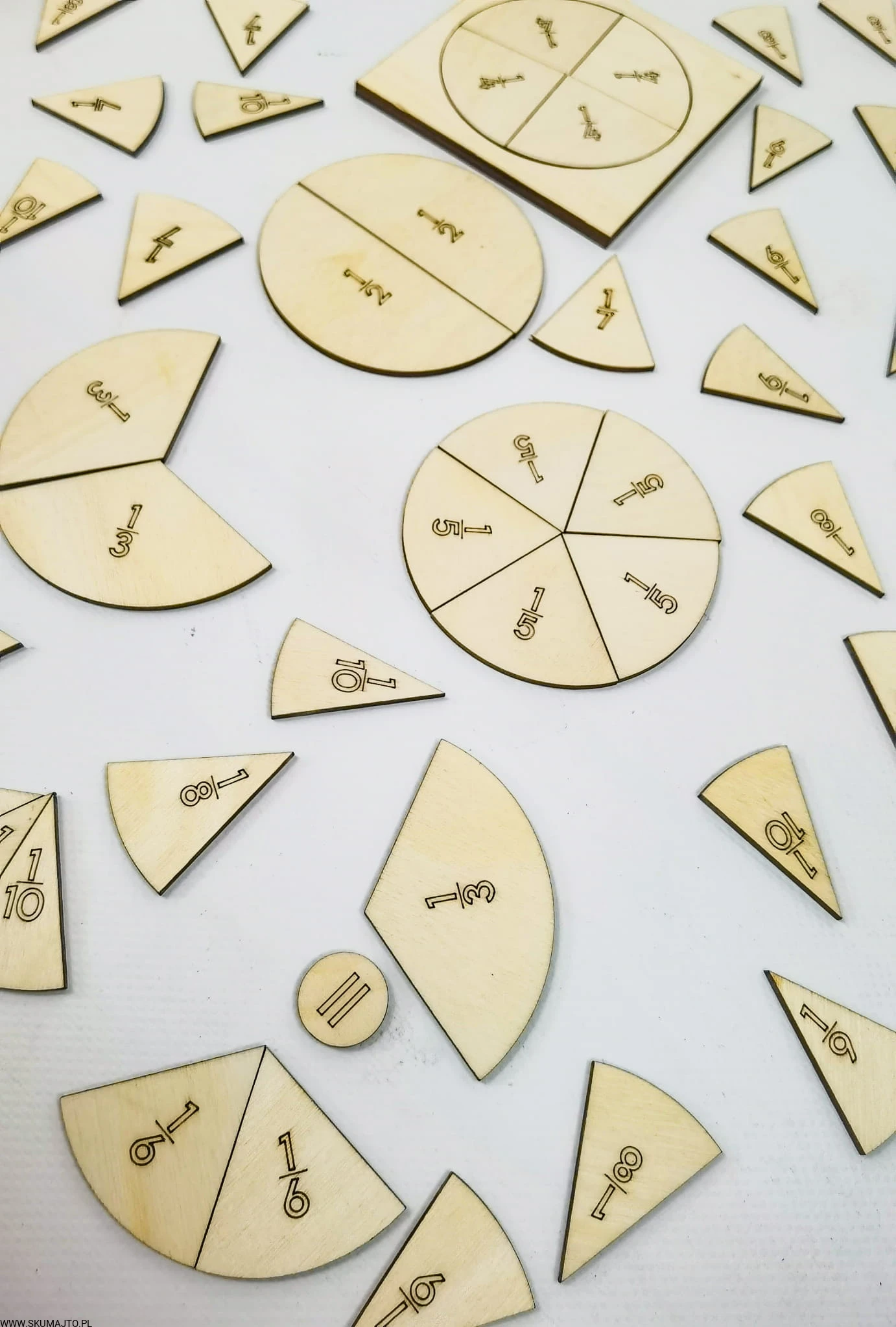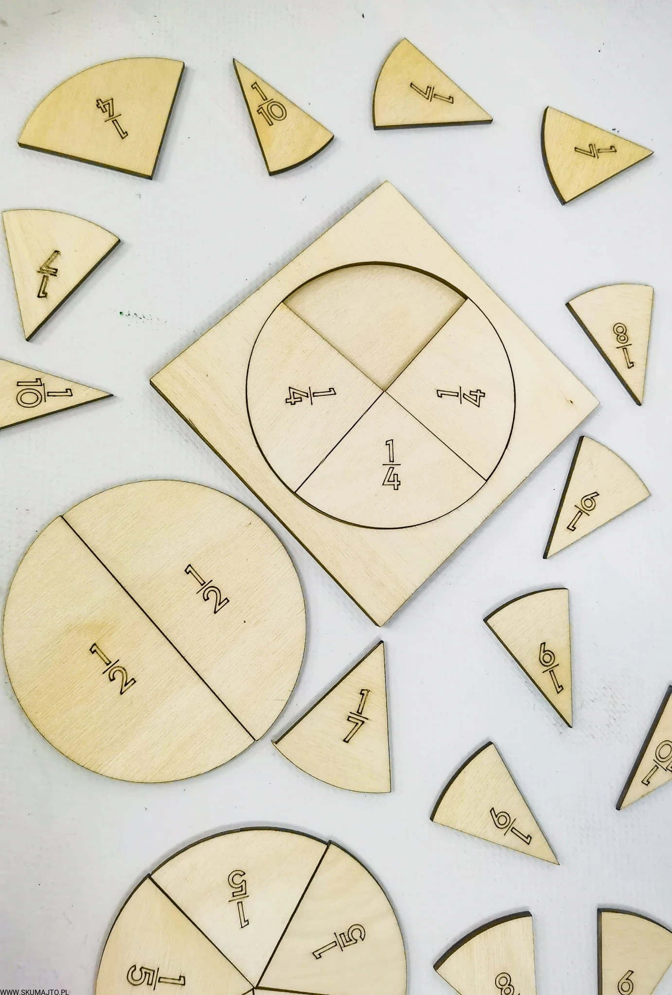 Ułamki, drewniana układanka, nauka ułamków, nauka matematyki