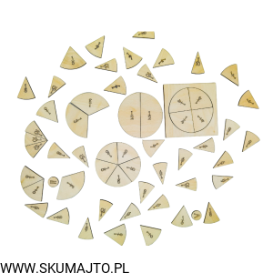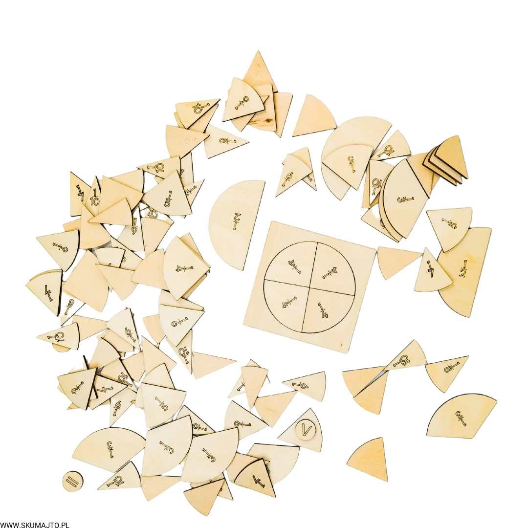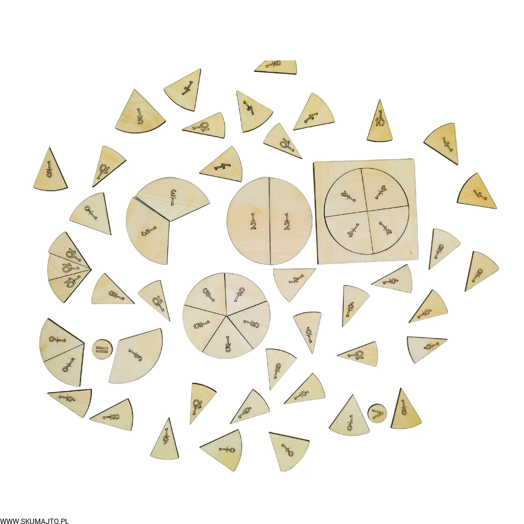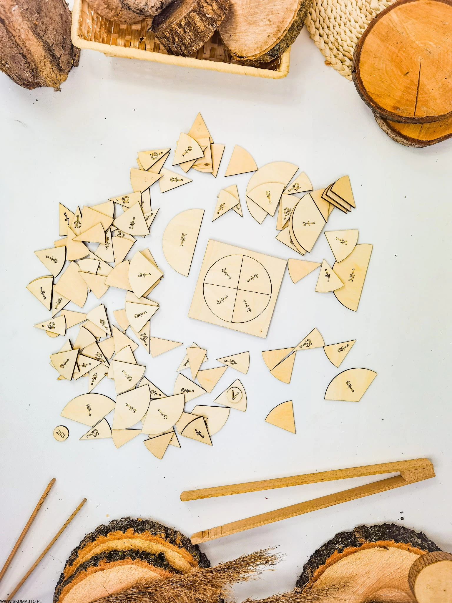 Ułamki, drewniana układanka, nauka ułamków, nauka matematyki