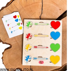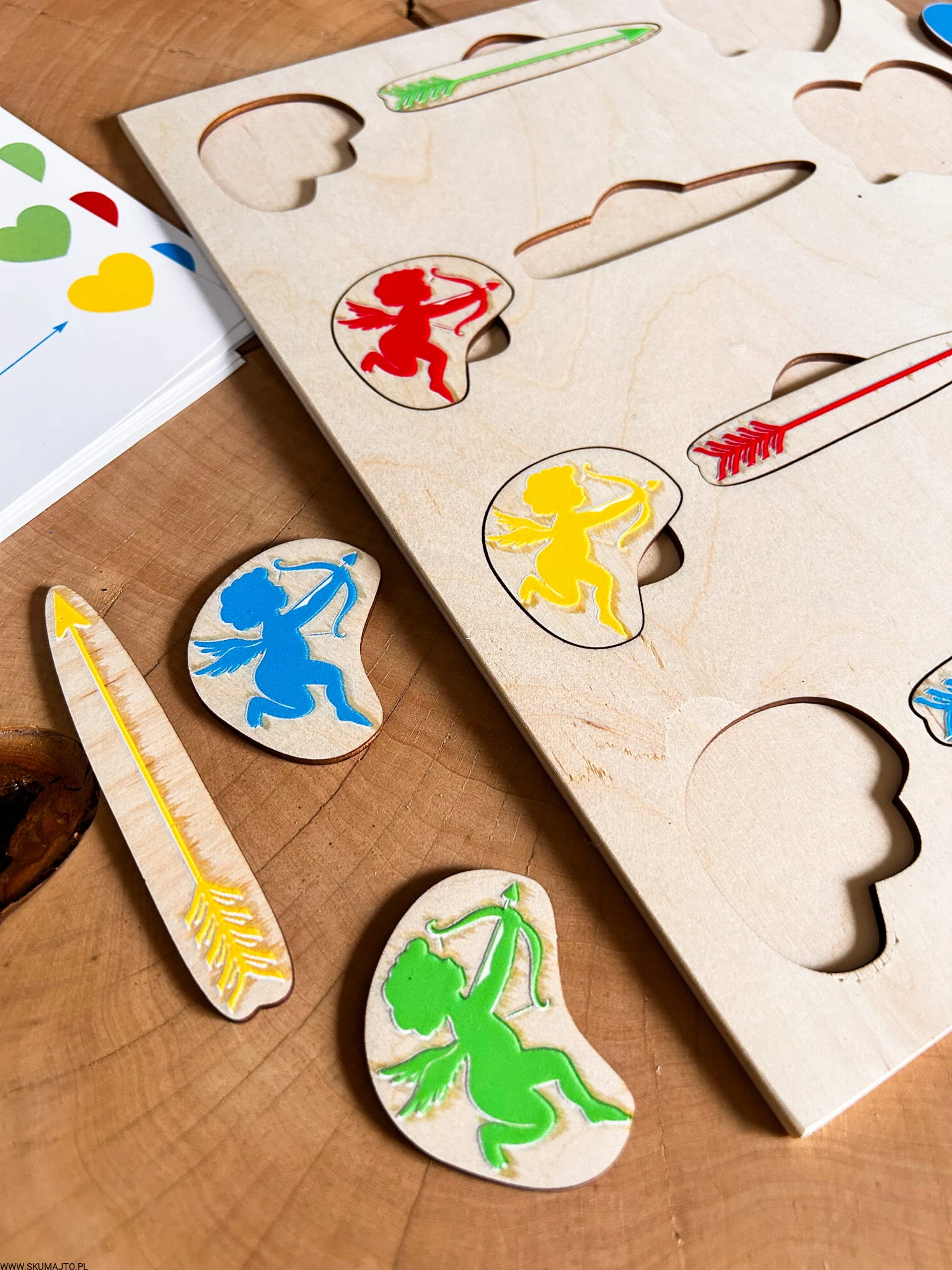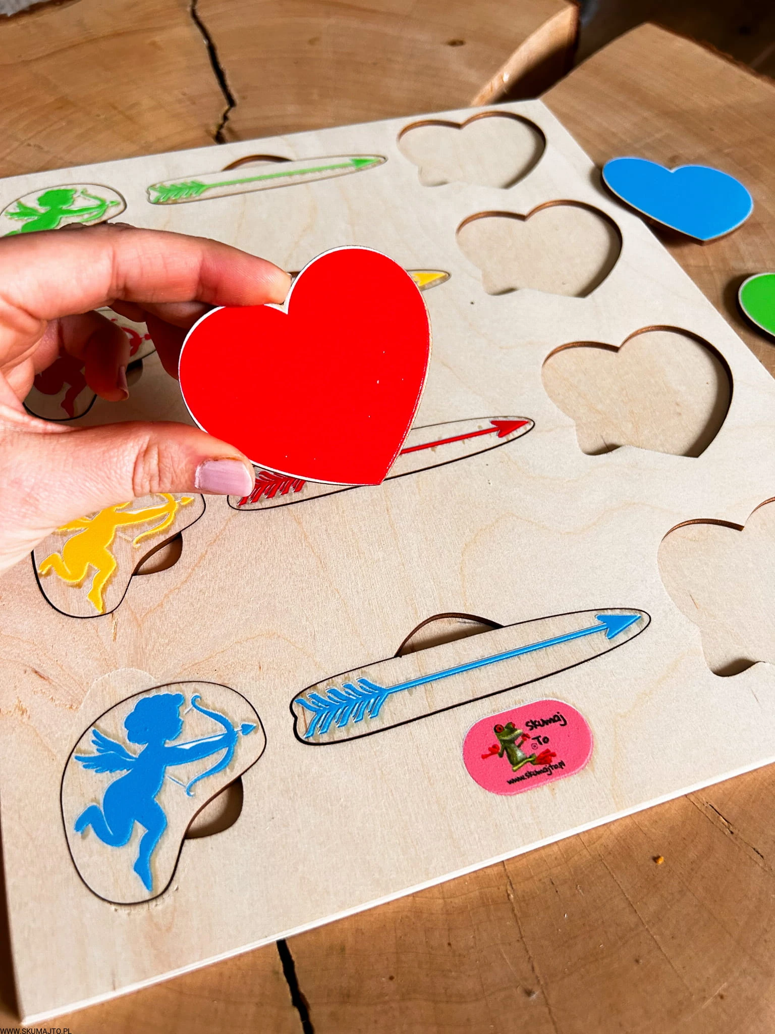 Walentynkowa układanka Amorek, drewniana układanka do odwzorowywania