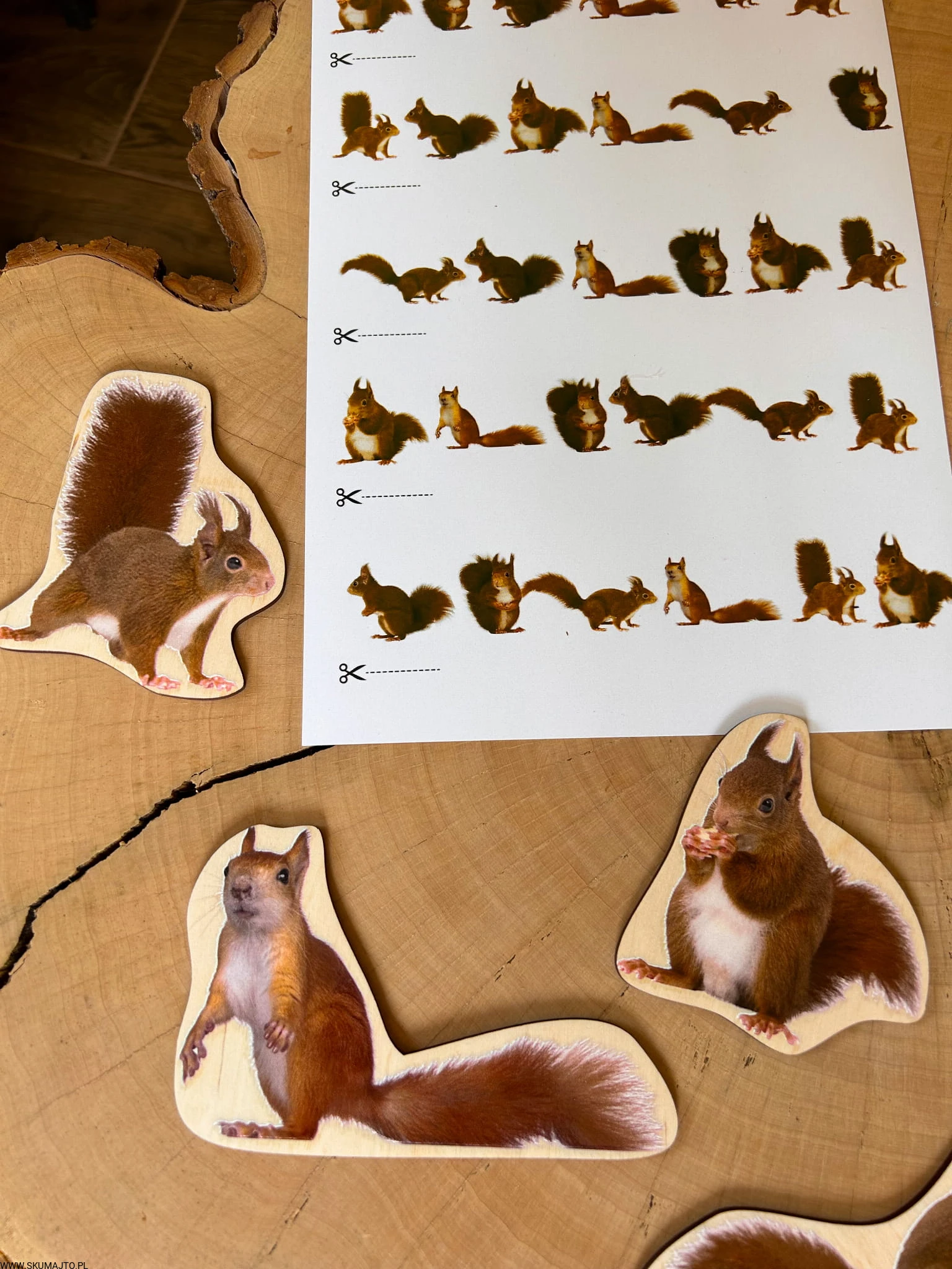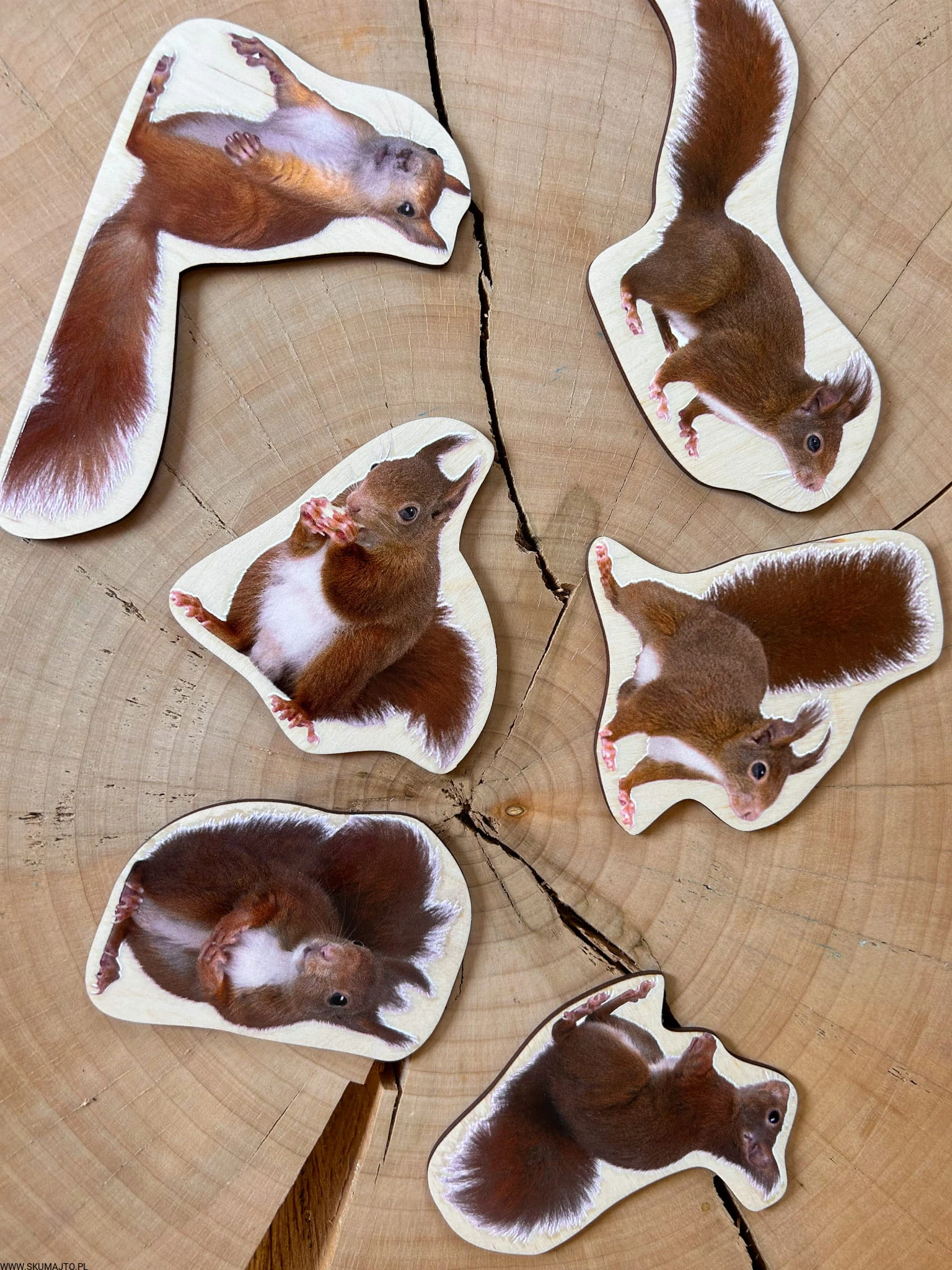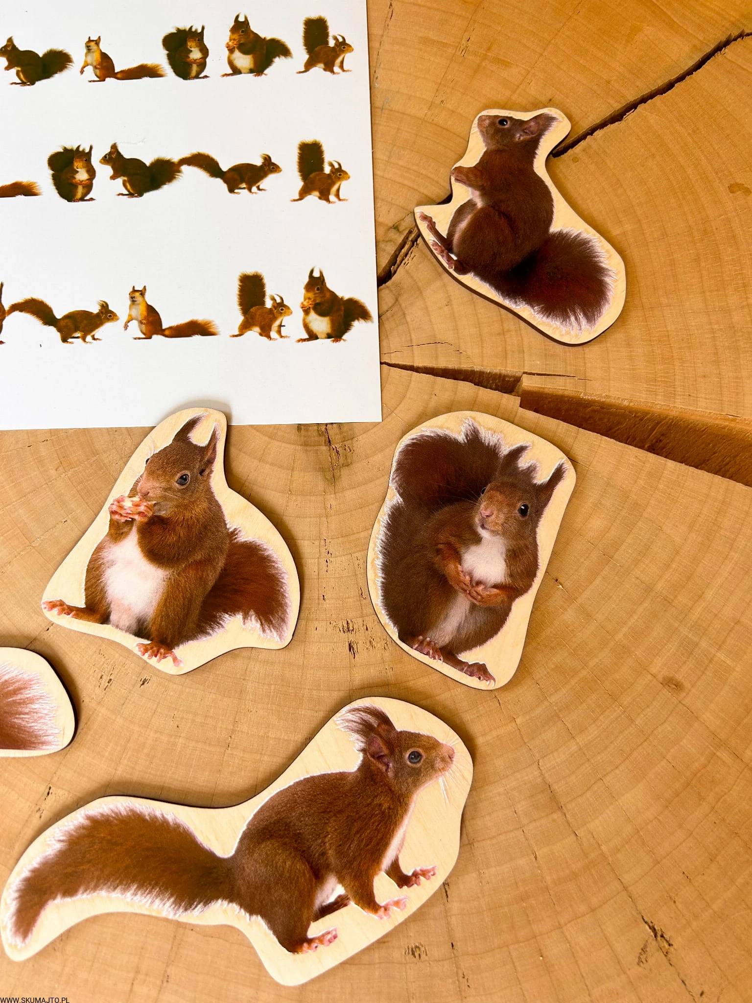 - Karty do odwzorowywania: W zestawie znajdziesz karty z różnymi układami wiewiórek, które dziecko może odwzorowywać, ćwicząc przy tym logiczne myślenie i koncentrację.
