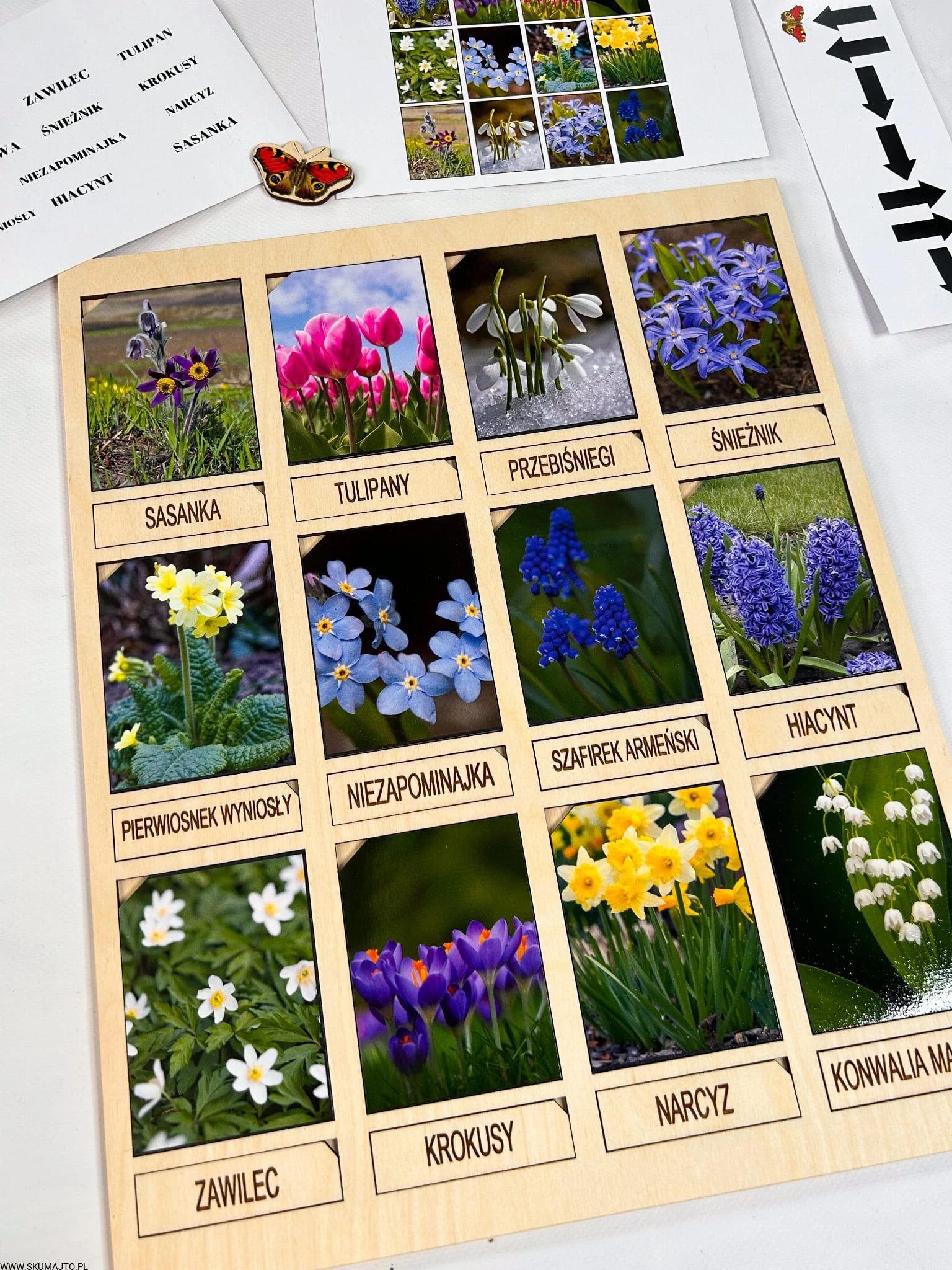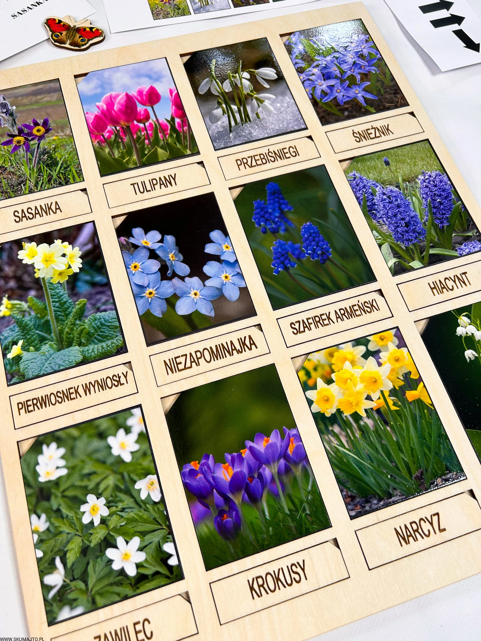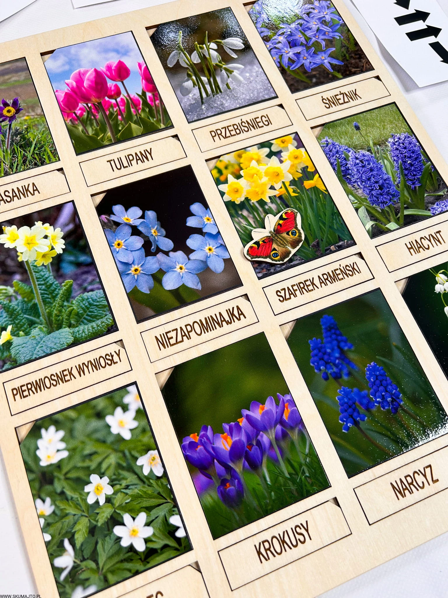 - Odwzorowywanie kwiatów: Dzięki dołączonym kartom, dziecko układa kwiaty w odpowiedniej kolejności, patrząc na grafiki lub nazwy kwiatów.