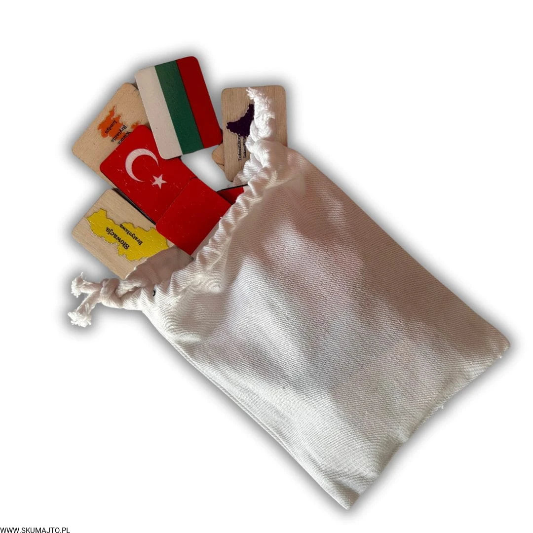 Przedstawiamy praktyczny i ekologiczny woreczek bawełniany od SkumajTo, idealny do przechowywania elementów układanek oraz innych drobnych przedmiotów.