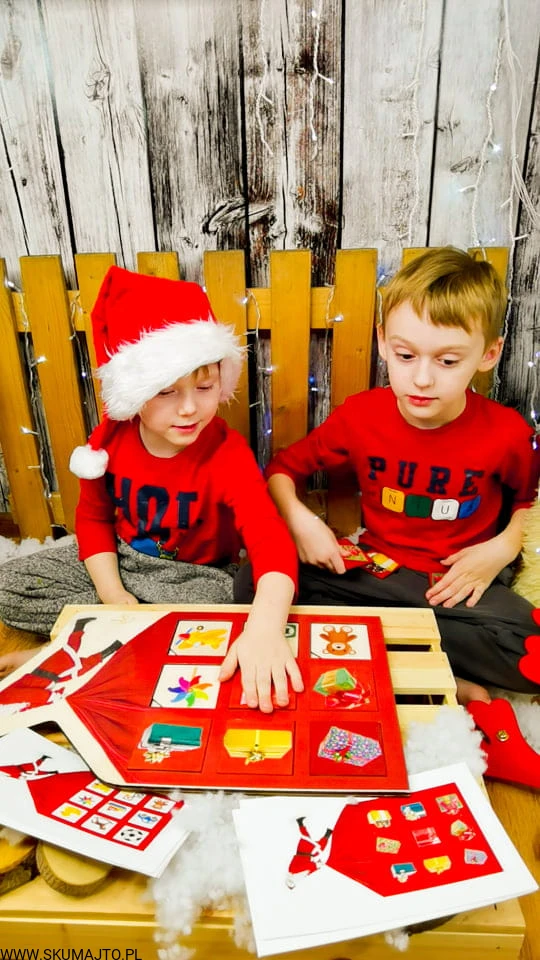 Mikołaj wyrusza w świat, ale potrzebuje Twojej pomocy! Pomóż mu zapakować worek z prezentami zgodnie z kartami do odwzorowywania. To doskonała zabawa rozwijająca pamięć, orientację przestrzenną i umiejętności logicznego myślenia.