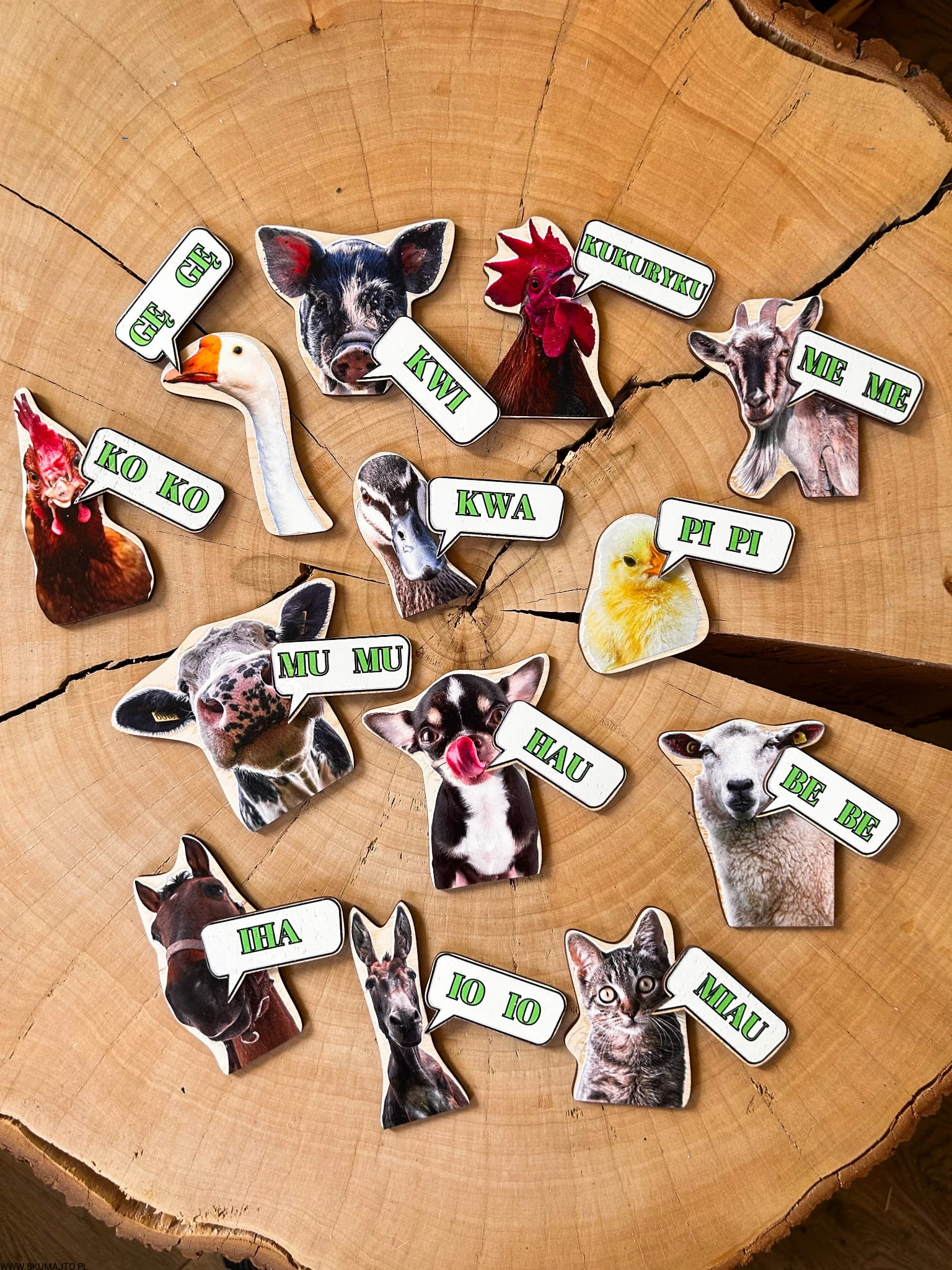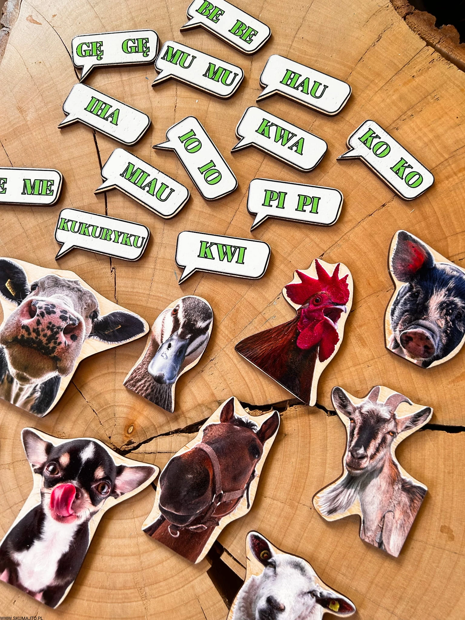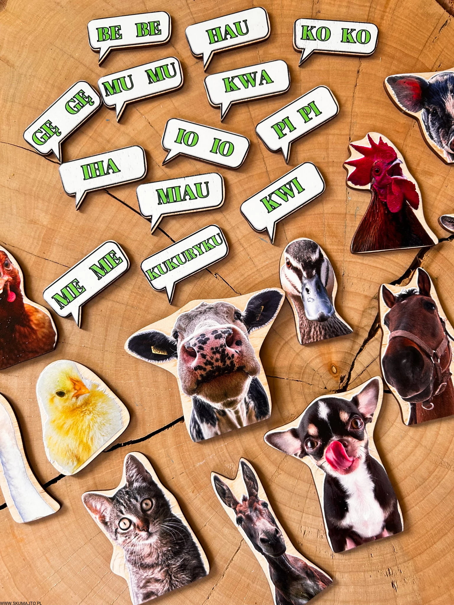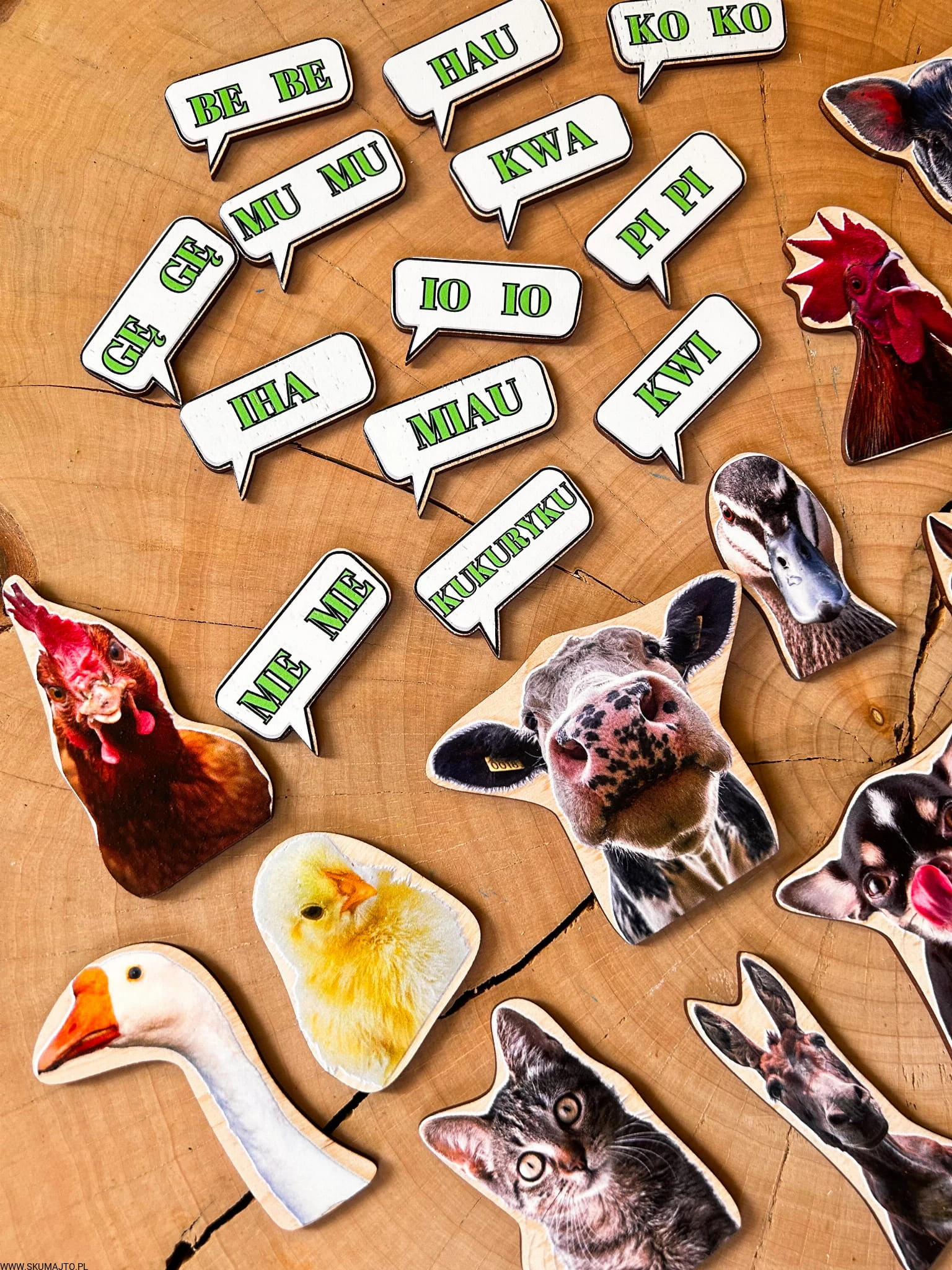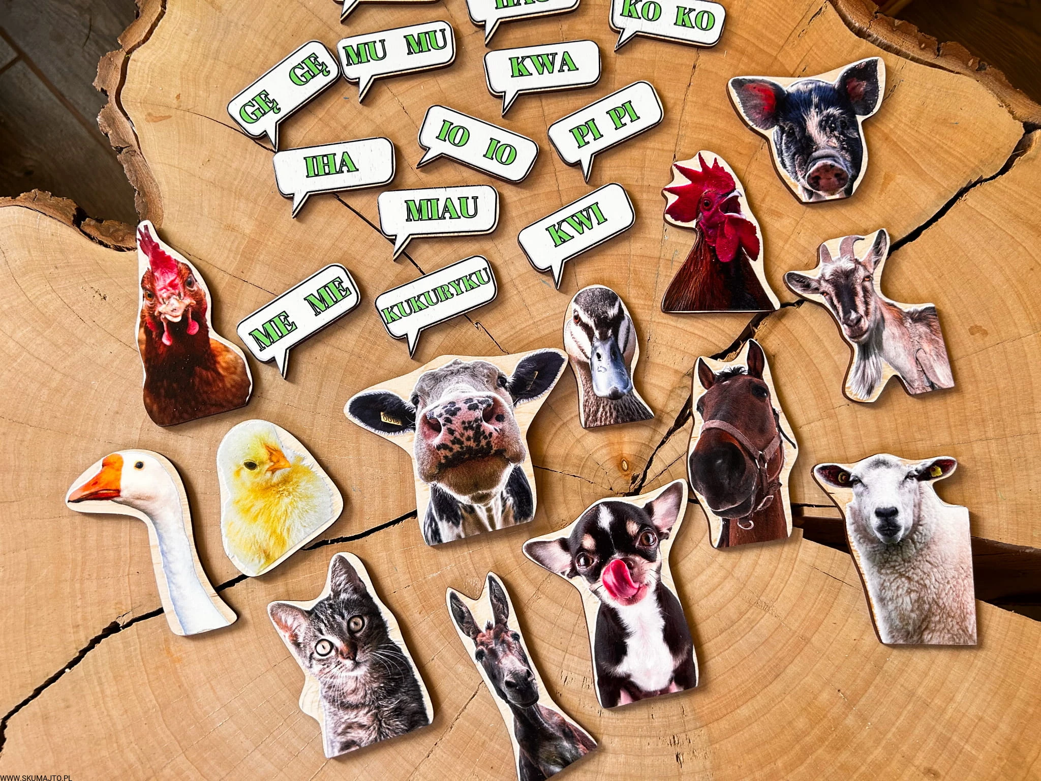 Wyrażenia dźwiękonaśladowcze- zwierzęta wsi- drewniana układanka