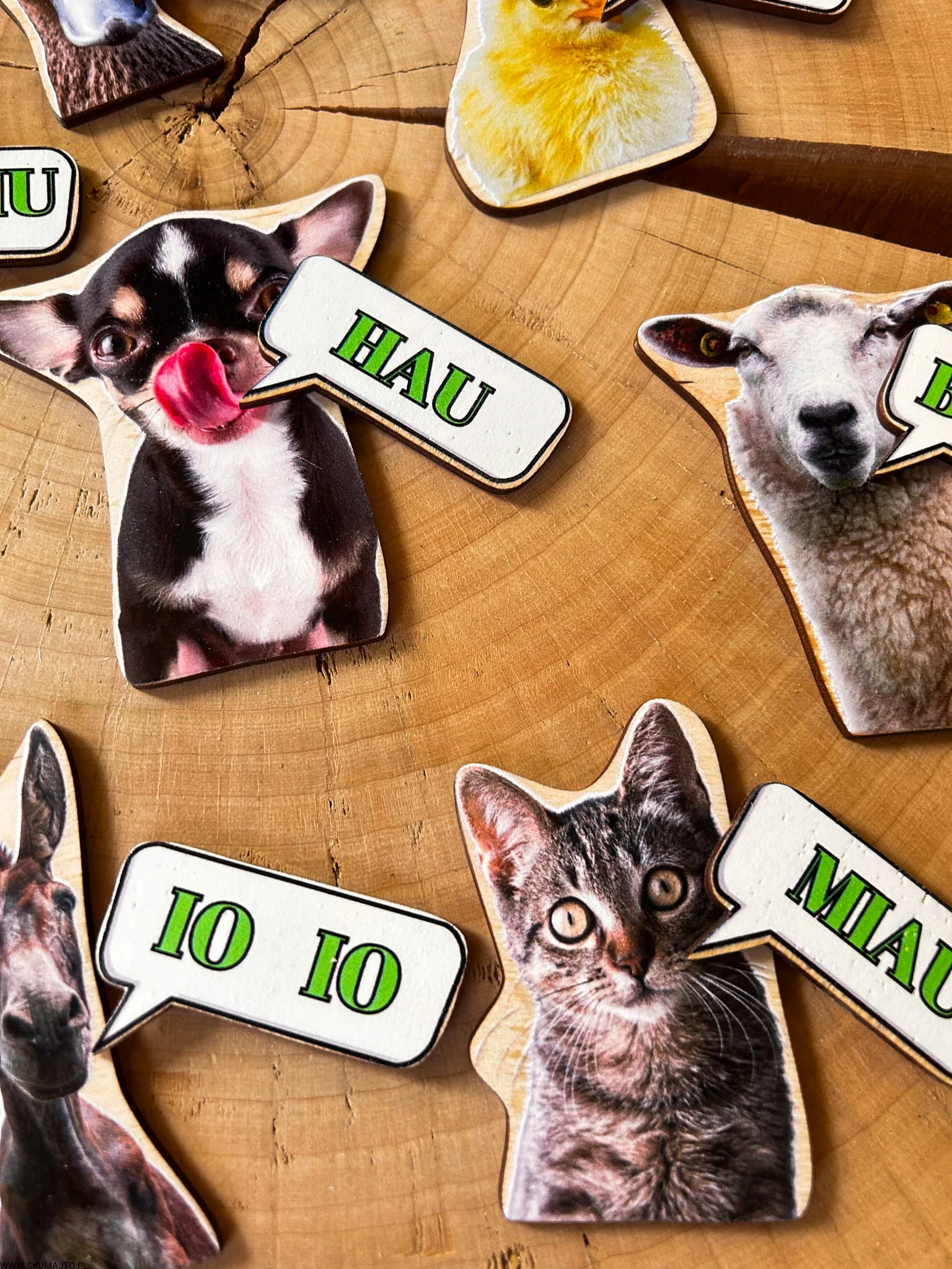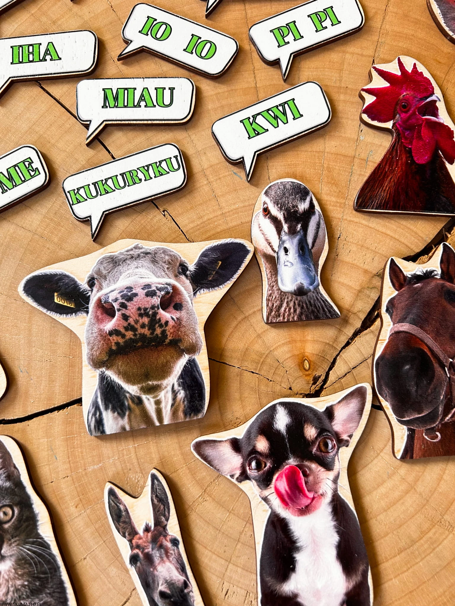 - Naśladuj dźwięki! Zabawa w odtwarzanie zwierzęcych odgłosów to świetny sposób na rozwój mowy i wyrażanie emocji.