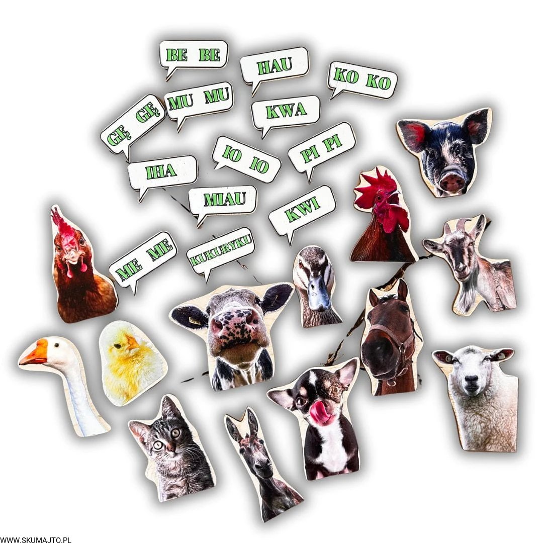 Wyobraź sobie chwilę, gdy Twoje dziecko zanurza się w magiczny świat wiejskiego podwórka, pełen kwakania kaczek, beczenia owiec i radosnego „kukuryku” koguta. Układanka „Wyrażenia dźwiękonaśladowcze – zwierzęta wiejskie” to nie tylko zabawka, ale fascynująca podróż do świata zwierzęcych dźwięków, która pozwoli maluchowi rozwijać się w rytmie radości i ciekawości.