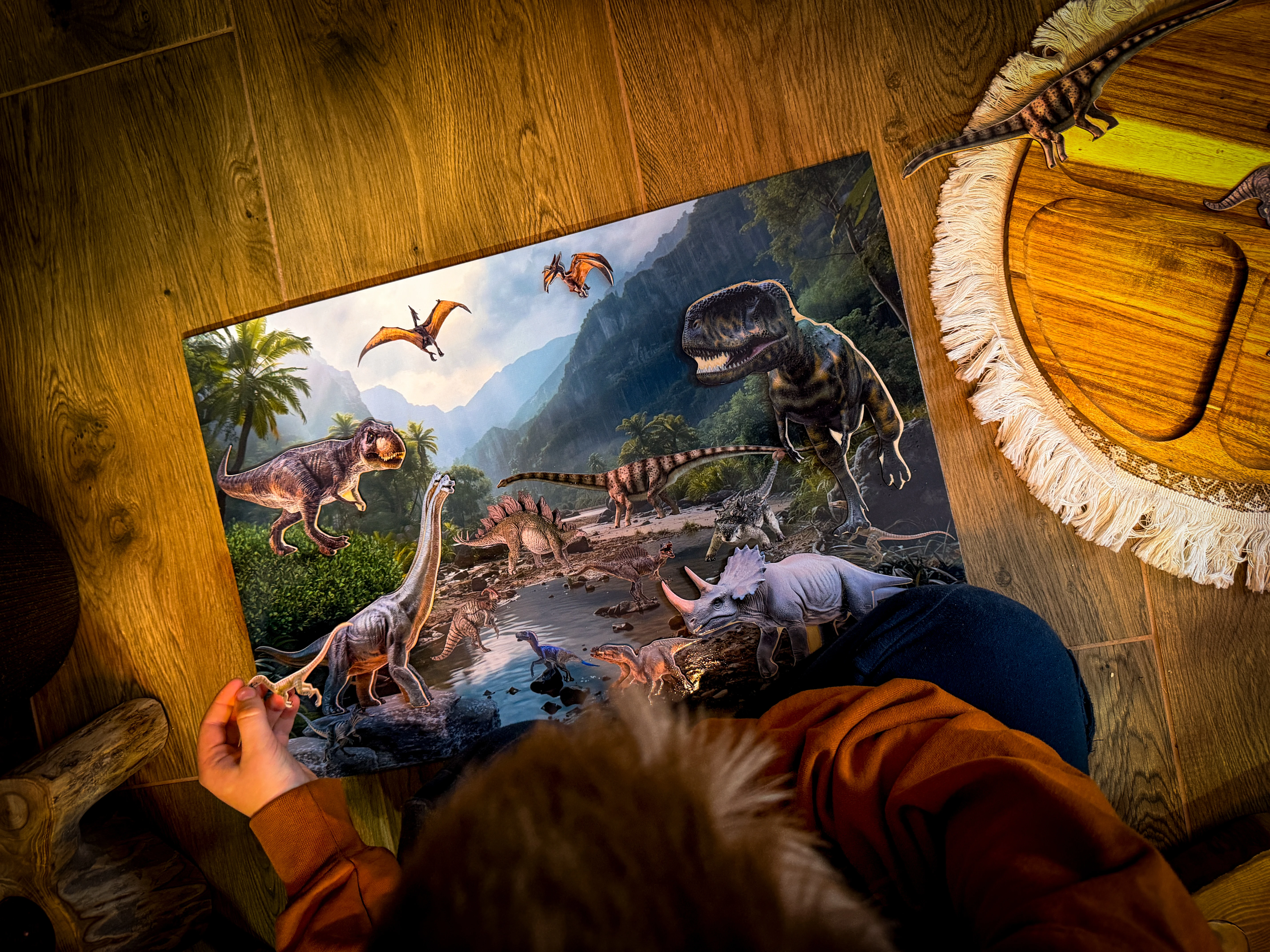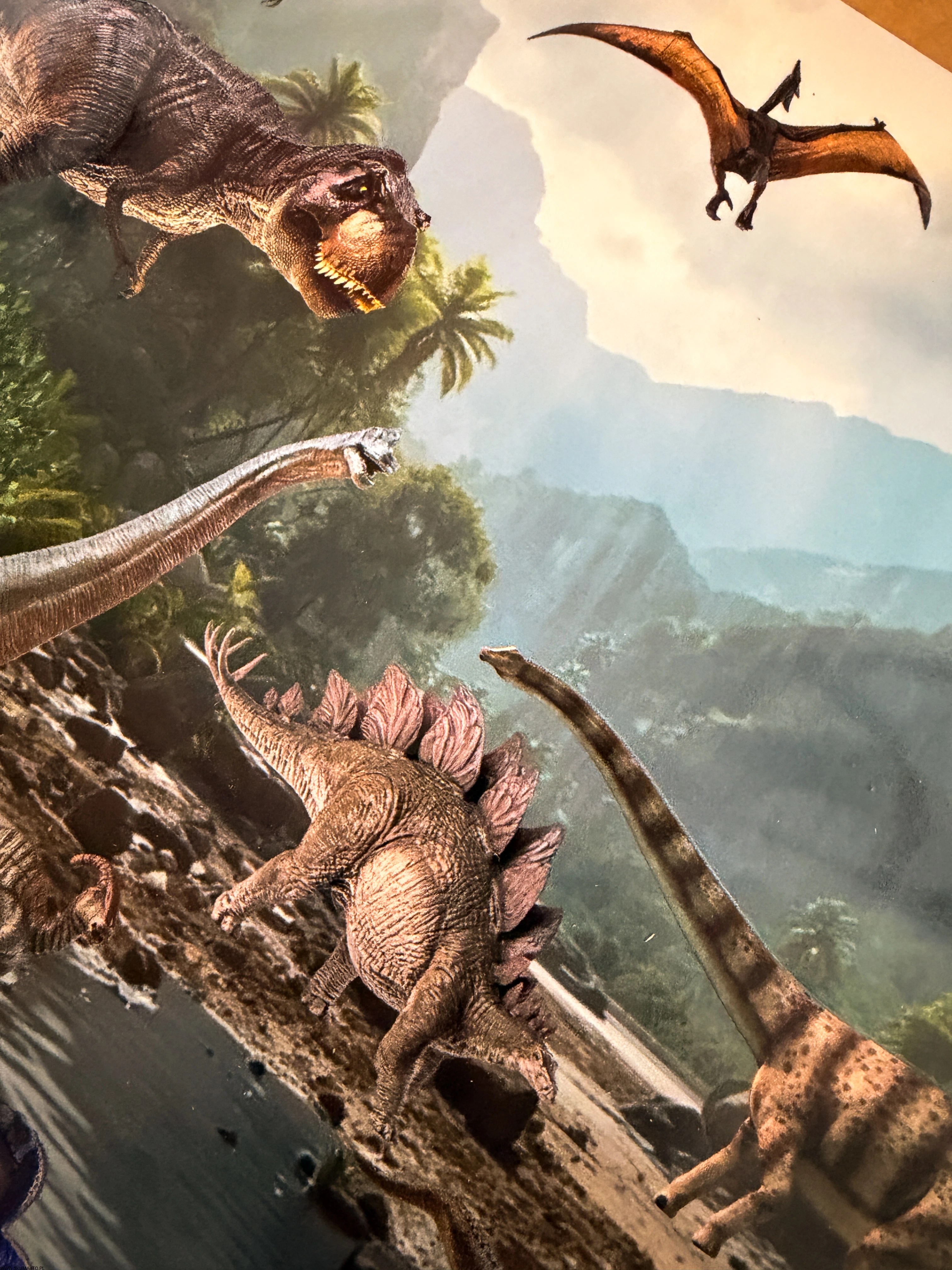 Duża, bogata ilustracja prehistorycznego świata przyciąga wzrok i naturalnie zachęca do eksplorowania. Dziecko samo chce szukać, sprawdzać, porównywać. Nie trzeba go namawiać ani prowadzić krok po kroku.