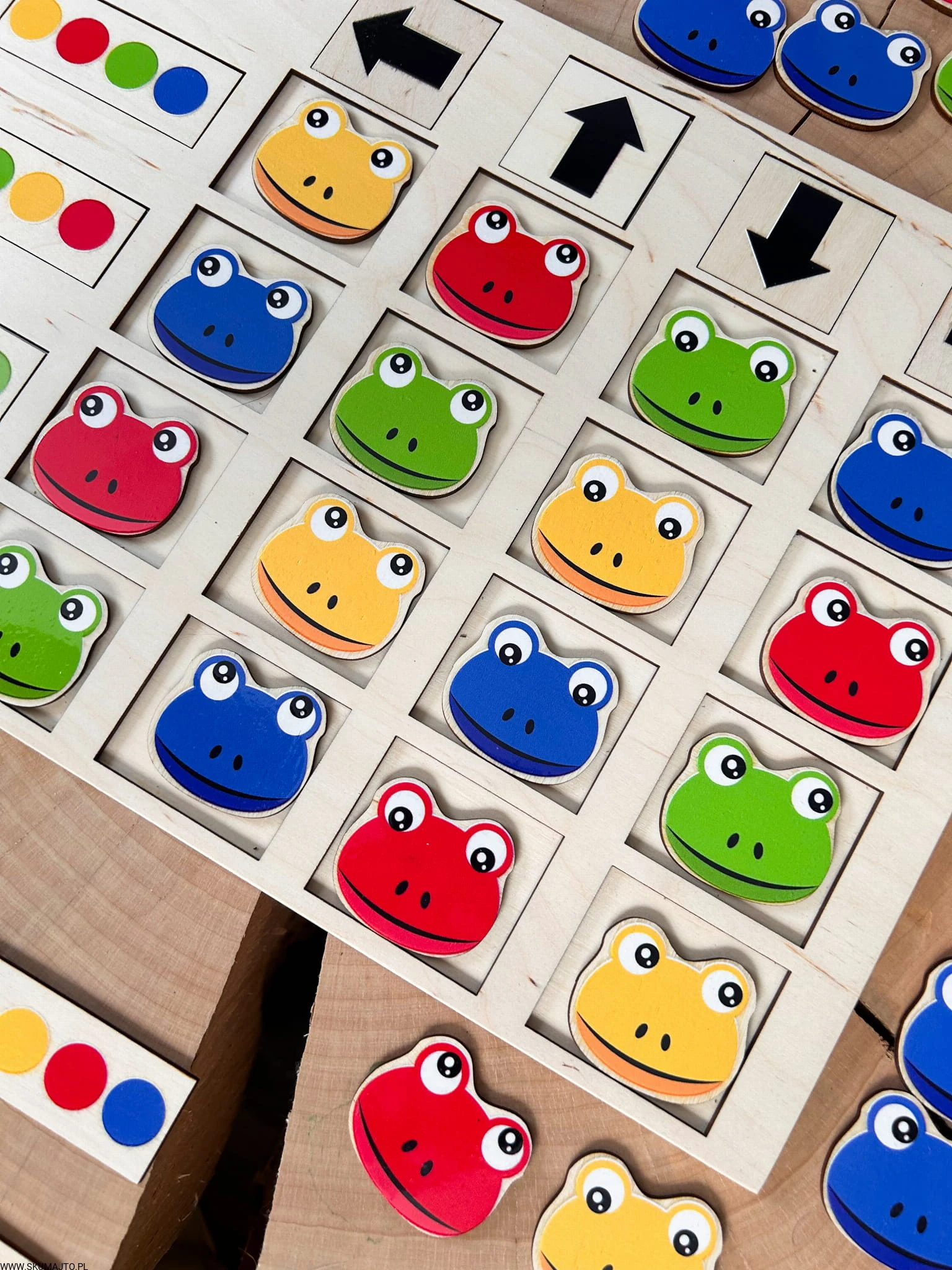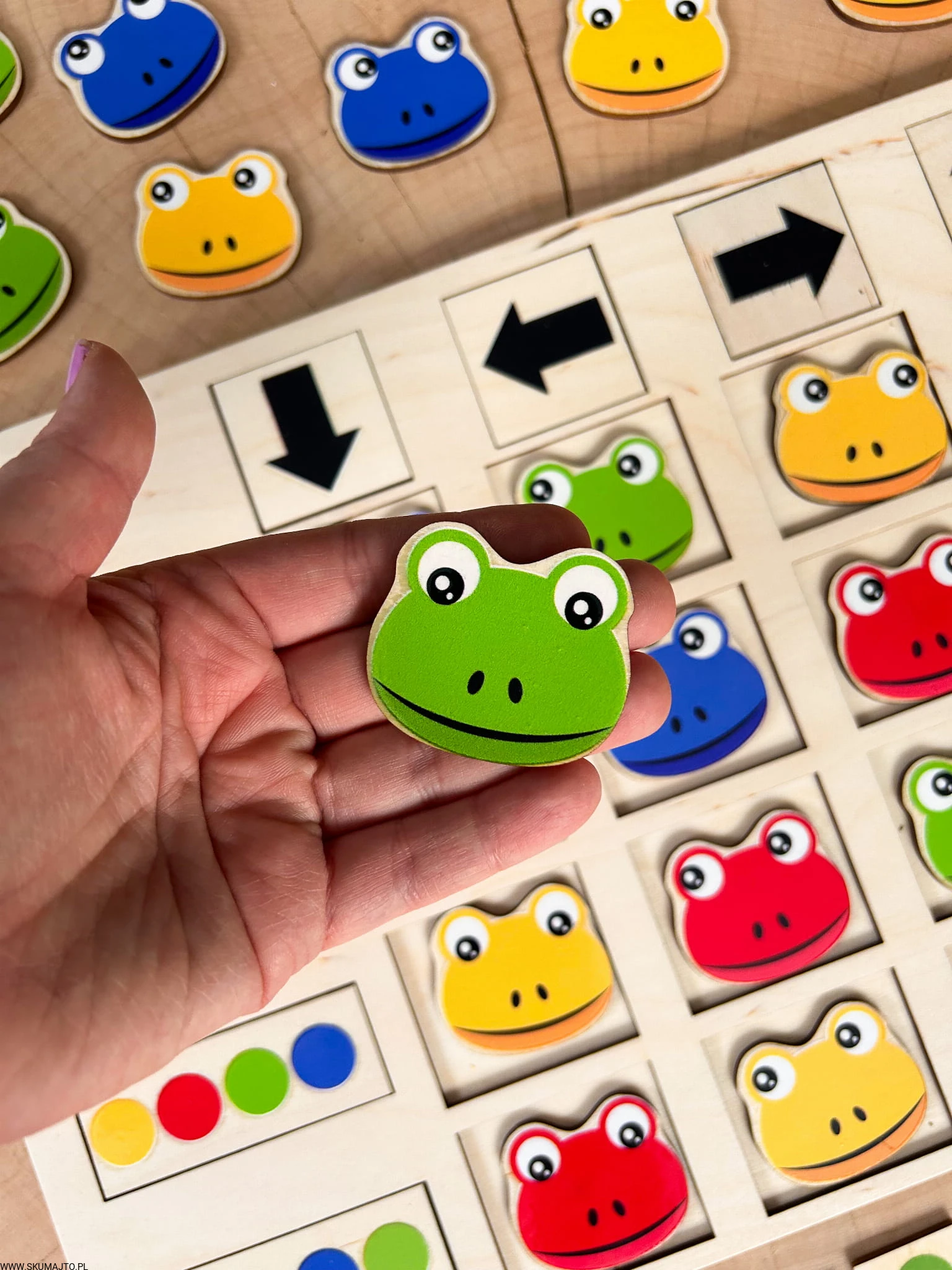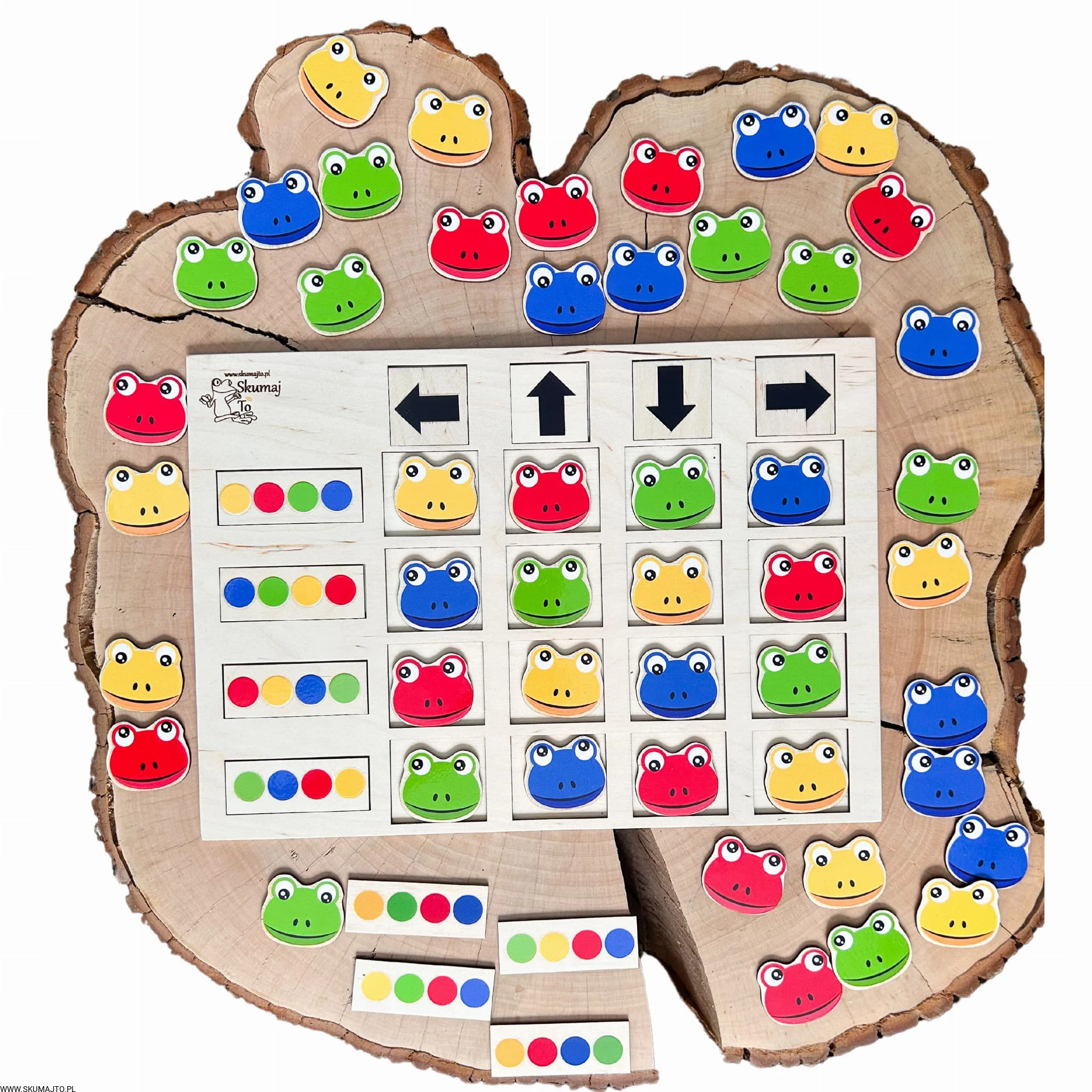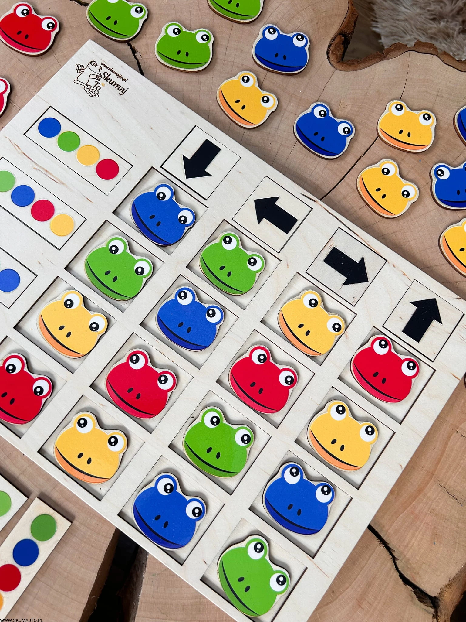 Żabki do odwzorowywania, nauka kierunków, nauka kolorów, odwzorowywanie