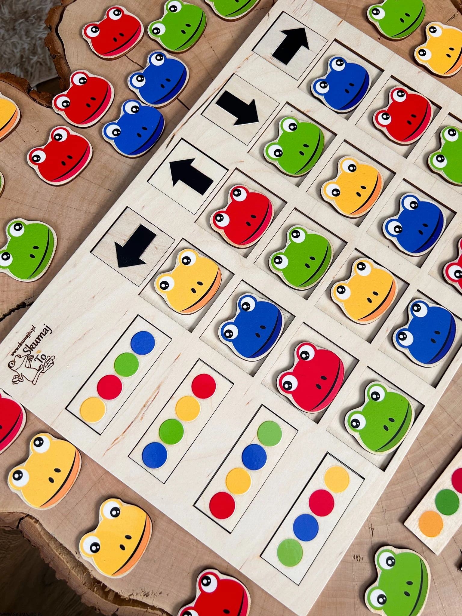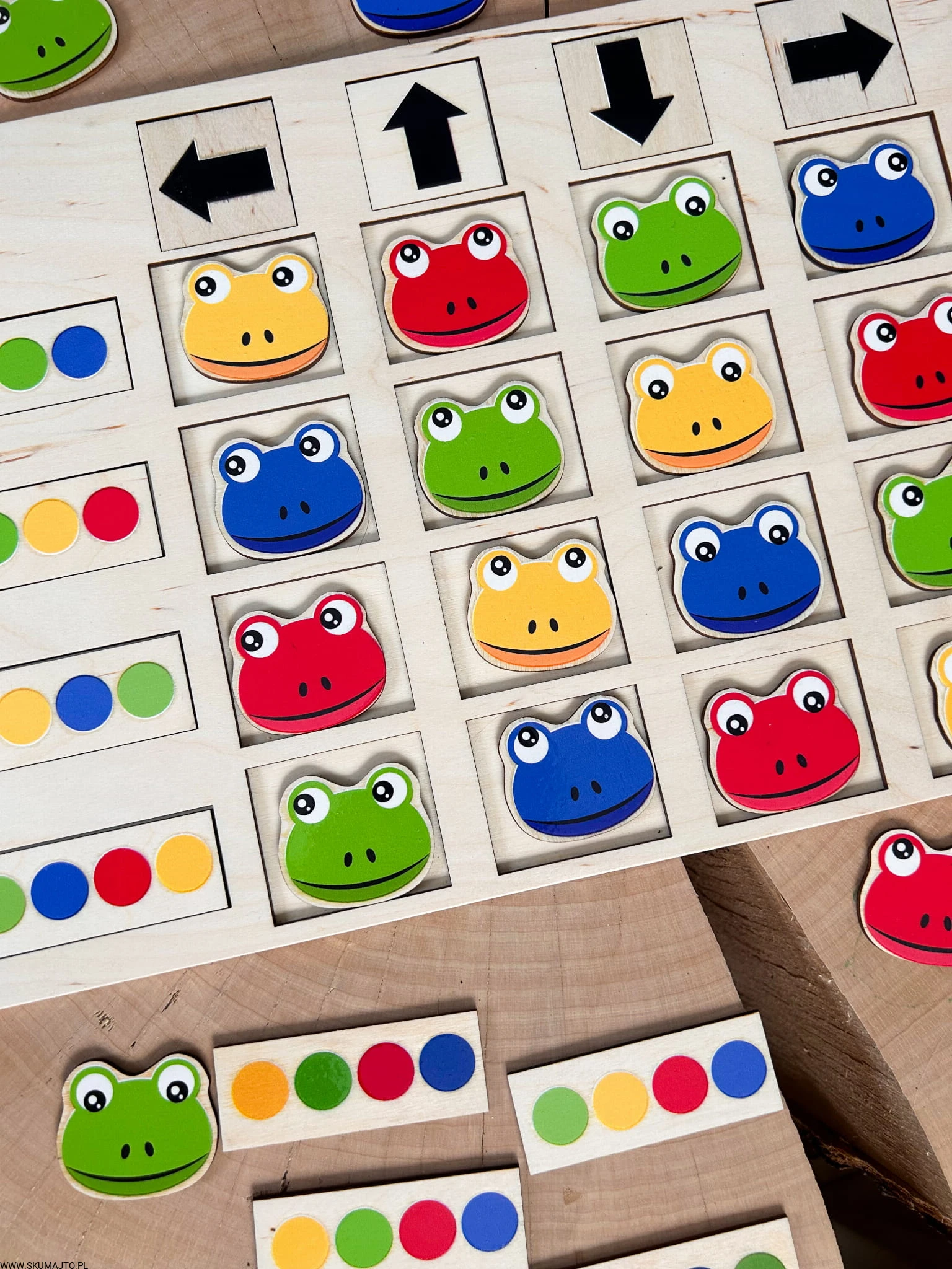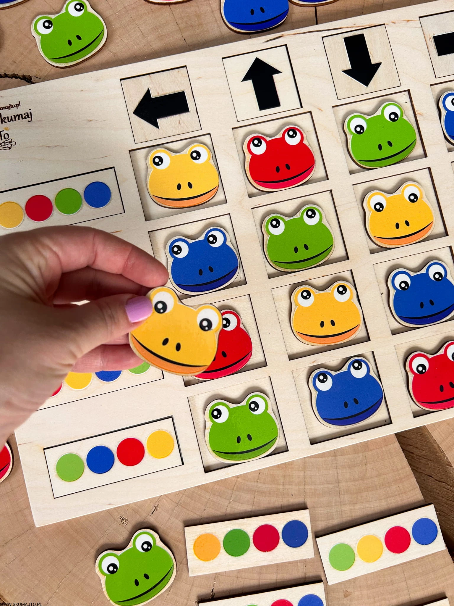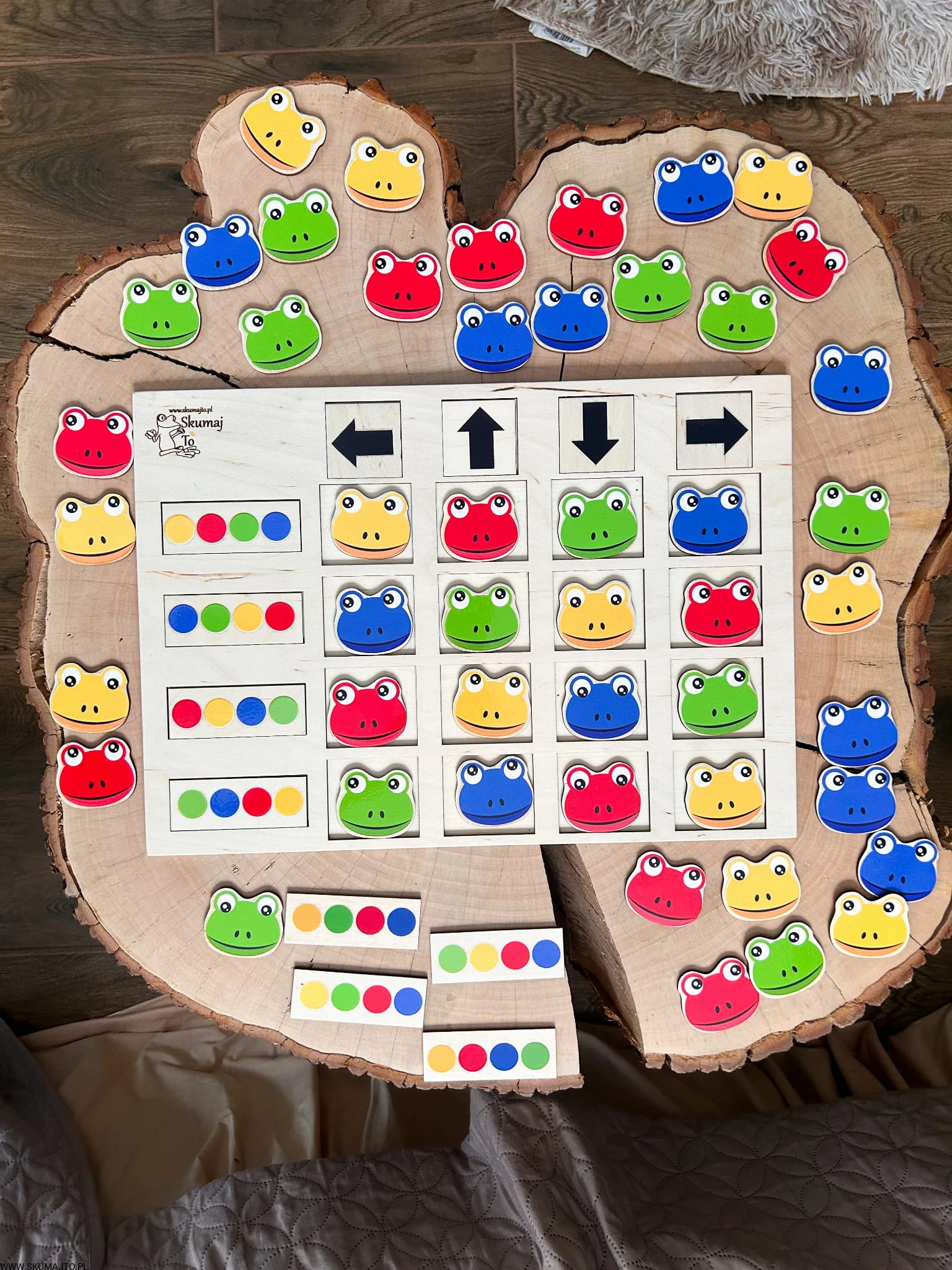 Żabki do odwzorowywania, nauka kierunków, nauka kolorów, odwzorowywanie