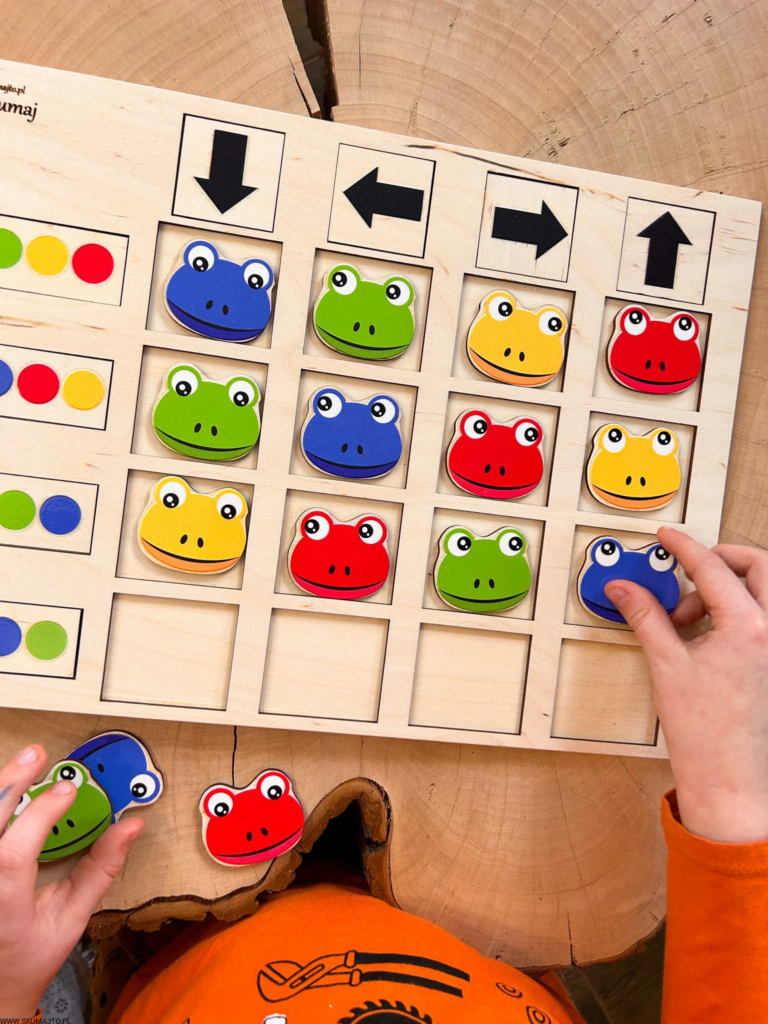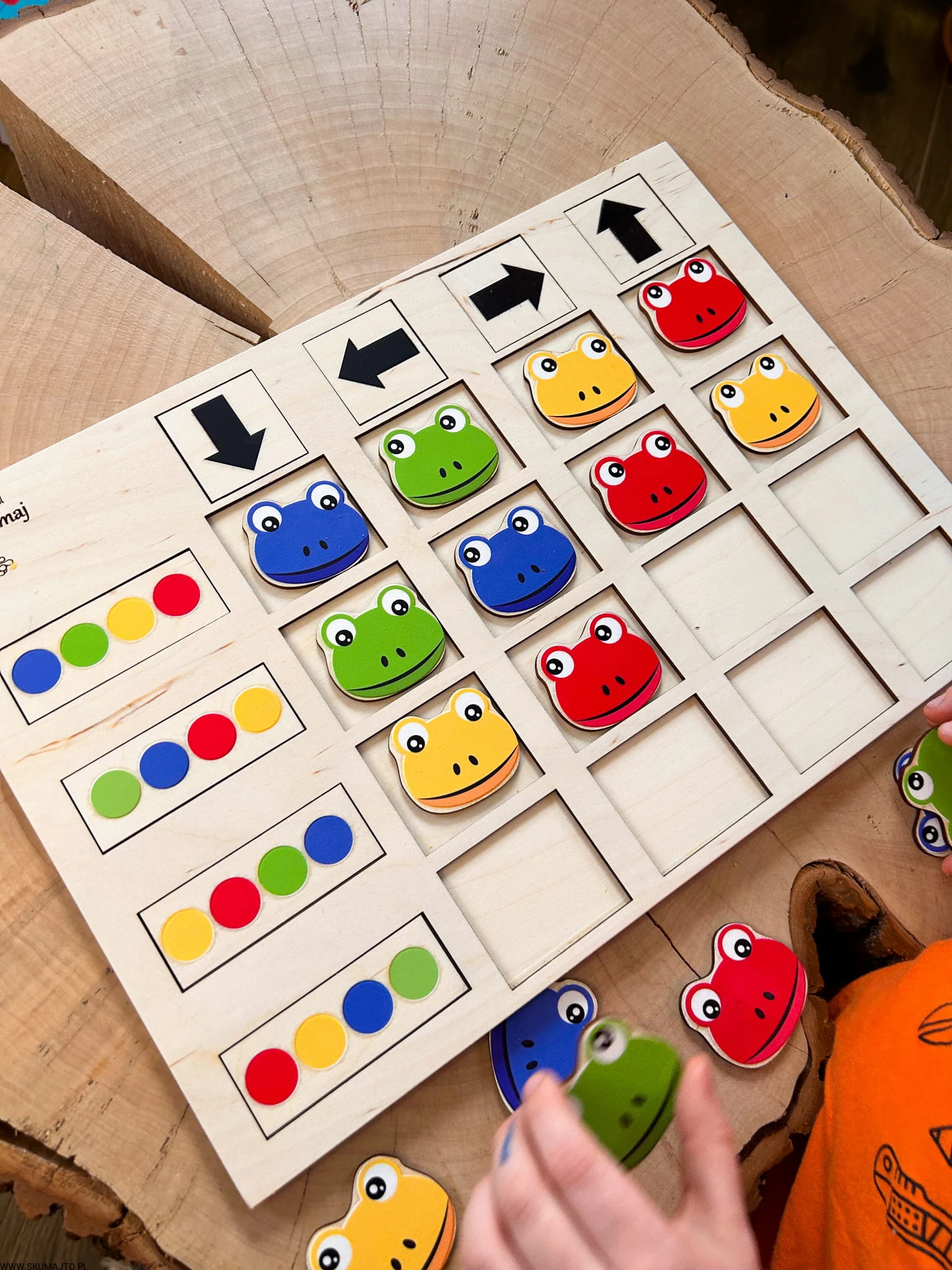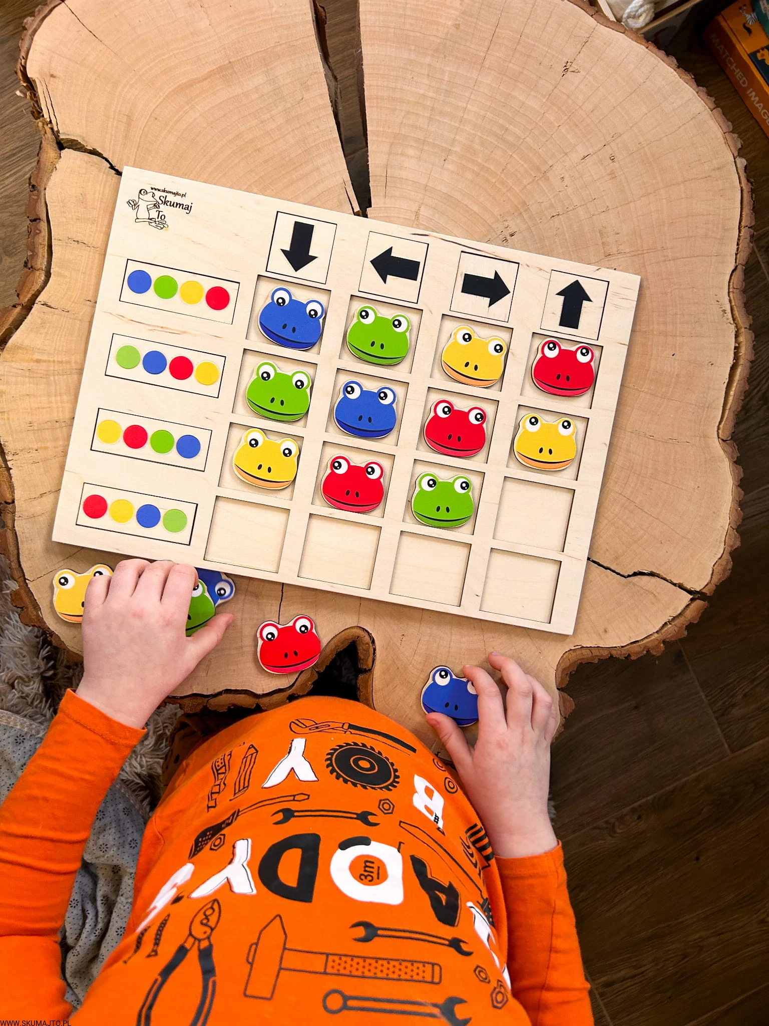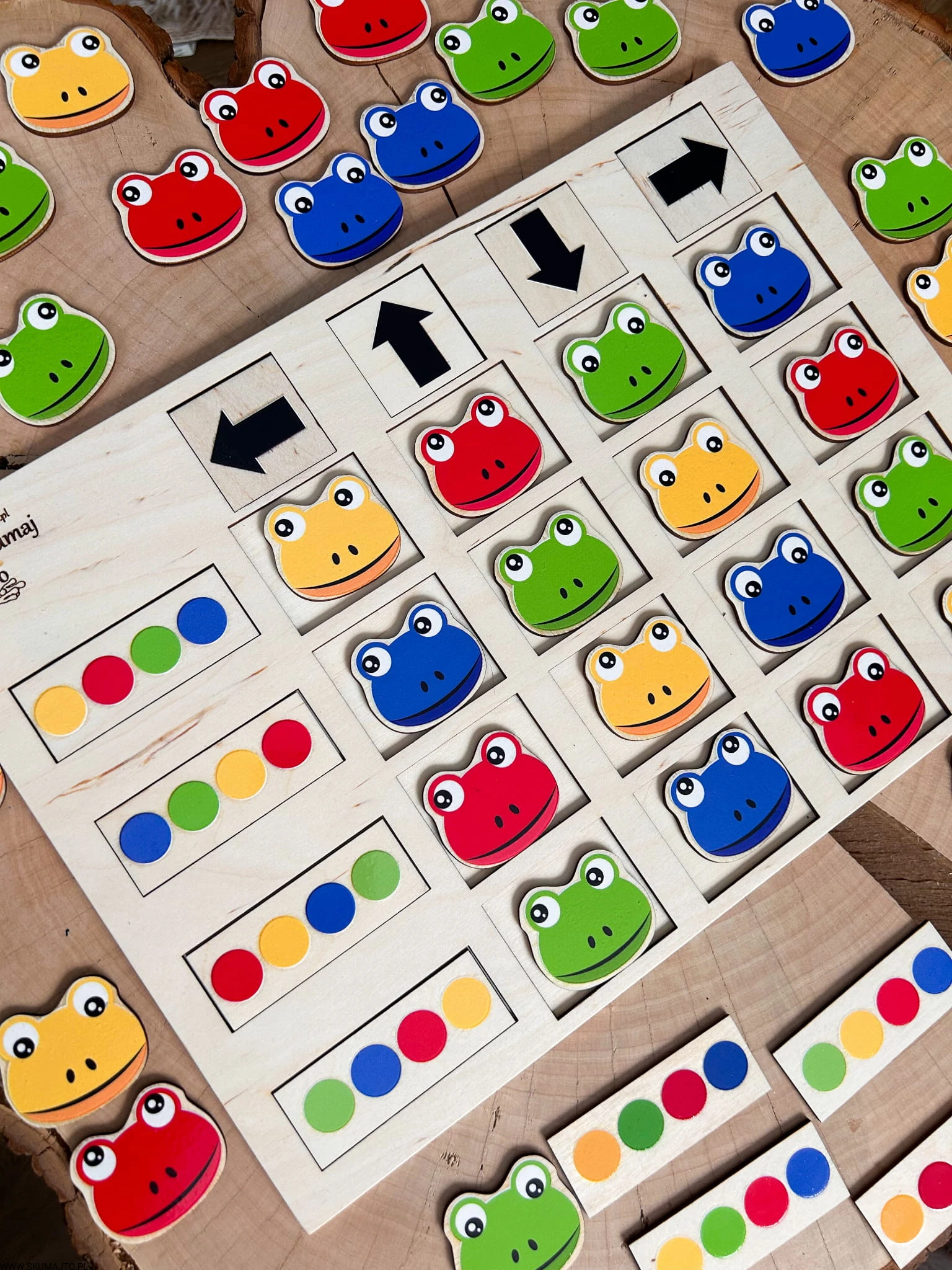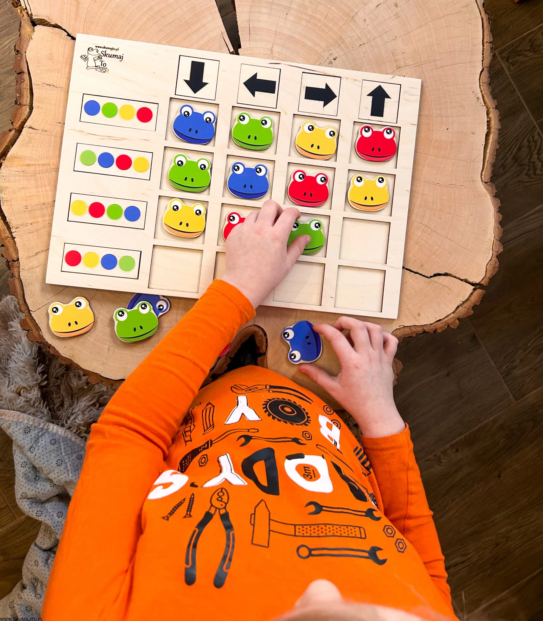 Żabki do odwzorowywania, nauka kierunków, nauka kolorów, odwzorowywanie