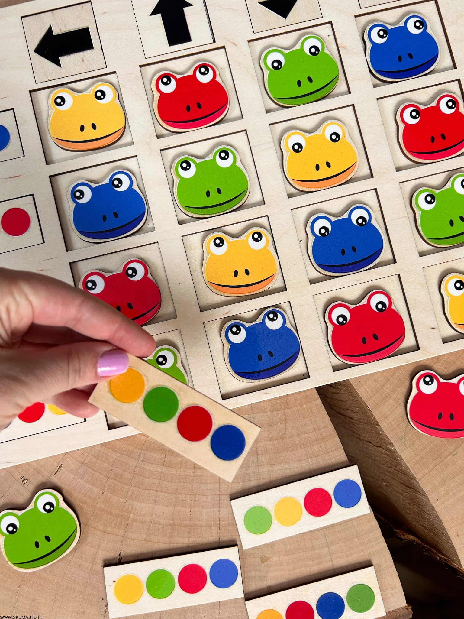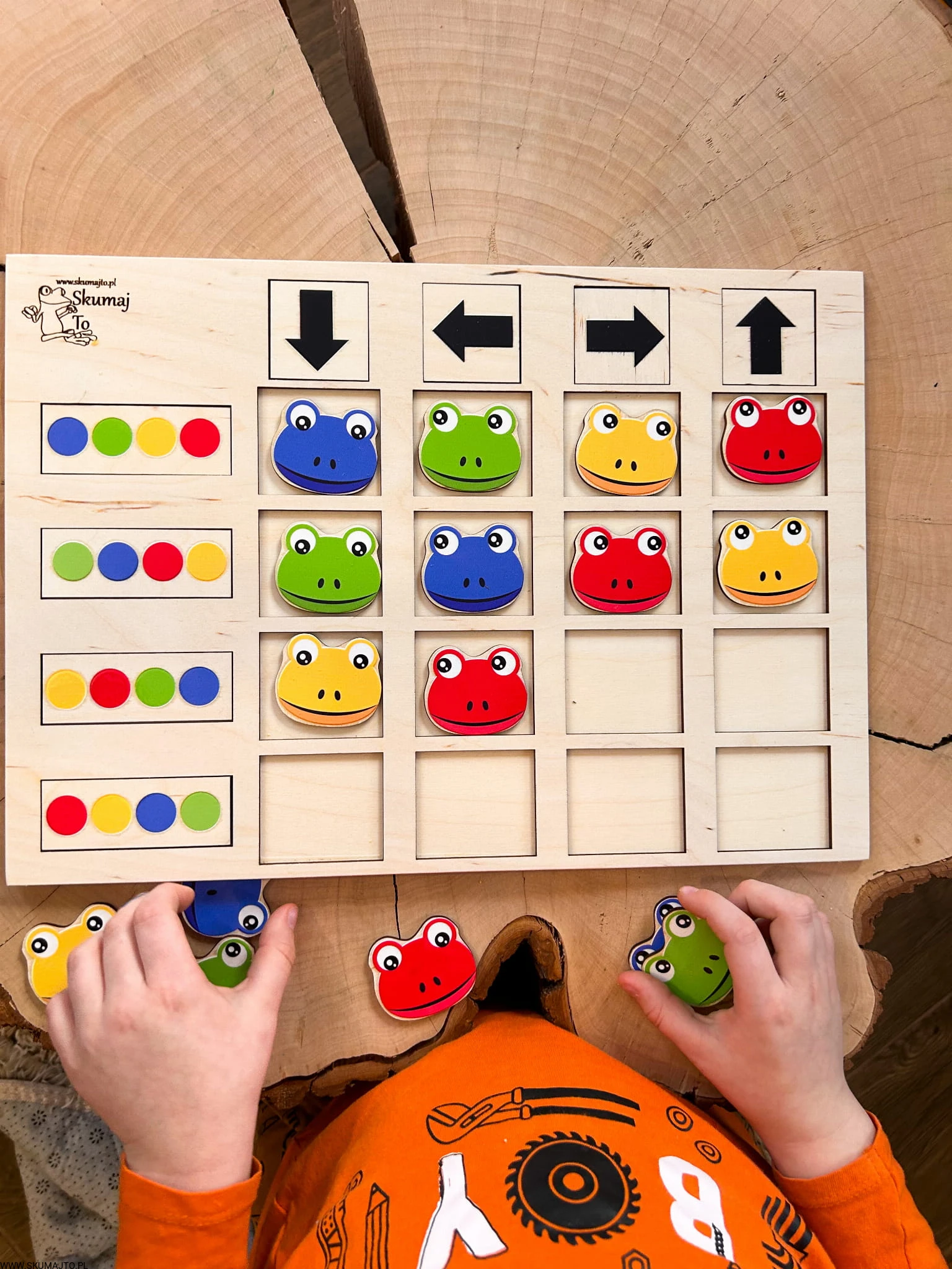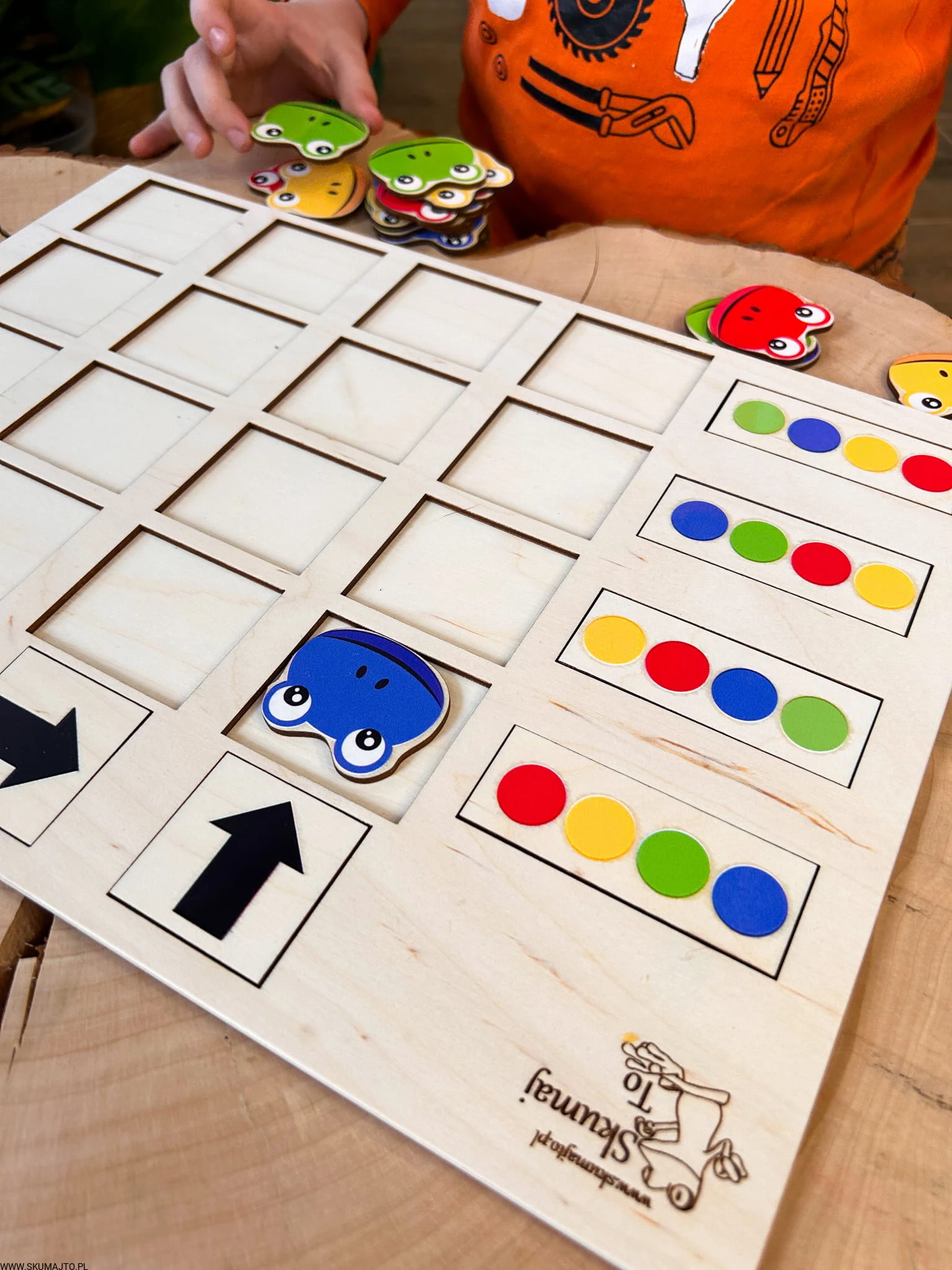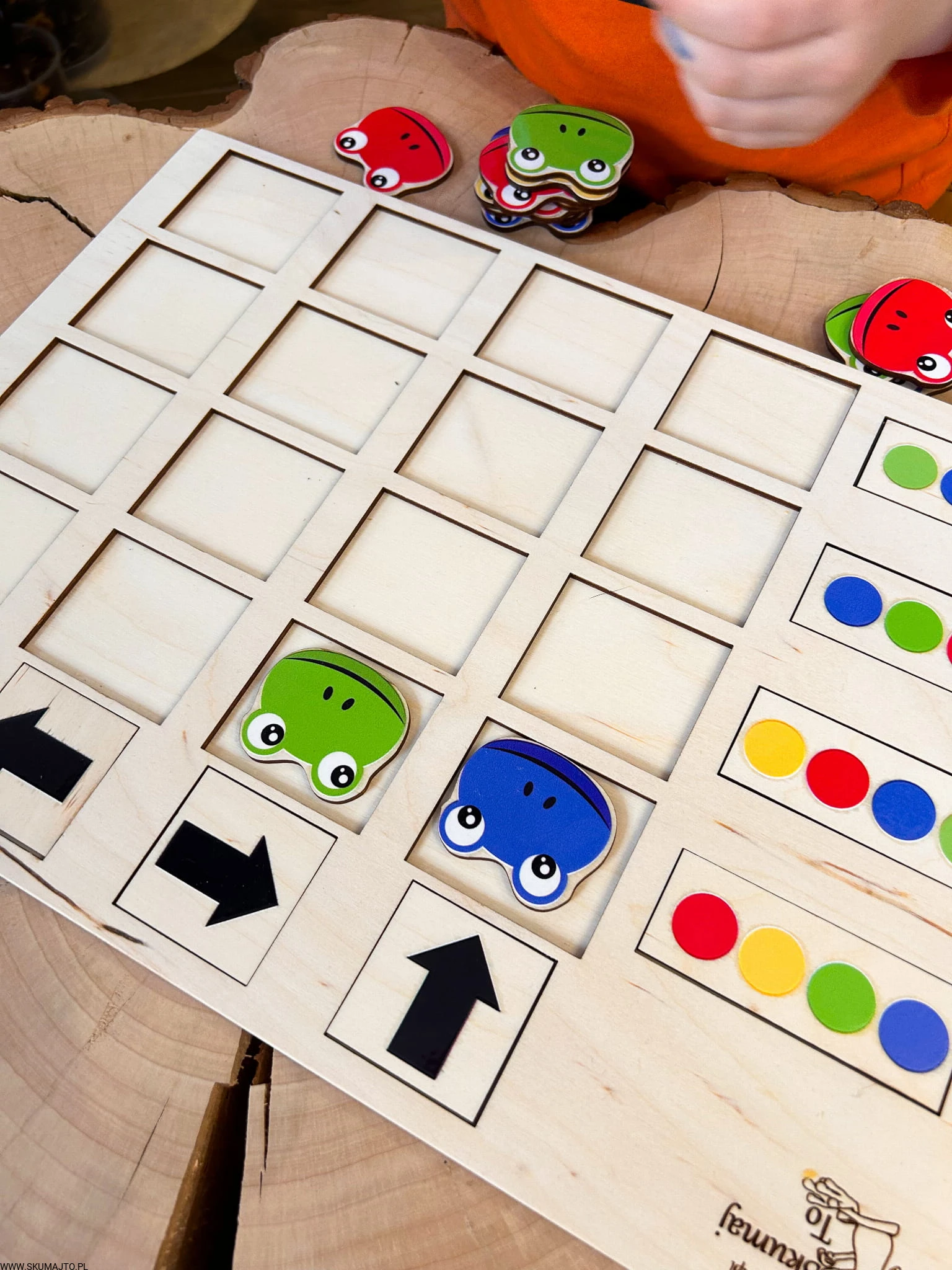Żabki do odwzorowywania, nauka kierunków, nauka kolorów, odwzorowywanie
