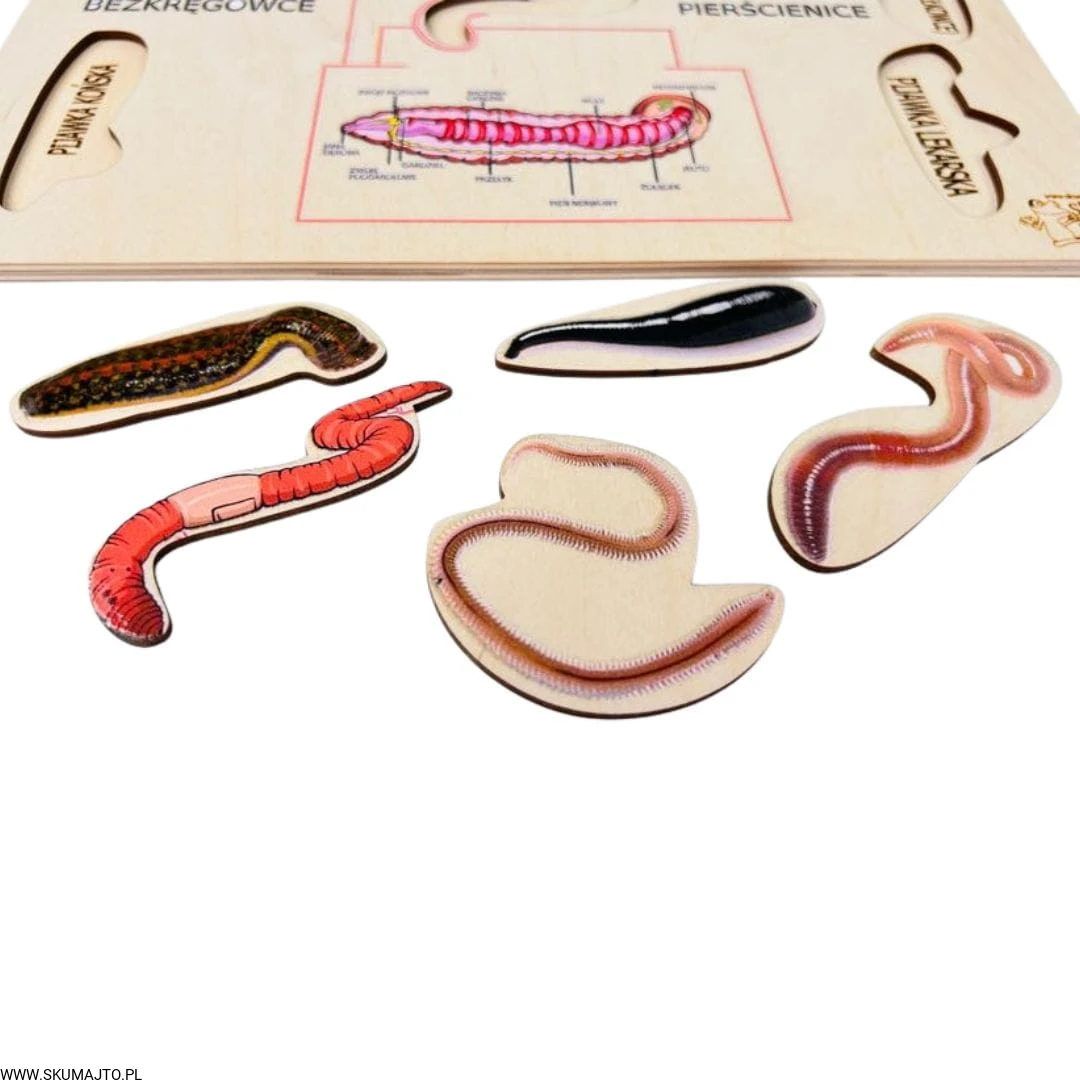 Producent Skumaj toPierścienice, drewniana układanka, ciekawostki o pierścienicach, pomoc biologiczna