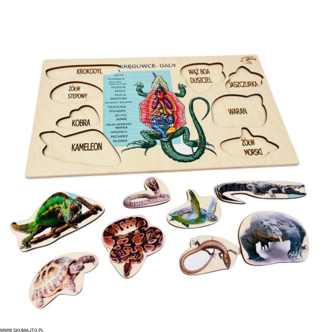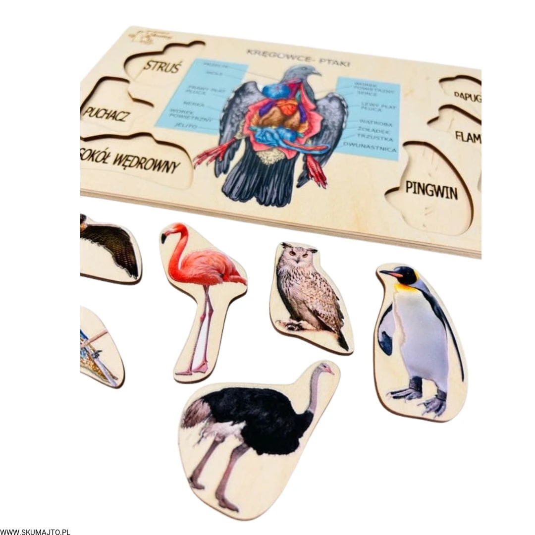 Zestaw drewnianych układanek ze świata zwierząt, pomoce biologiczne