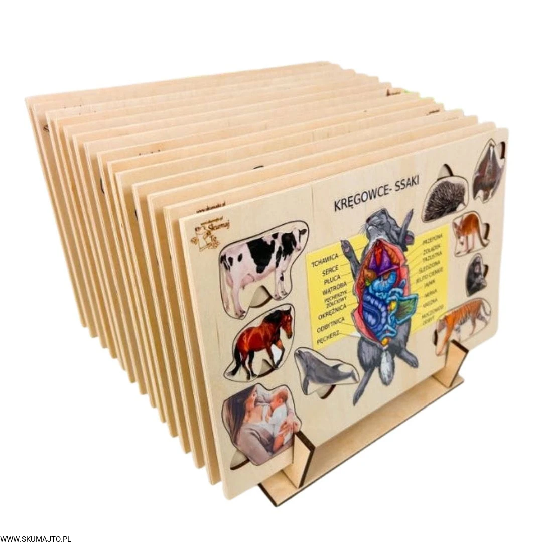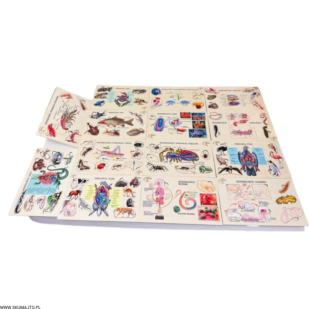 Poznaj fascynujący świat zwierząt dzięki naszej Wielkiej Kolekcji 14 pięknych pomocy edukacyjnych! Każda układanka przedstawia budowę anatomiczną wybranego gatunku oraz przykłady różnych gatunków należących do danej grupy. Niektóre układanki ukazują także cykl rozwojowy organizmu, co jeszcze bardziej wzbogaca edukacyjne doświadczenie dziecka.