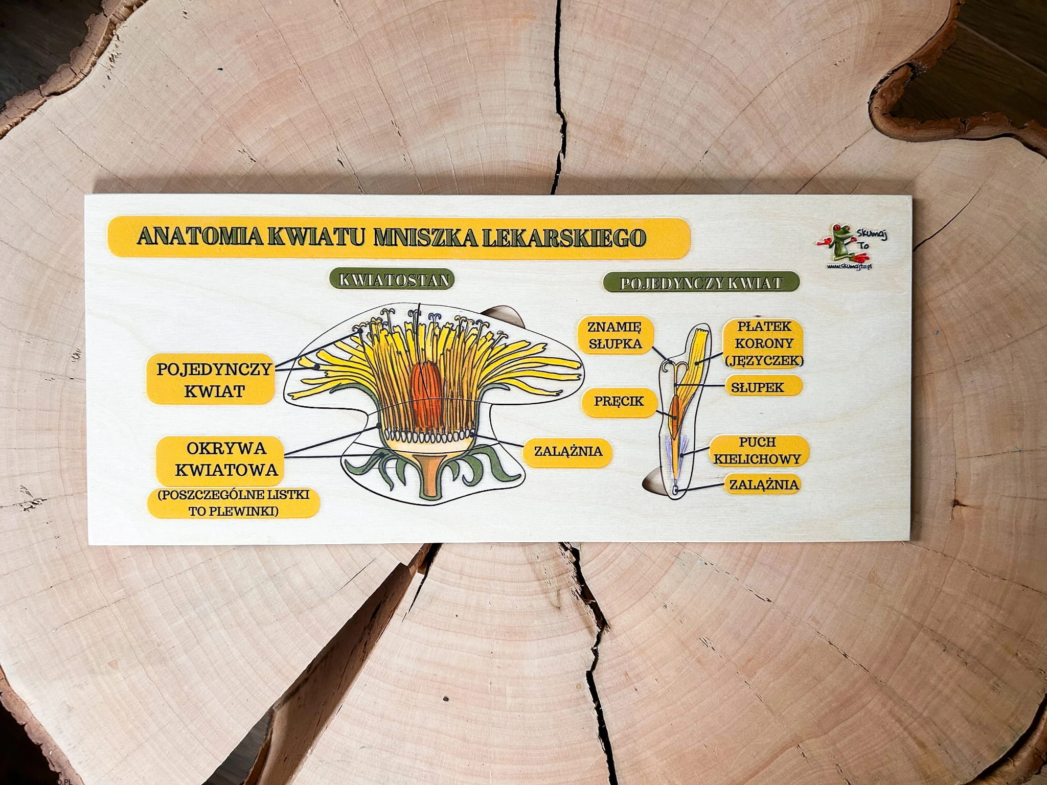 Układanka Przekrój Kwiatostanu (40x20cm): Odkryj, co kryje się w środku kwiatu mniszka. Wyciągane elementy tej układanki pomogą zrozumieć anatomię kwiatu w zabawny i angażujący sposób.