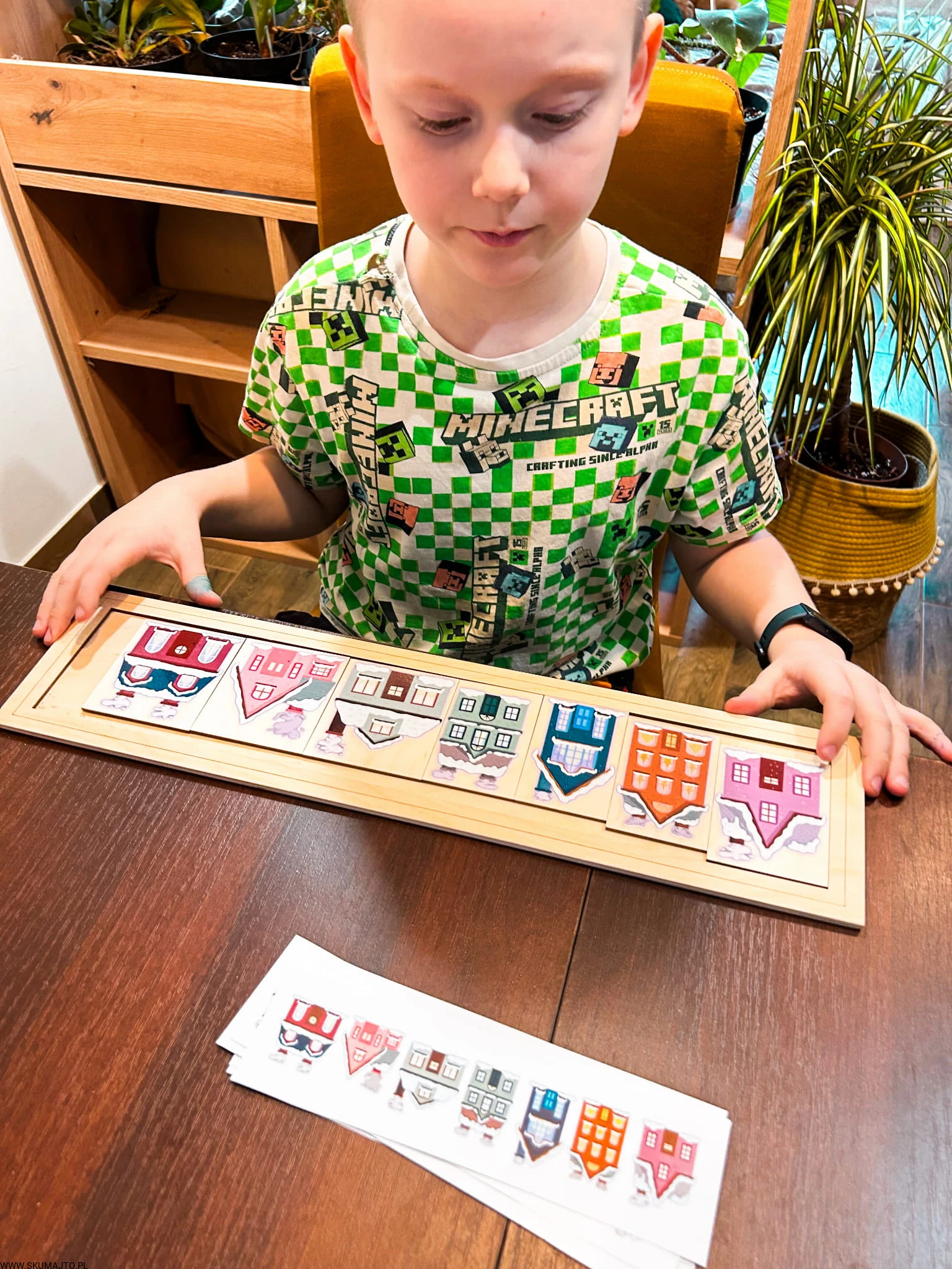 Wyobraź sobie, jak Twoje dziecko z fascynacją odkrywa każdy z domków – każdy inny, z charakterystycznymi kształtami okien i drzwi, pokrytymi śniegiem, który przypomina o zimowym krajobrazie. Sięga po kartę z wzorem i z pełnym skupieniem próbuje odtworzyć układ domków. Radość na jego twarzy, kiedy uda się poprawnie ułożyć wszystkie elementy, jest bezcenna. To chwila, w której maluch zdobywa nową umiejętność, ucząc się jednocześnie samodzielności i wytrwałości.