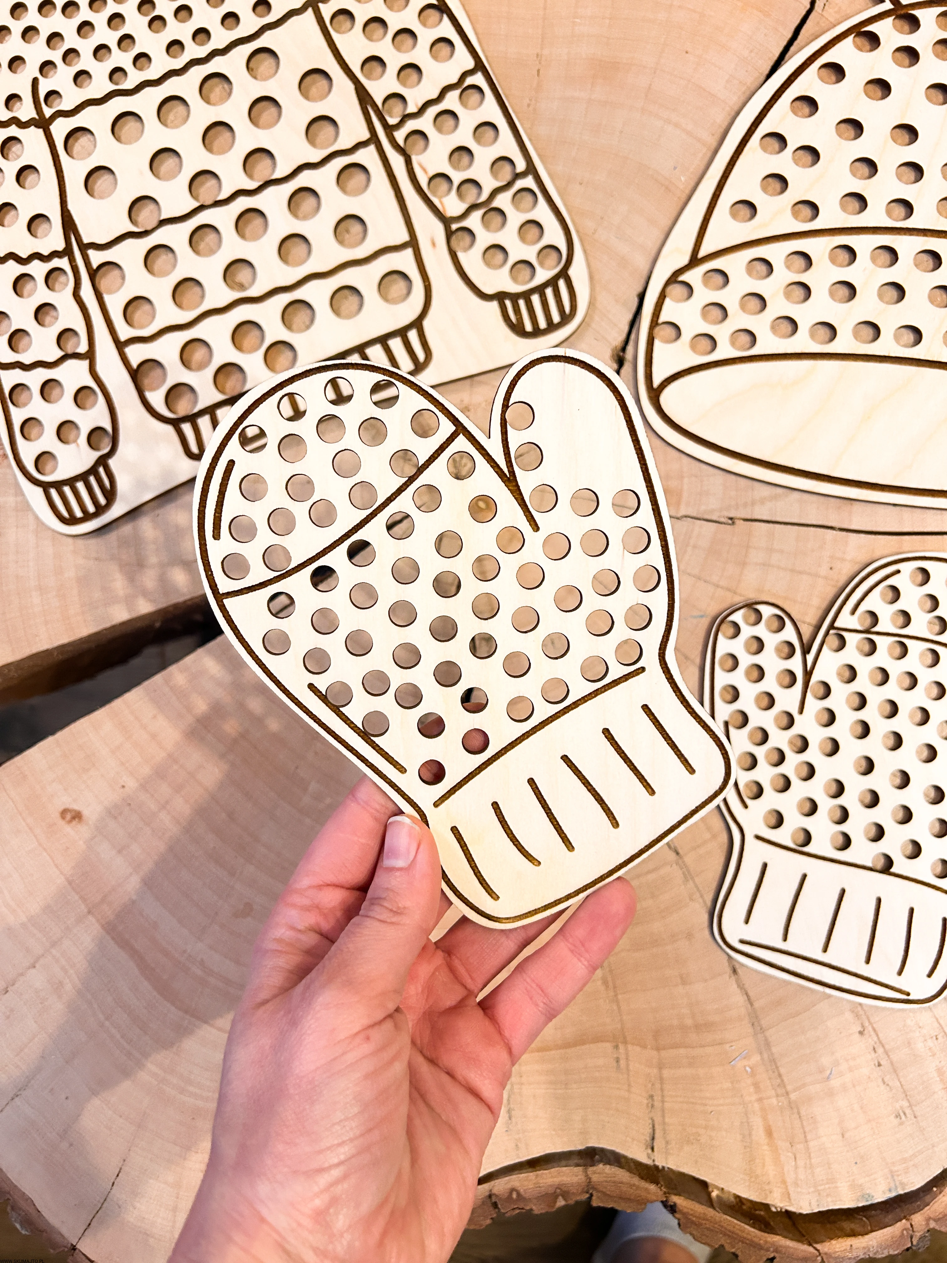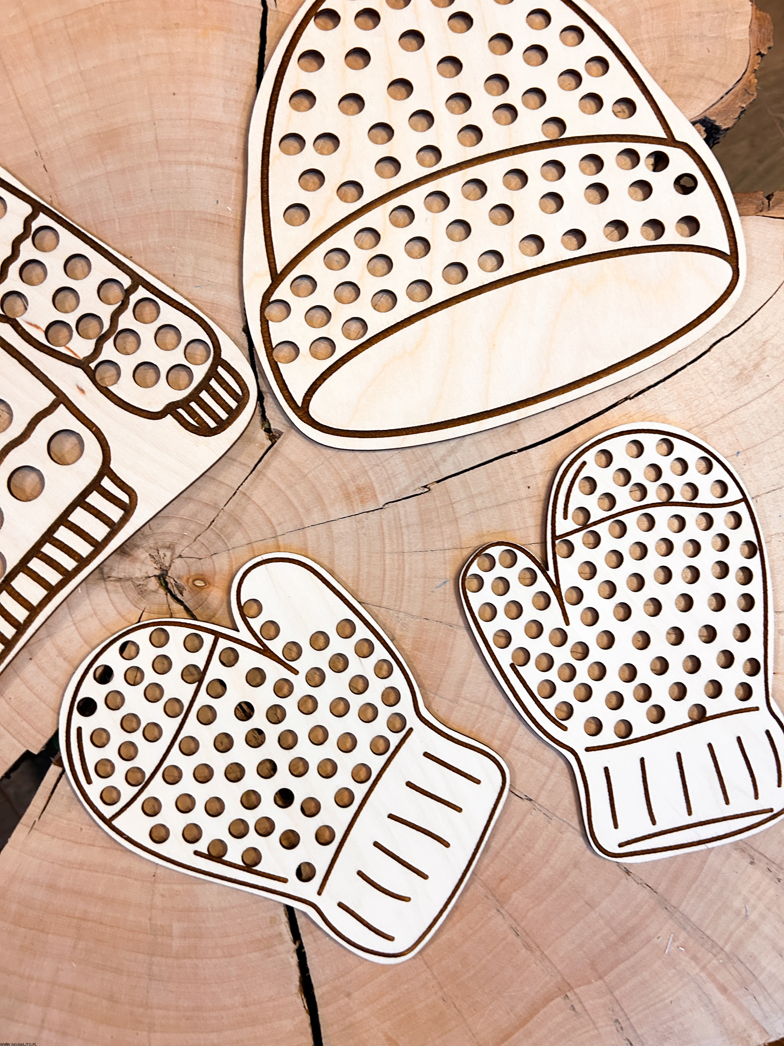 Ten zimowy komplet przeplatanek zawiera aż 4 drewniane elementy, które można ozdabiać sznurkiem według własnej fantazji: