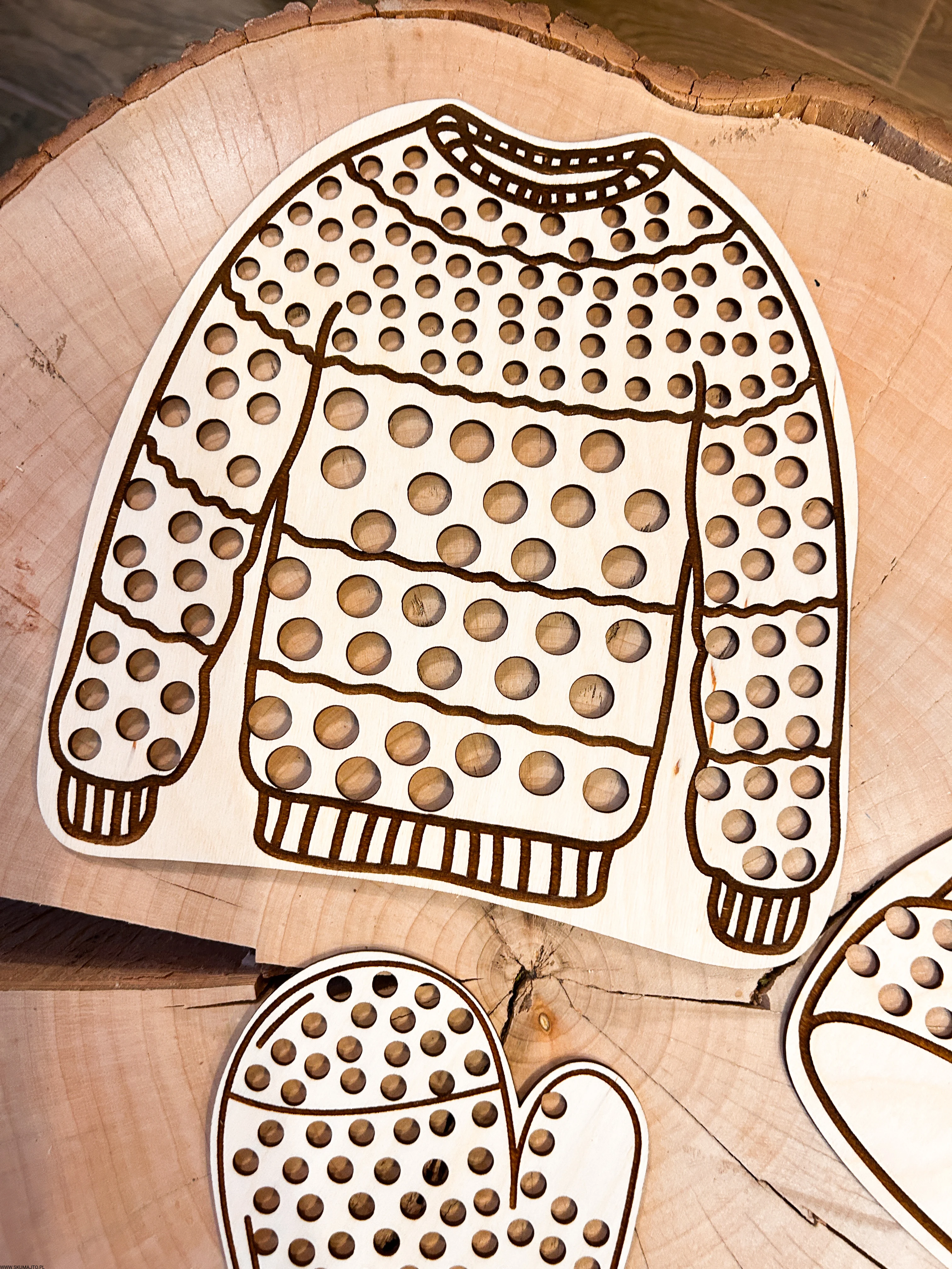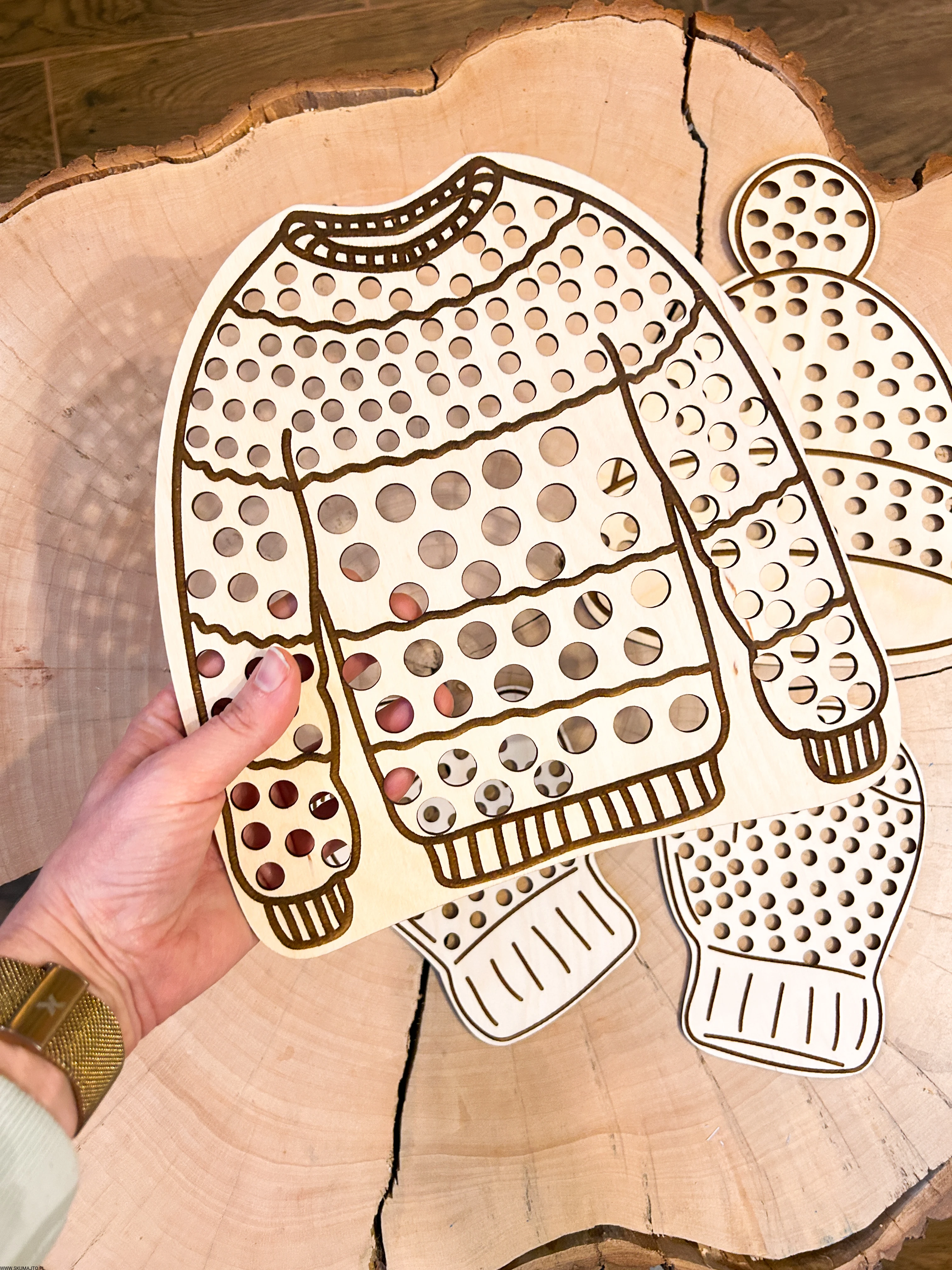 Każdy element wykonany jest z trwałej i gładkiej sklejki, z wyfrezowanymi otworami, które ułatwiają przeplatanie nawet młodszym dzieciom. Dziurki są rozmieszczone tak, by dawać mnóstwo możliwości wzorów, zawijasów i kombinacji.