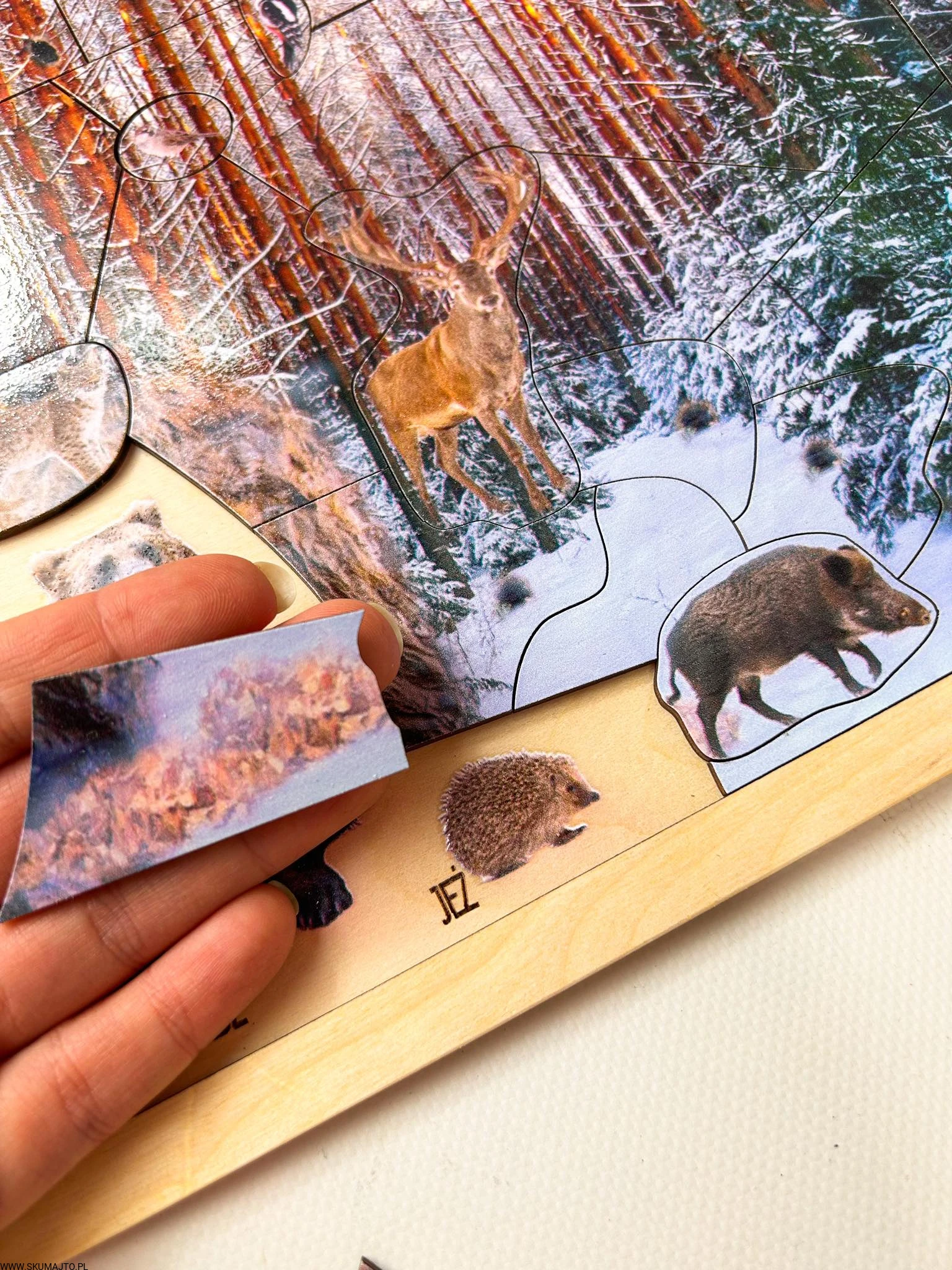 Układanka "Zimowy Las" to wspaniała pomoc edukacyjna, która łączy naukę z interaktywną zabawą, pomagając dzieciom zrozumieć, jak zwierzęta radzą sobie w trudnych zimowych warunkach.