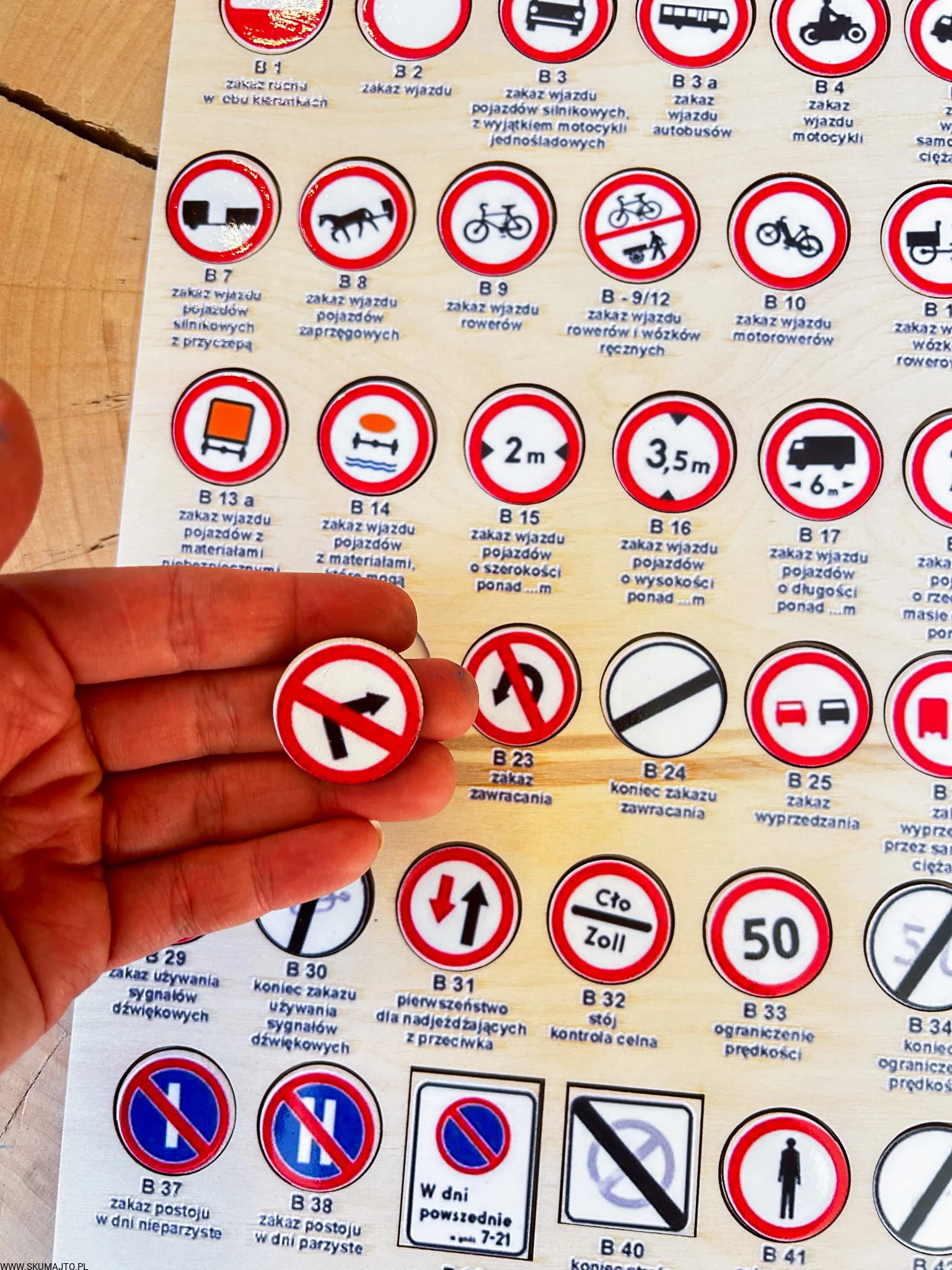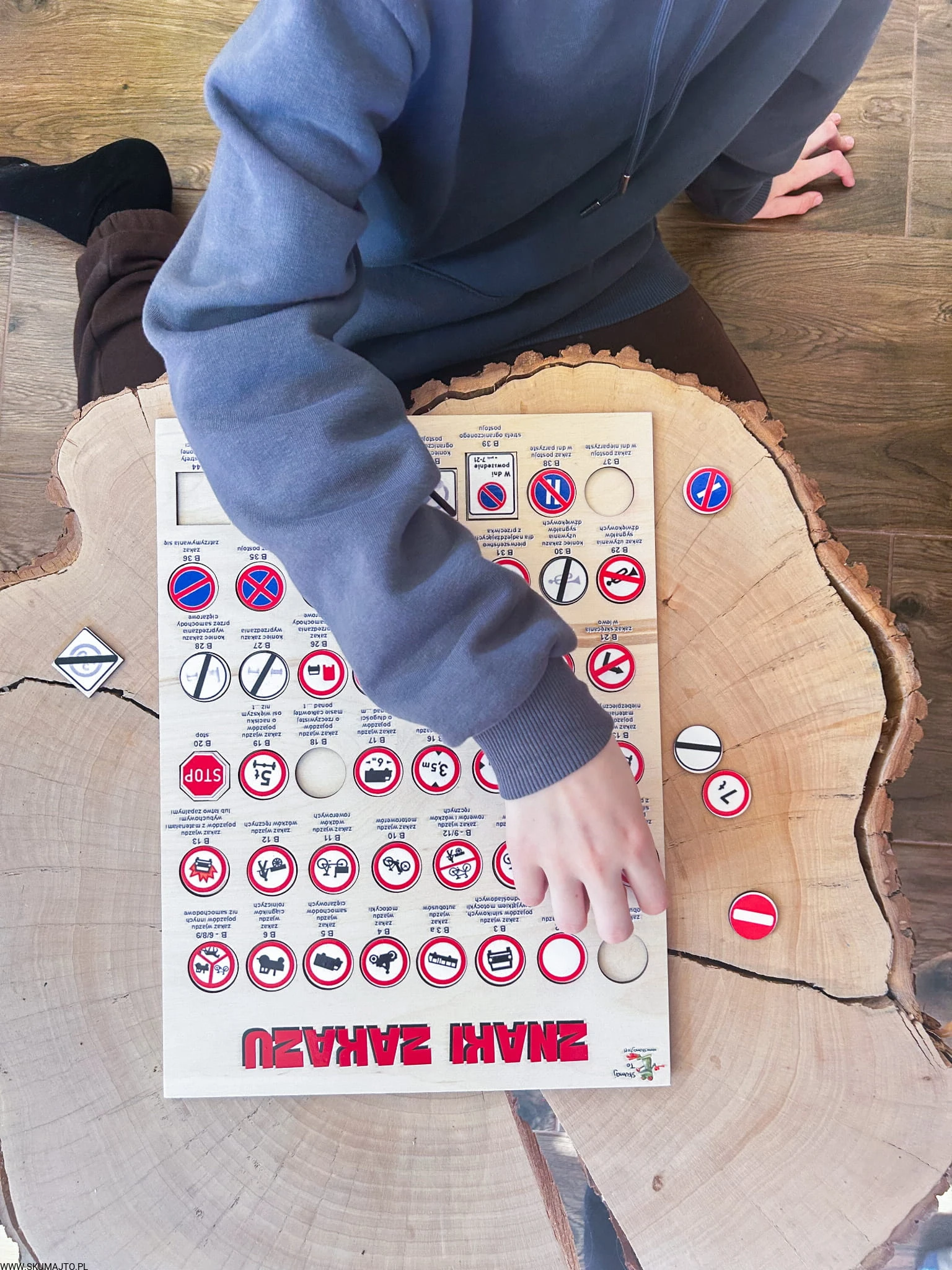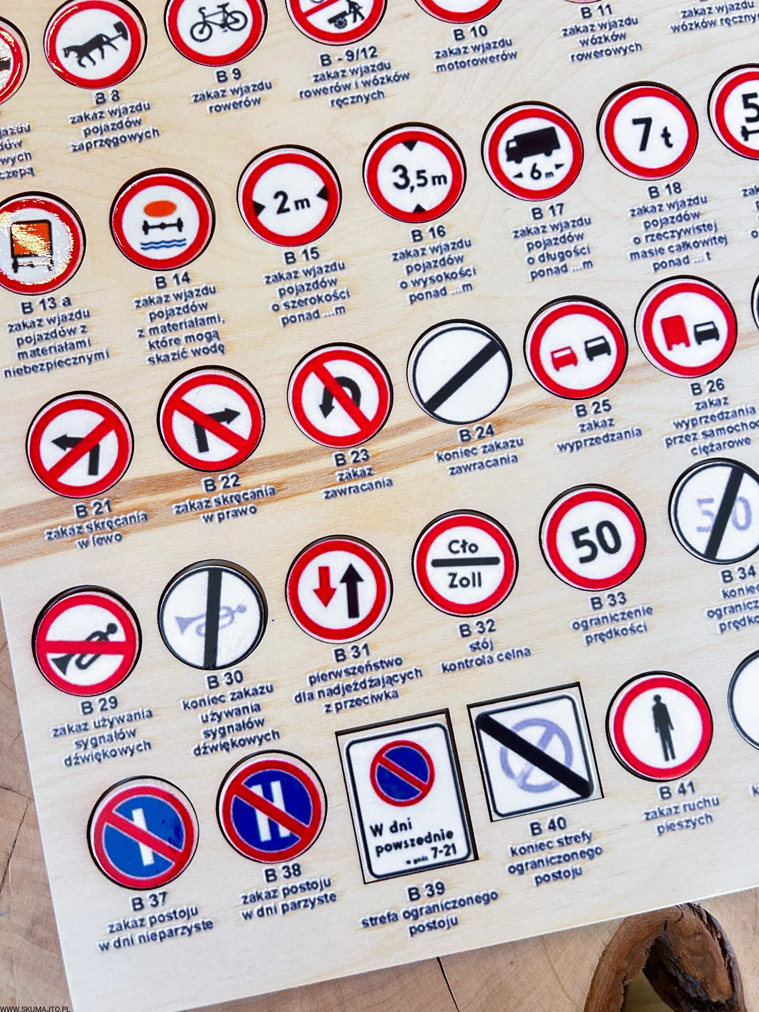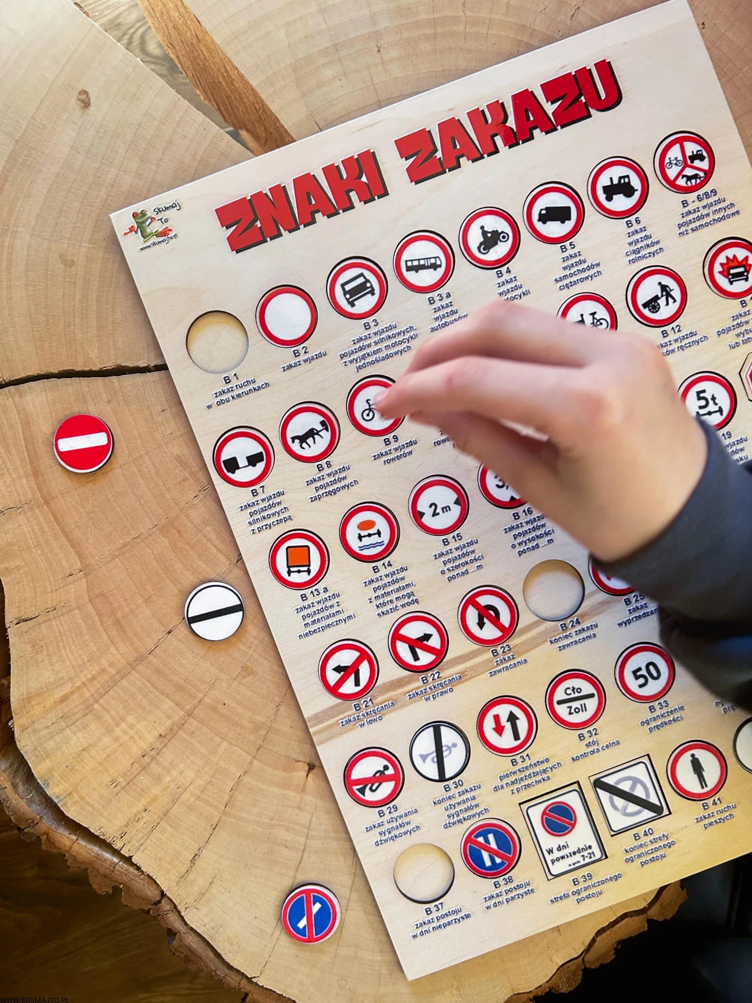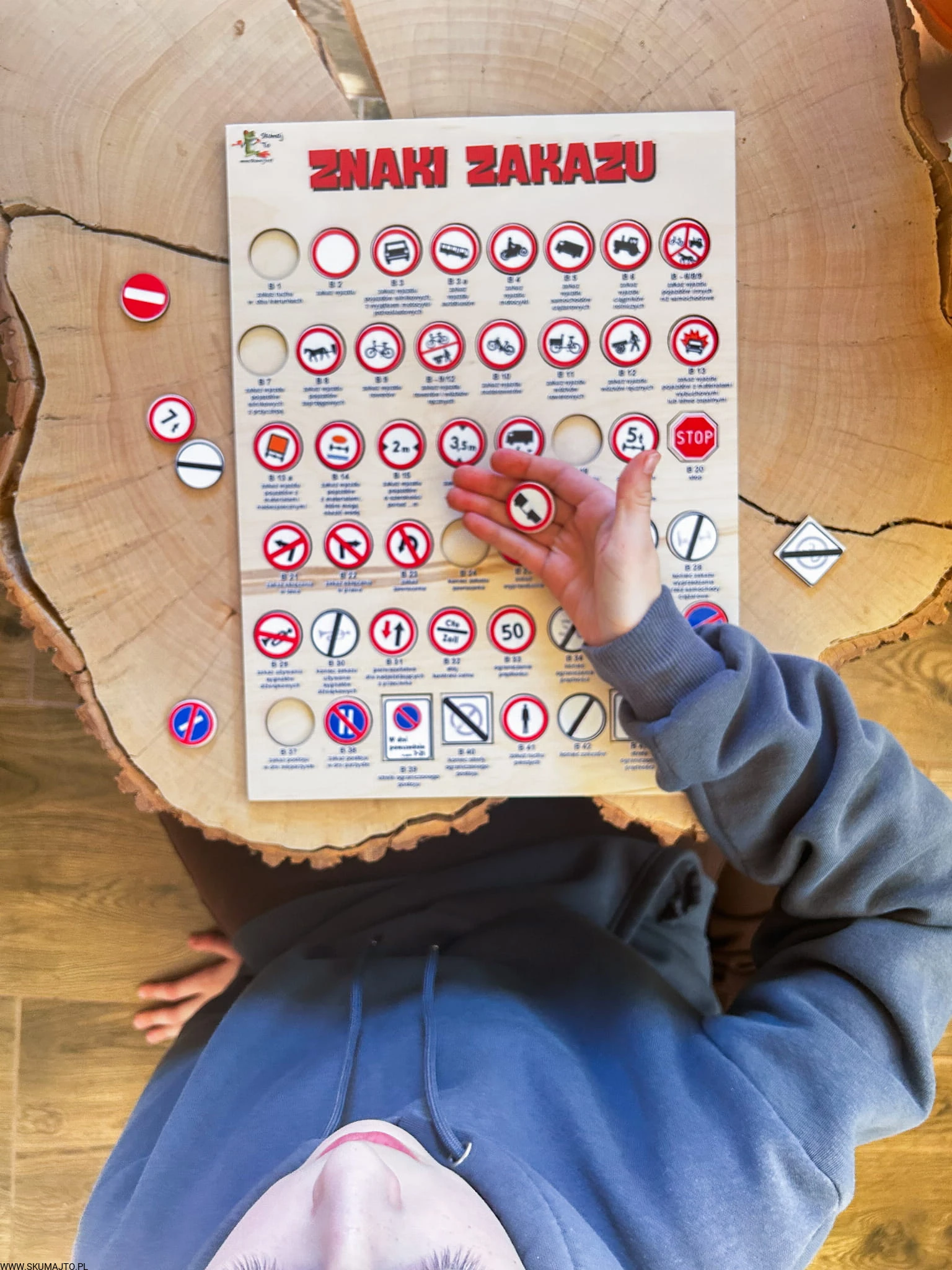 Znaki zakazu, drewniana układanka edukacyjna, znaki drogowe
