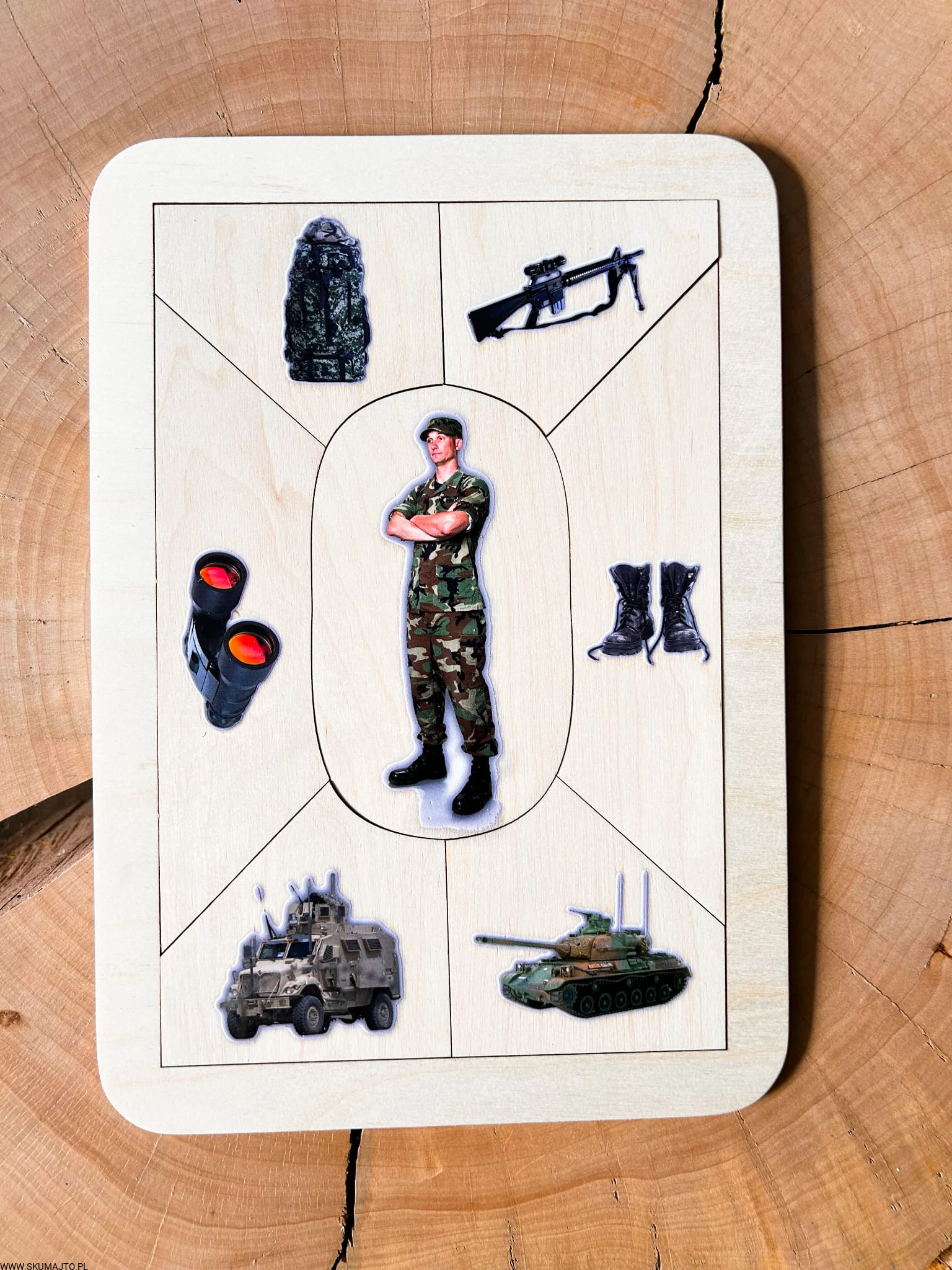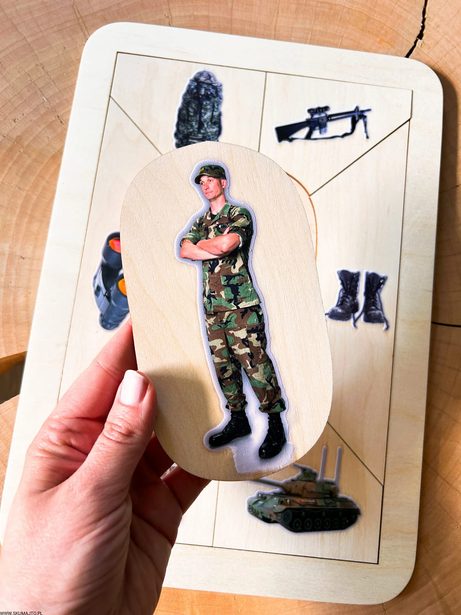 Drewniana układanka edukacyjna „Zawód: Żołnierz” – odwaga, służba i porządek w formie edukacyjnej zabawy
