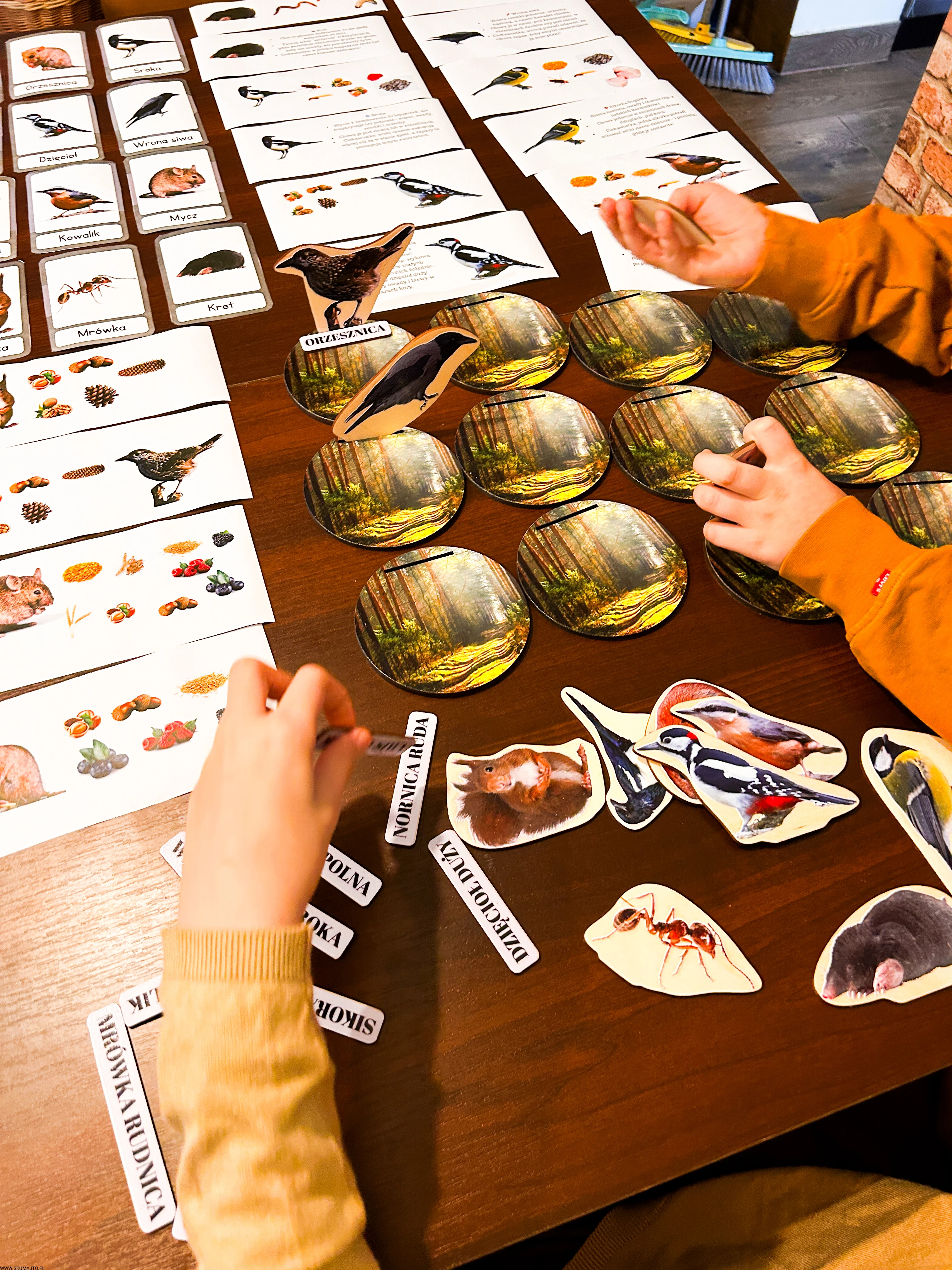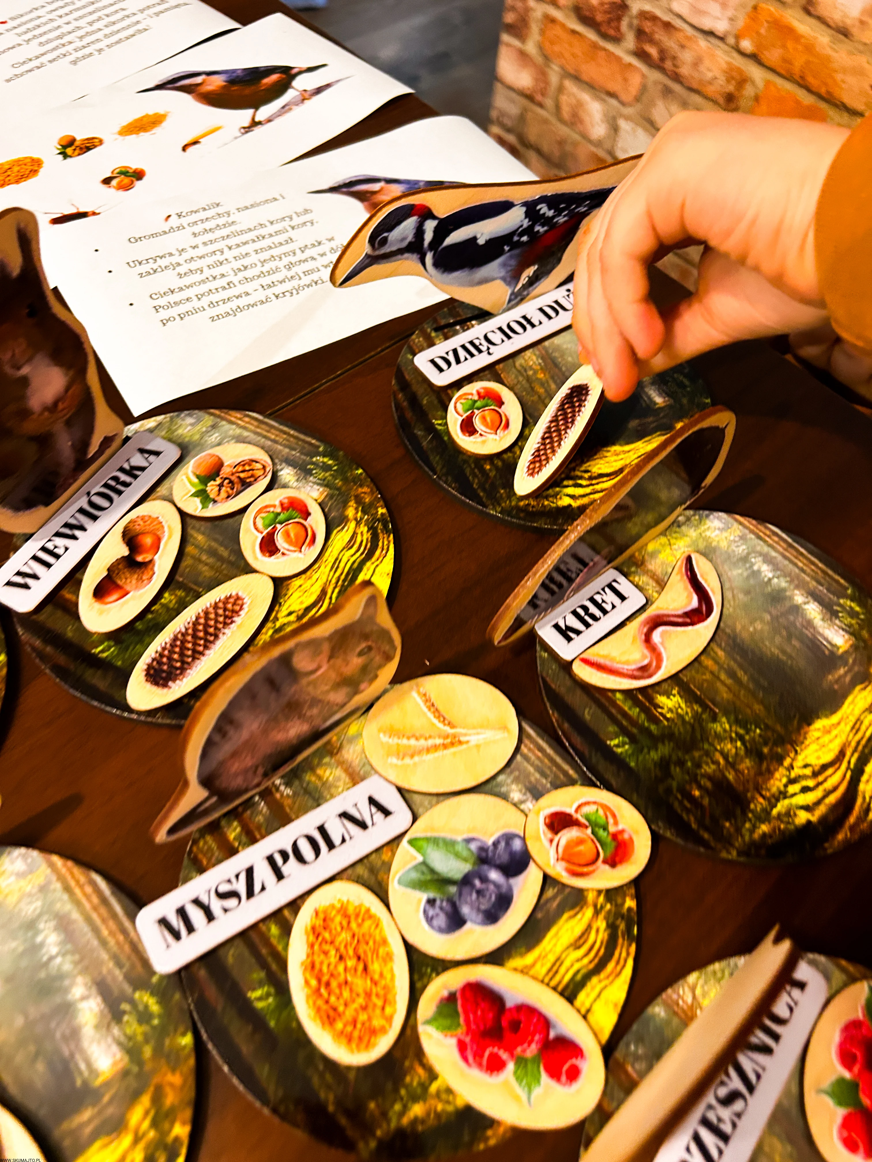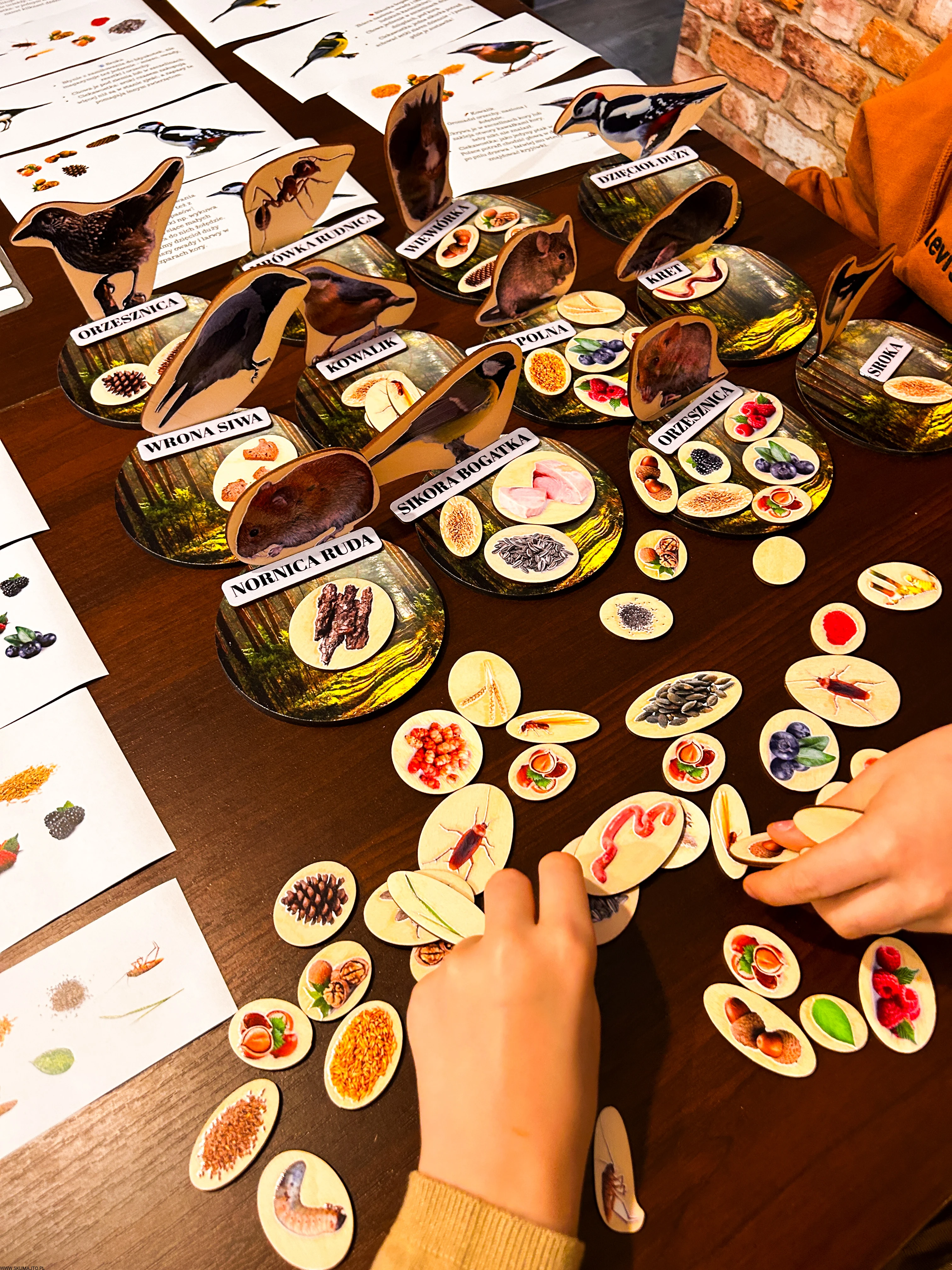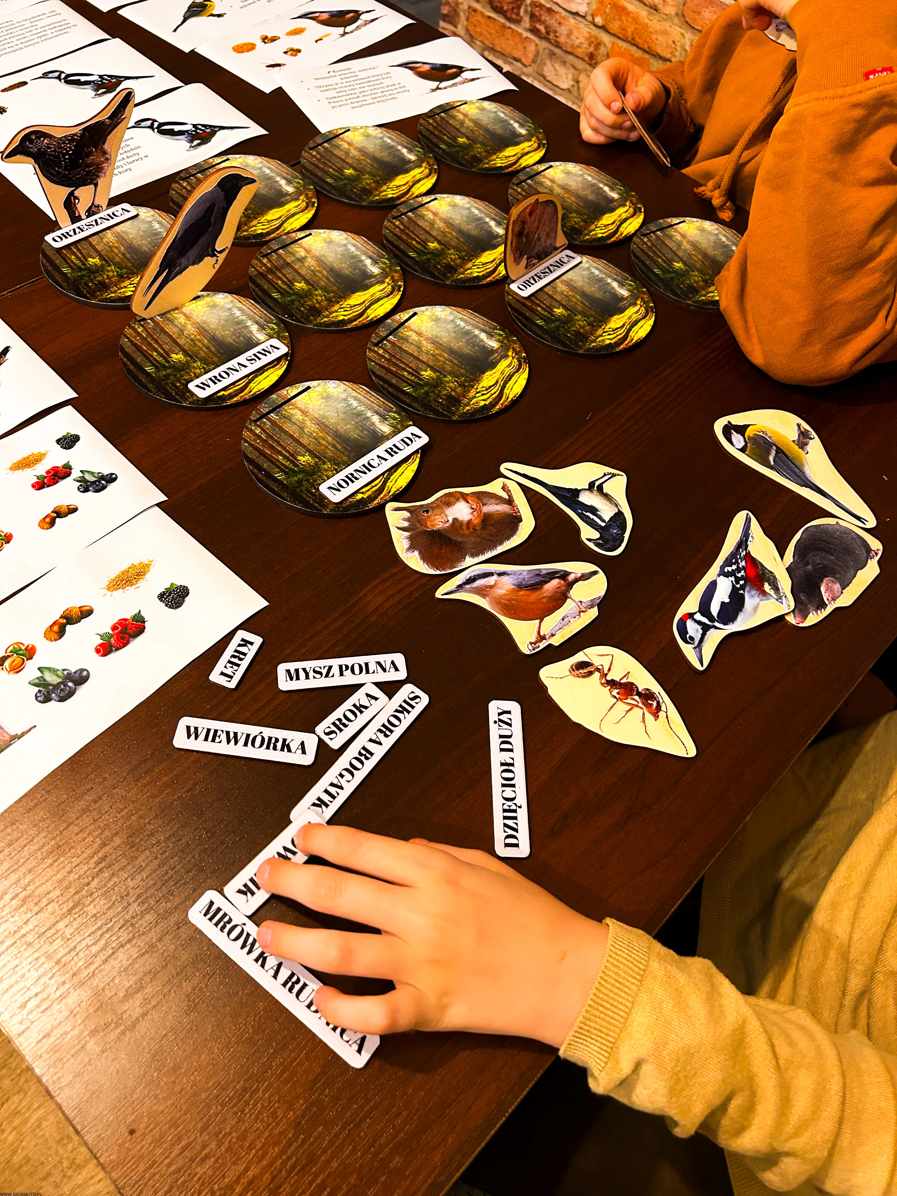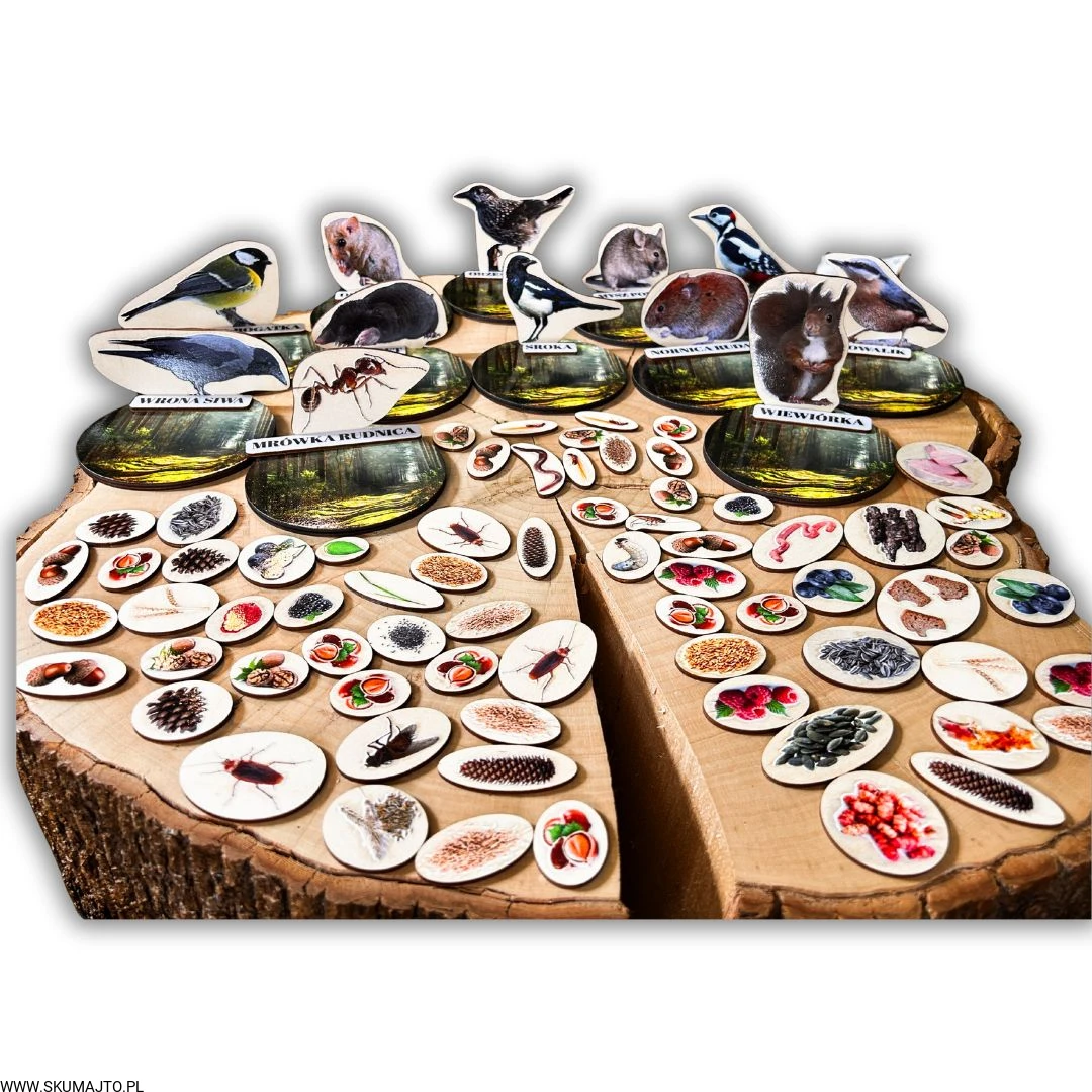 Każde dziecko dostaje jedno zwierzę i talerz – jego zadaniem jest znaleźć i ułożyć tylko te zapasy, które dany gatunek magazynuje.